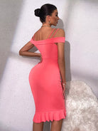 فستان بكتف بارد بحافة حورية البحر بحمالة على كتف بارد