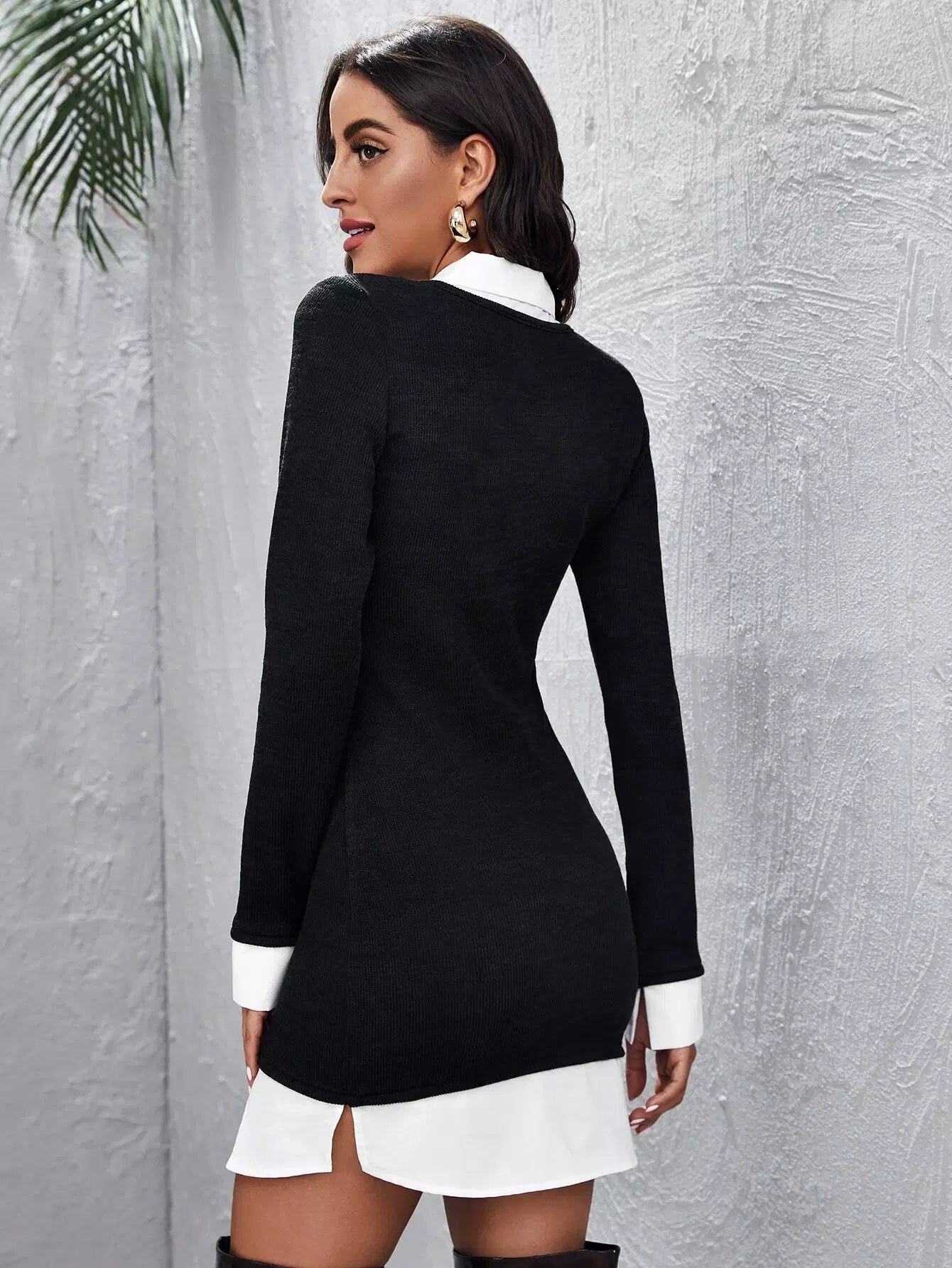 للنساء - فستان بياقة وفتحة جانبية بلونين 2 في 1