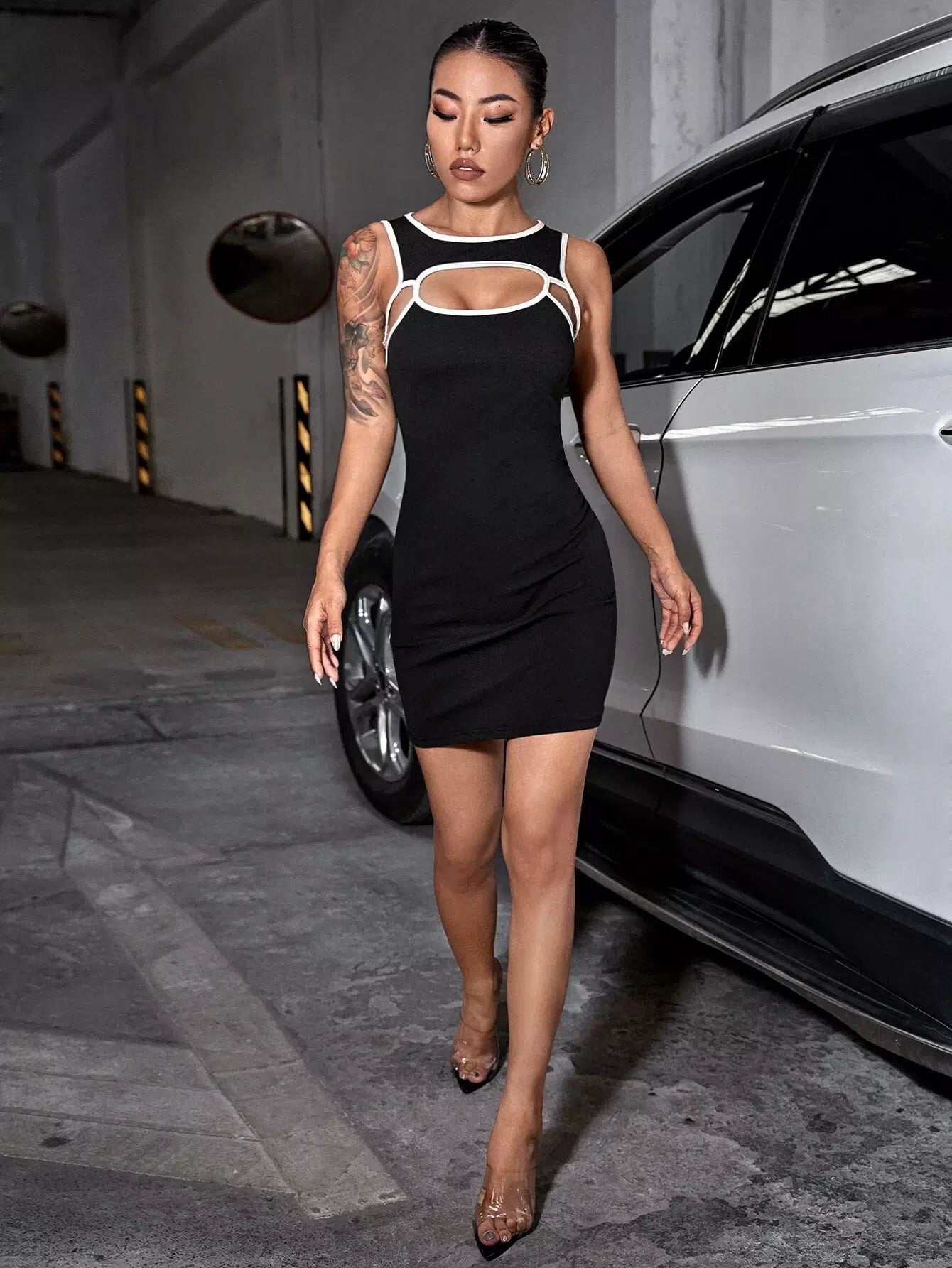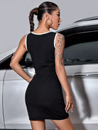 فستان بدون أكمام بقصّة بلا أكمام بلون مغاير بلا أكمام