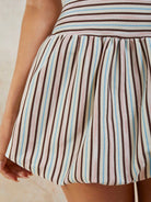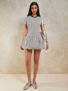 women COSMINA Women's Striped Round Neck Short Sleeve Ruffle Hem Mini Dress Drop Waist Dress