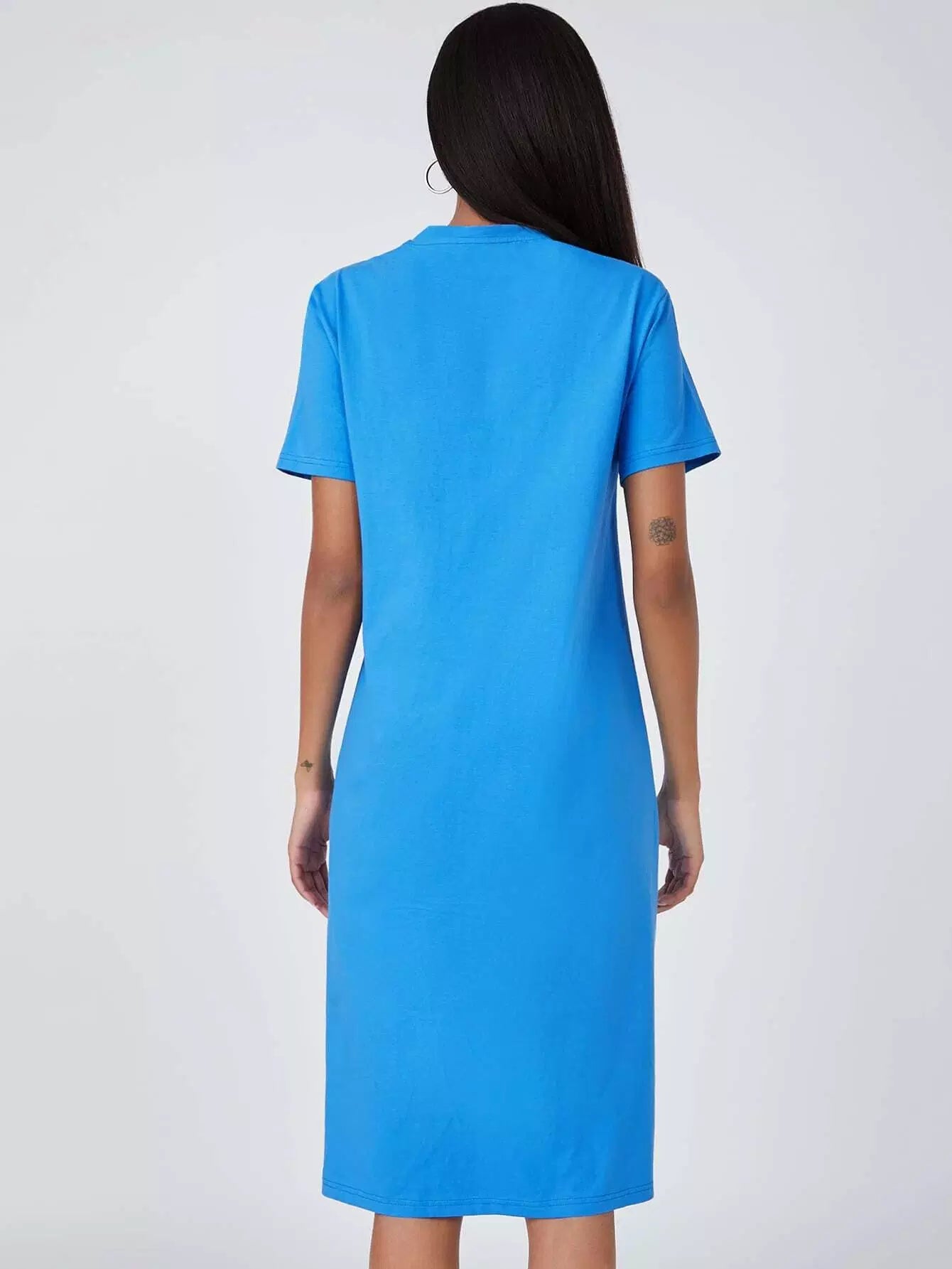 فستان قطن بحاشية منقسمة قطن سادة