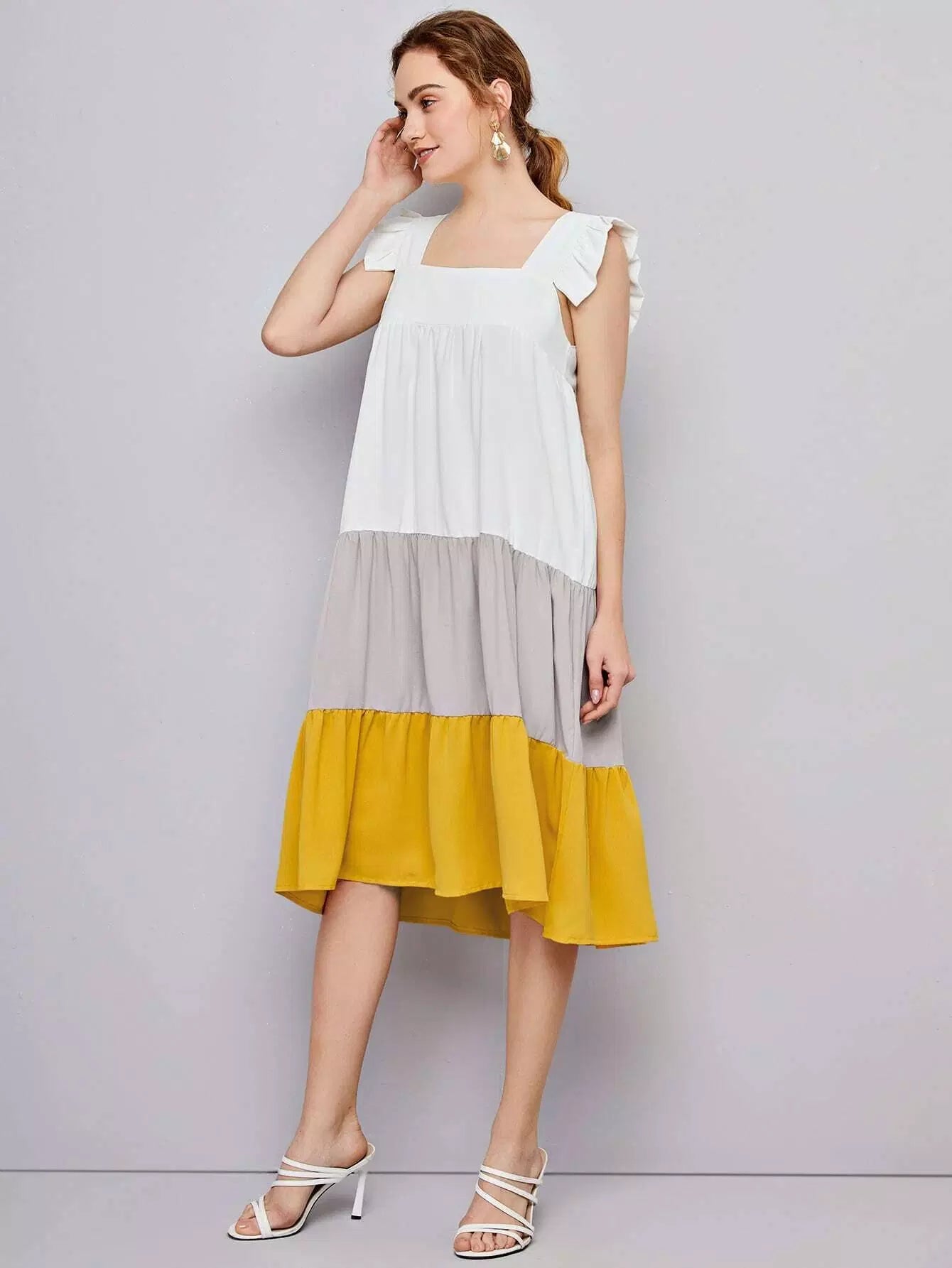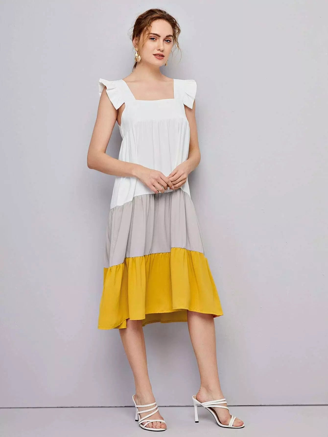 فستان بقص وخياطة كشكش بحواف مكشكشة