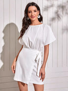 فستان بفتحة من الخلف بفتحة عقدة جانبية ملفوفة من الجانب