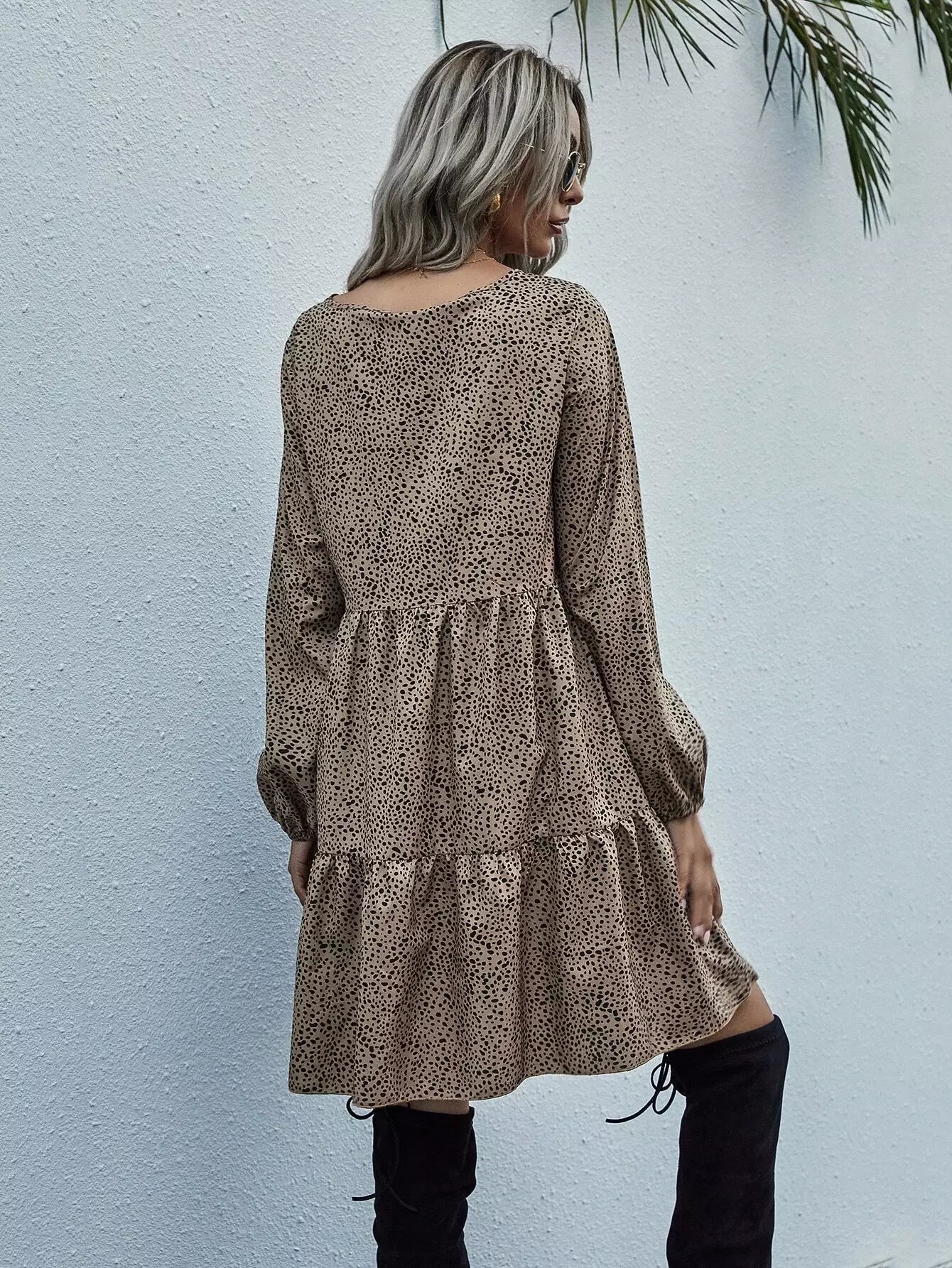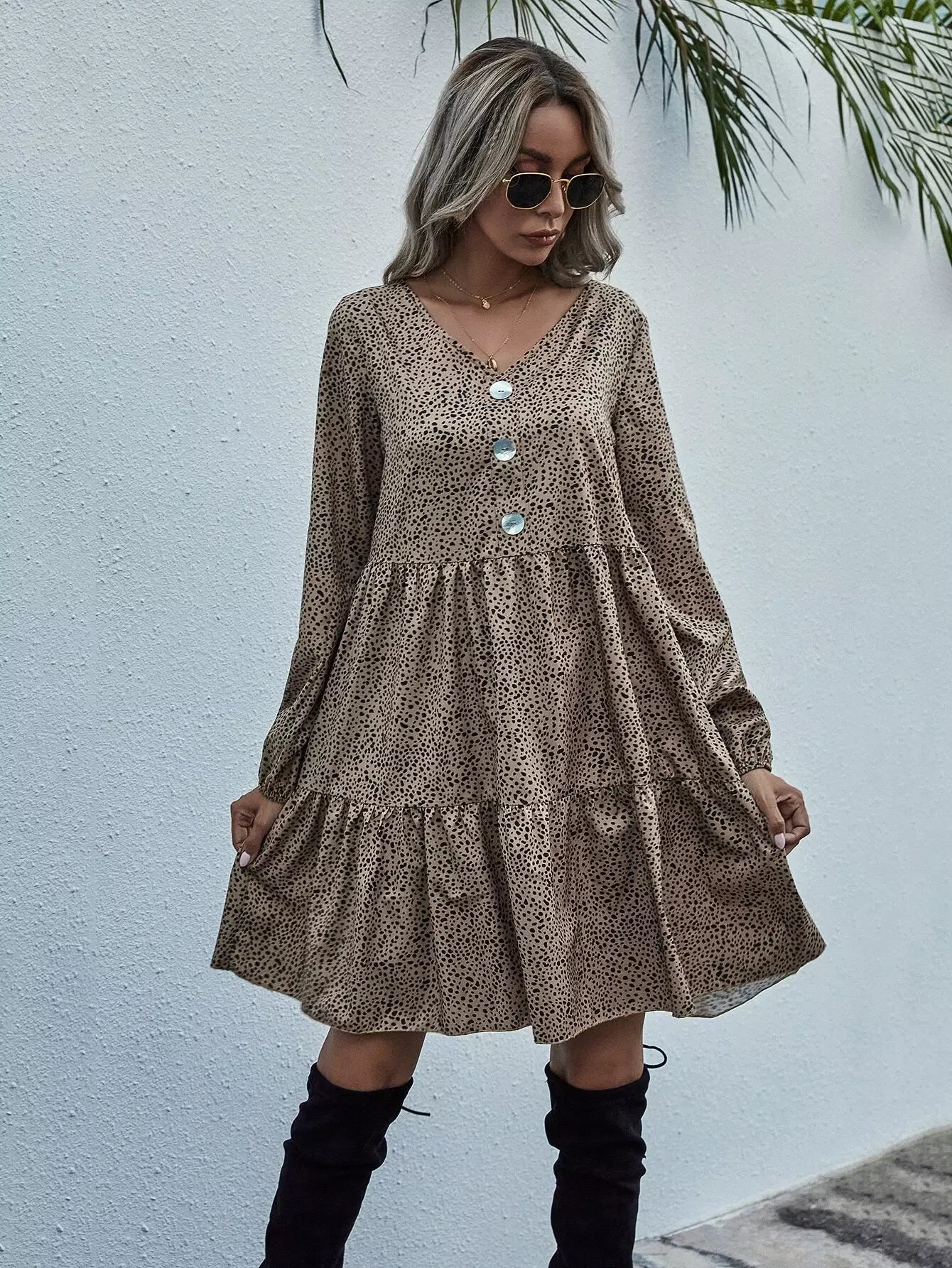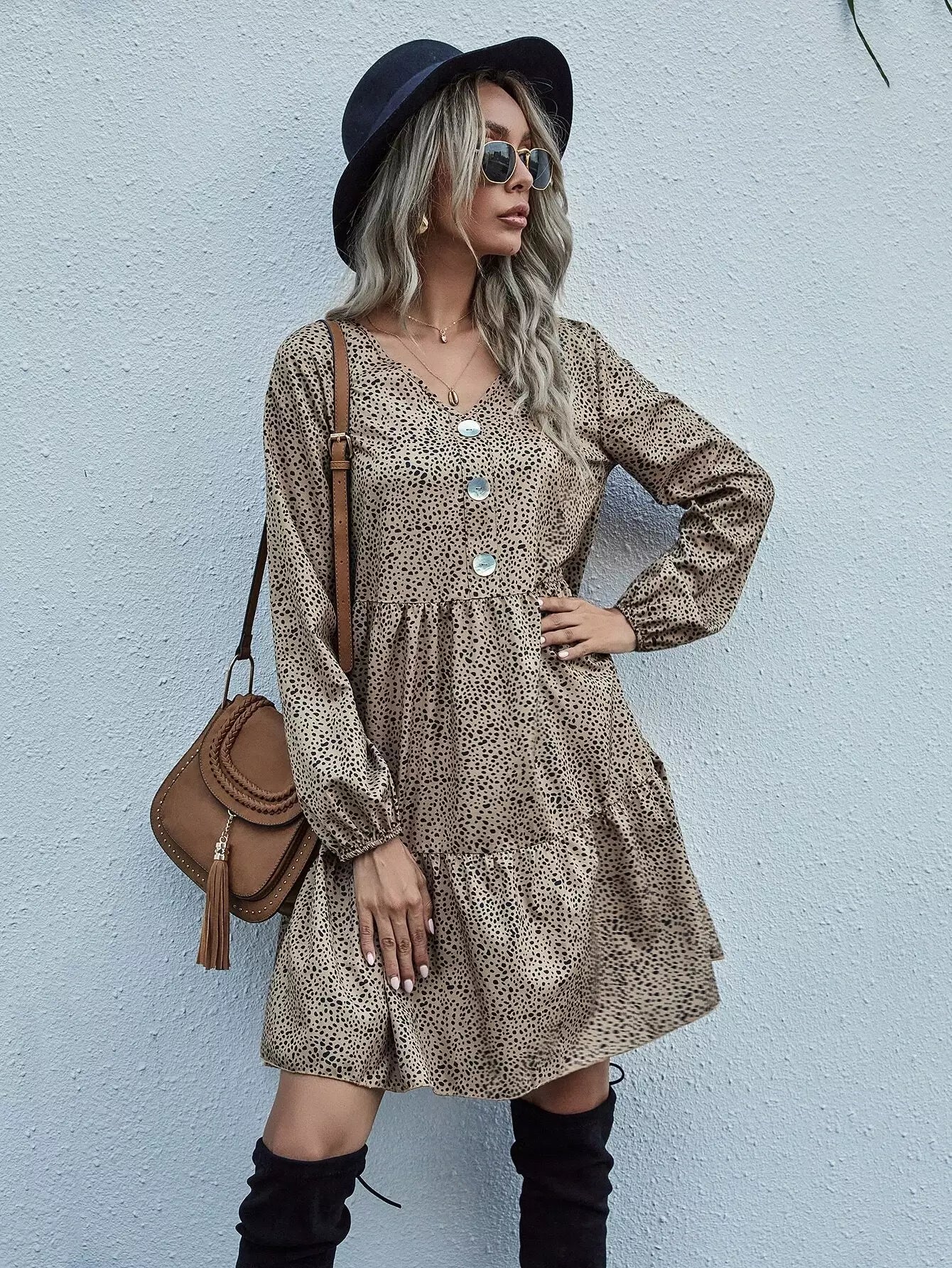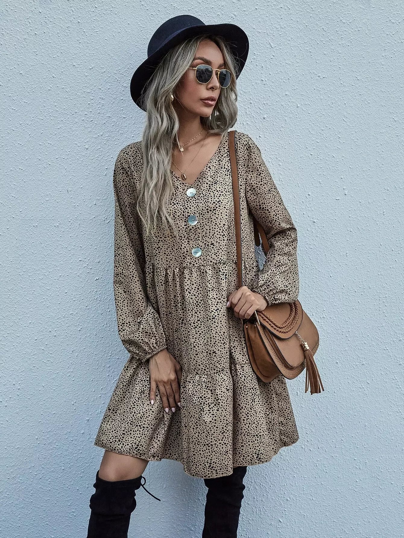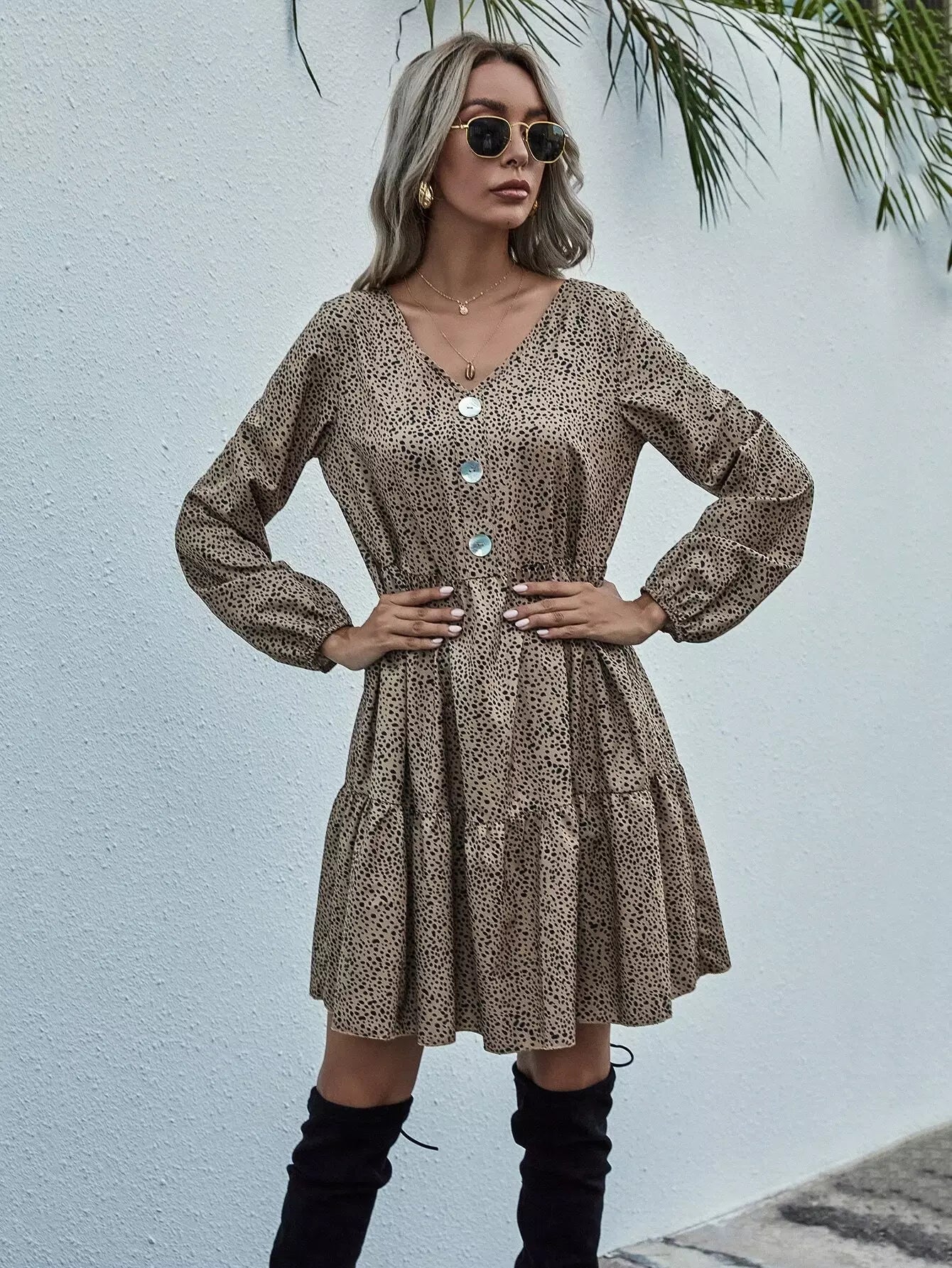 فستان بطبعة أزرار مرقشة بطبعات مرقشة بأزرار مرقشة