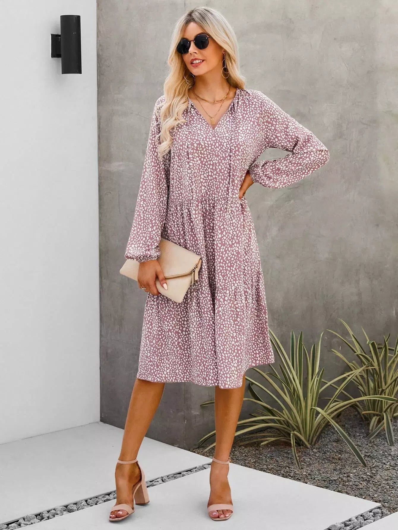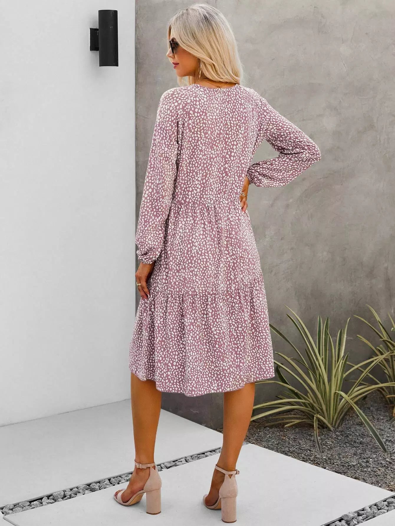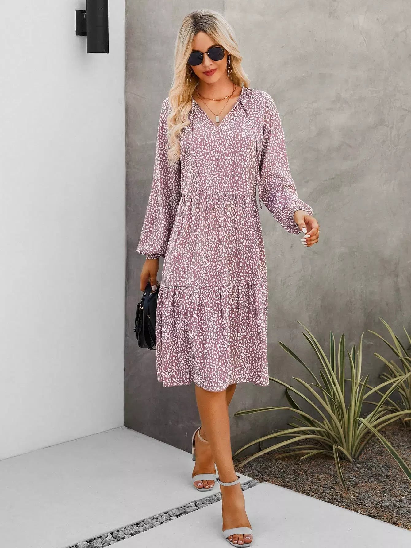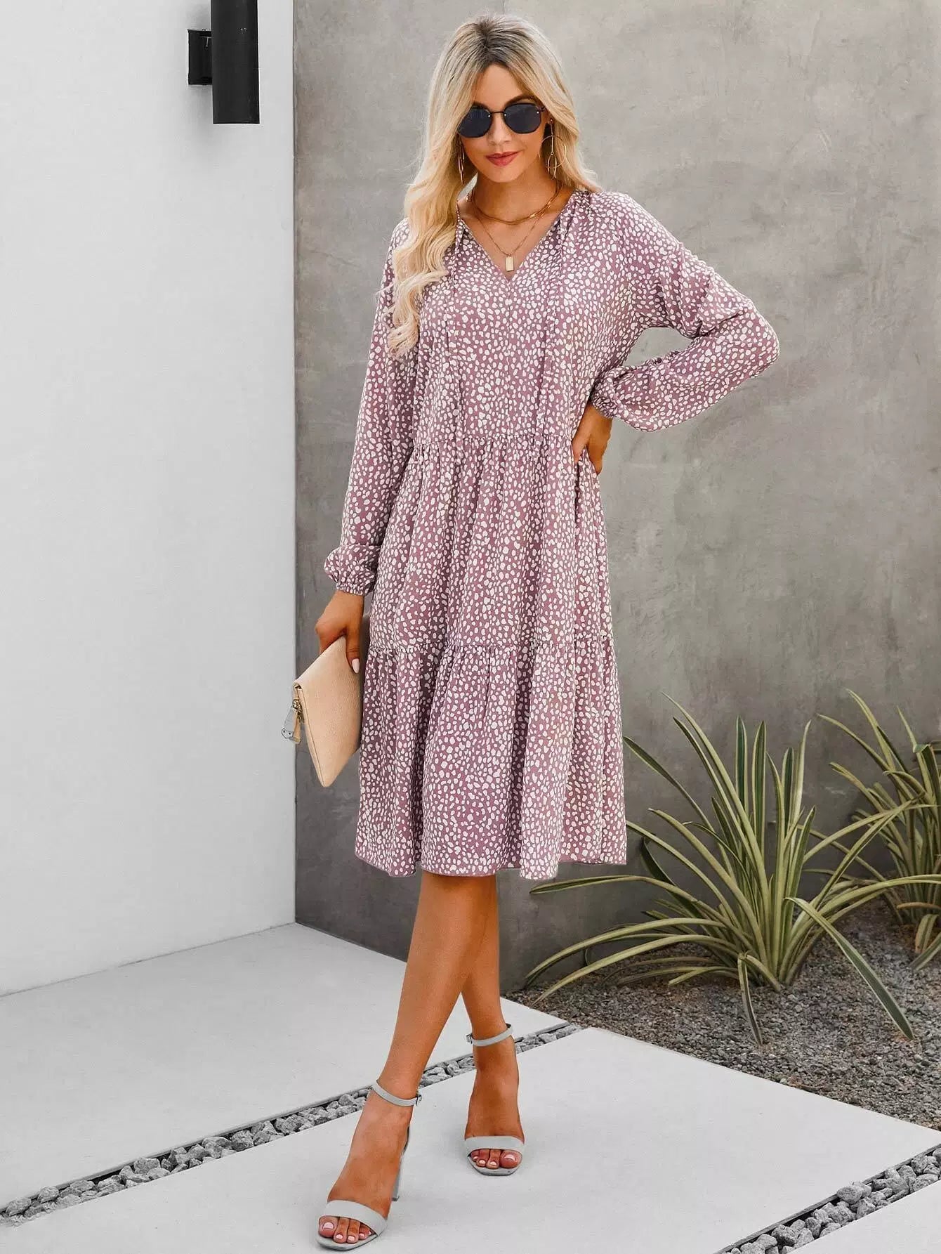 فستان بطبعة دلماسية بأكمام فانوس