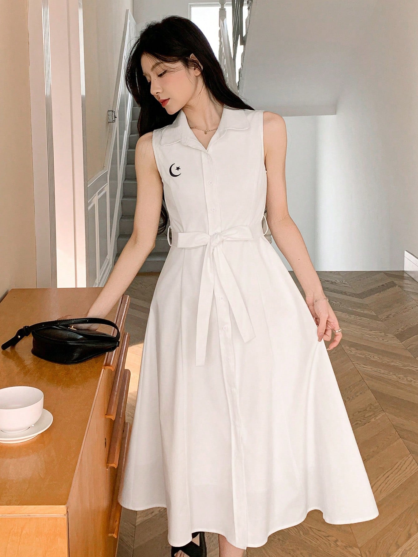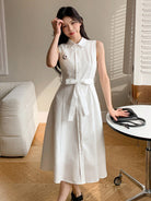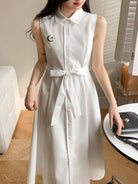 DAZY Embroidered Sleeveless Belted Mid-Length Dress For Women Sundress Shirt Dress,Casual Women Dresses