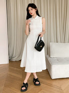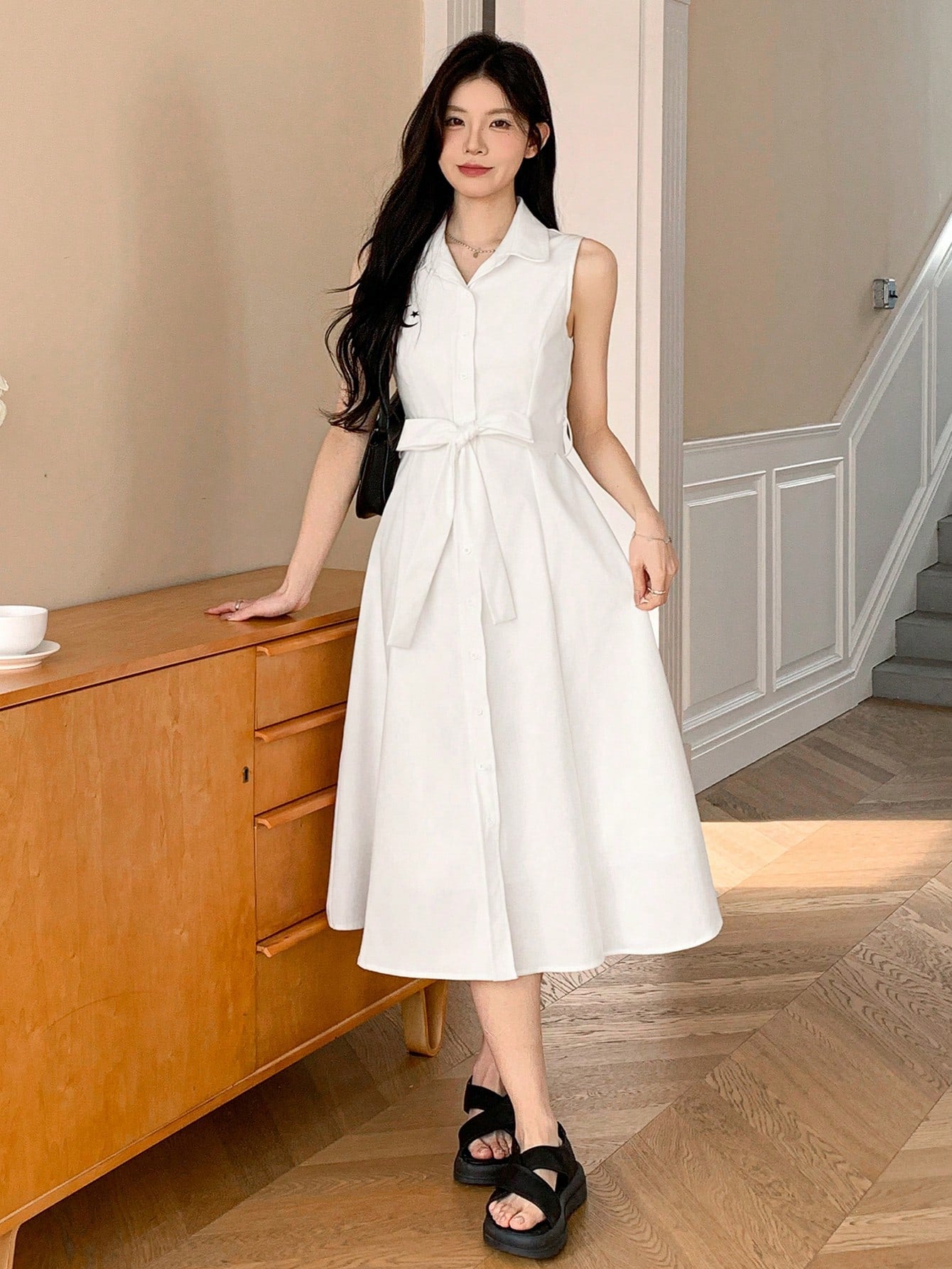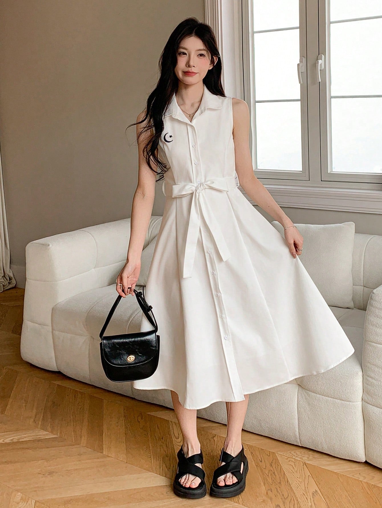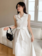 فستان DAZY مطرز بدون أكمام متوسط الطول للنساء، فستان صيفي بنمط قميص، فساتين نسائية كاجوال بدون حزام