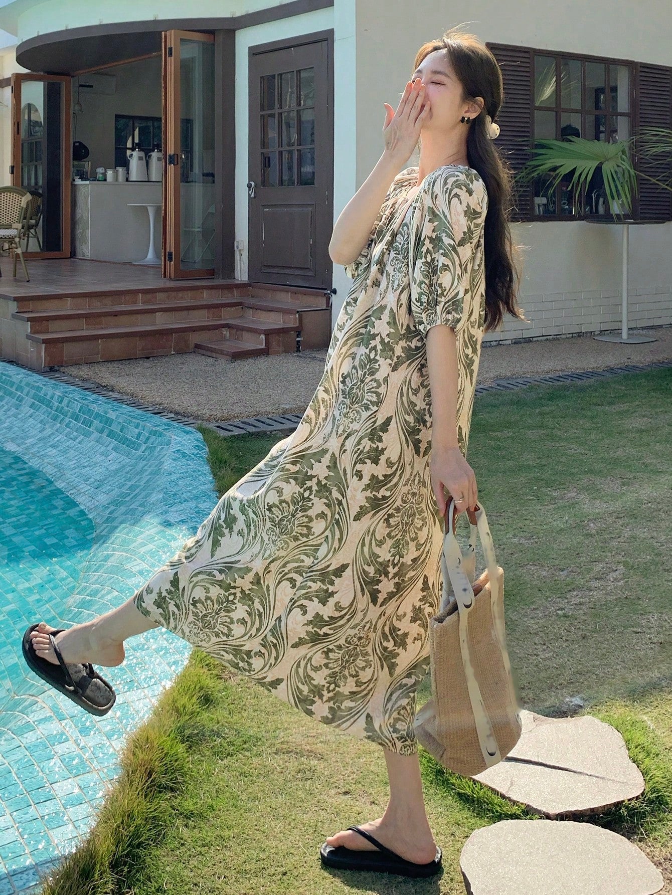فستان شاطئ كاجوال نسائي صيفي من DAZY بنقشة زهور صغيرة، فستان صيفي فضفاض