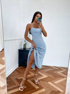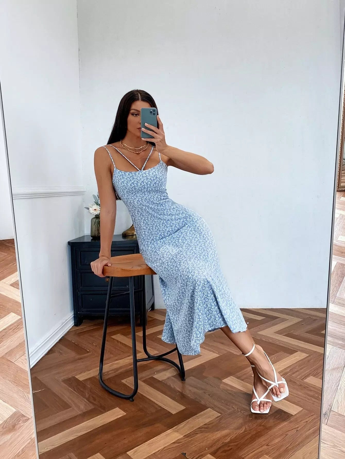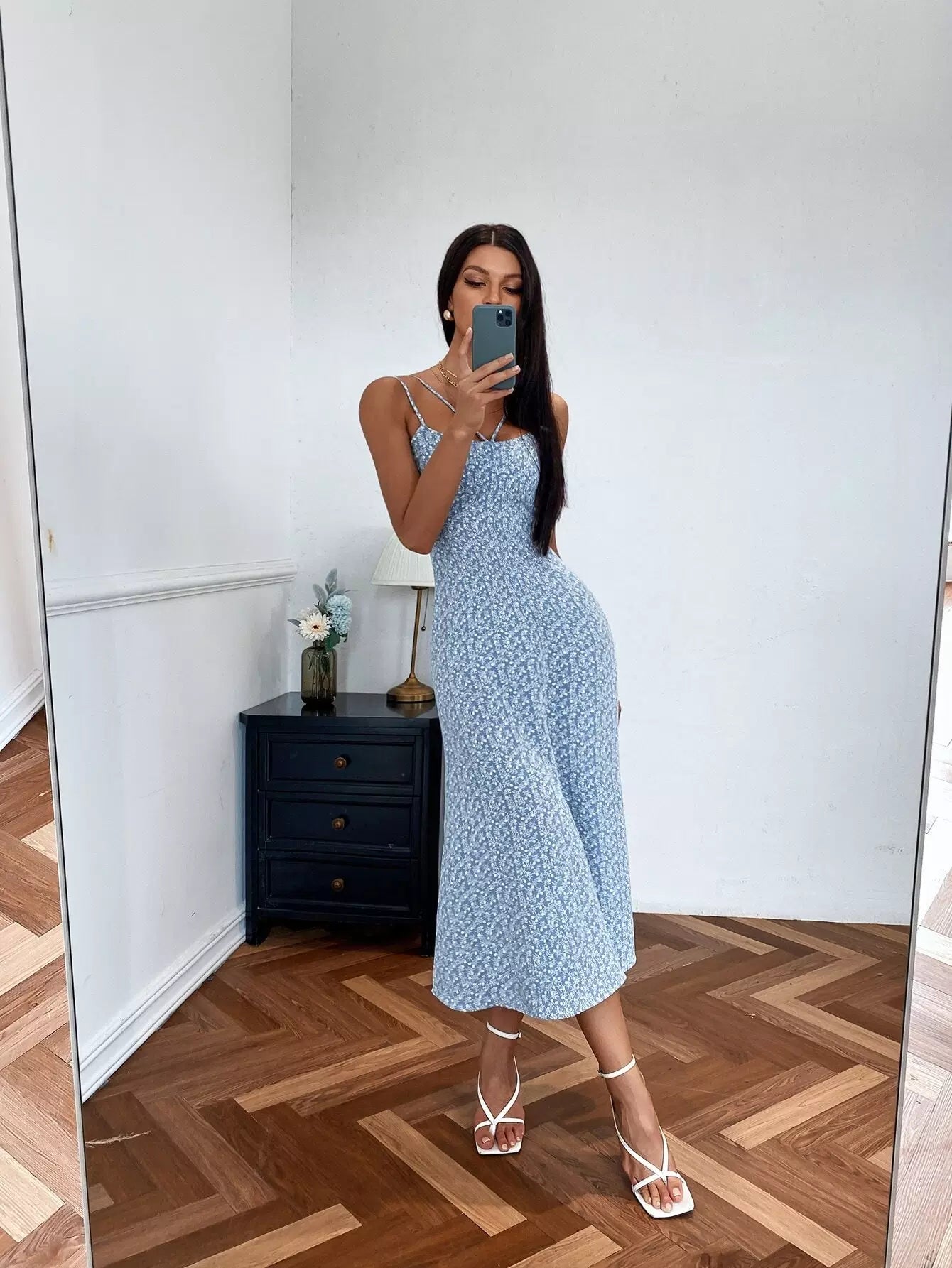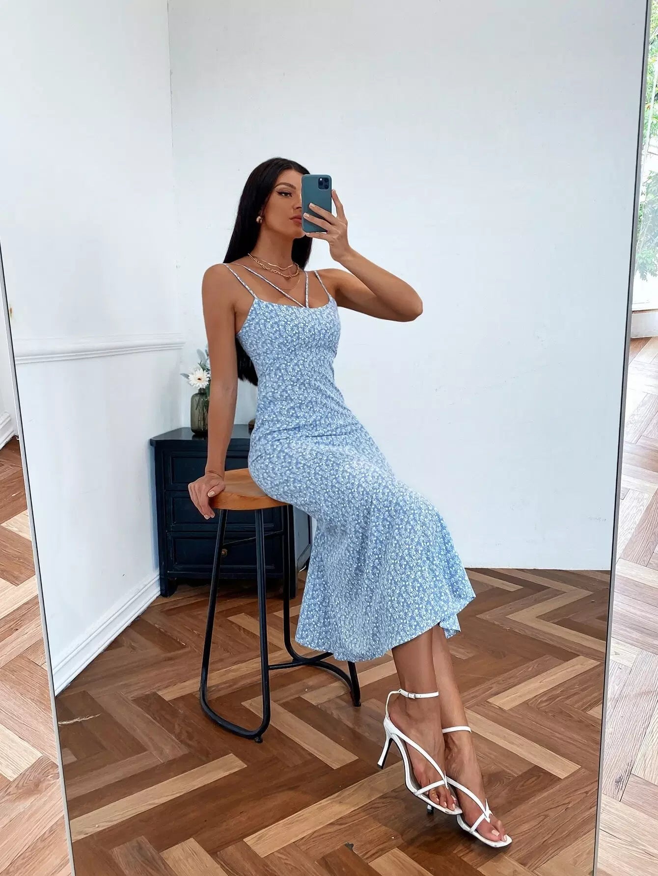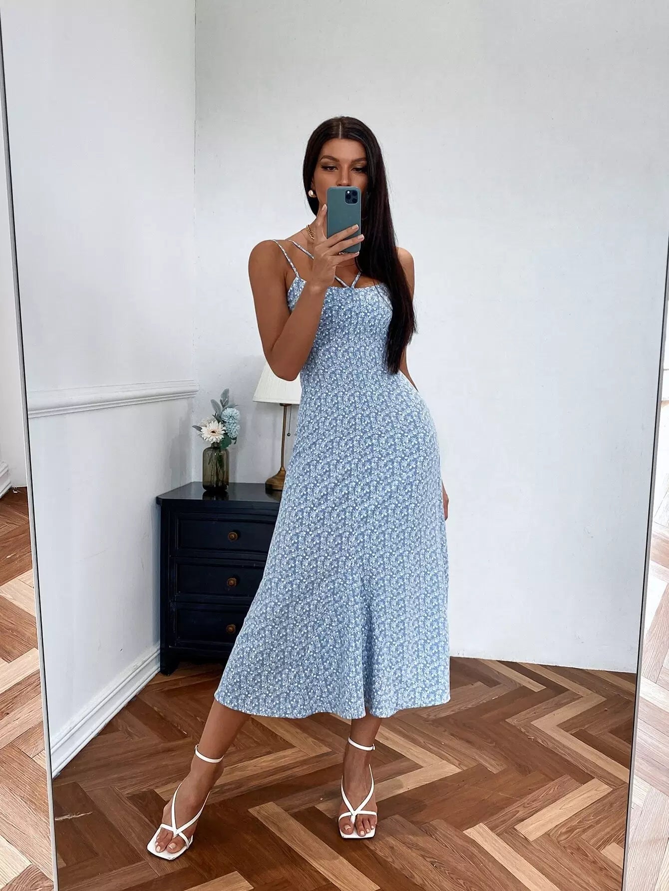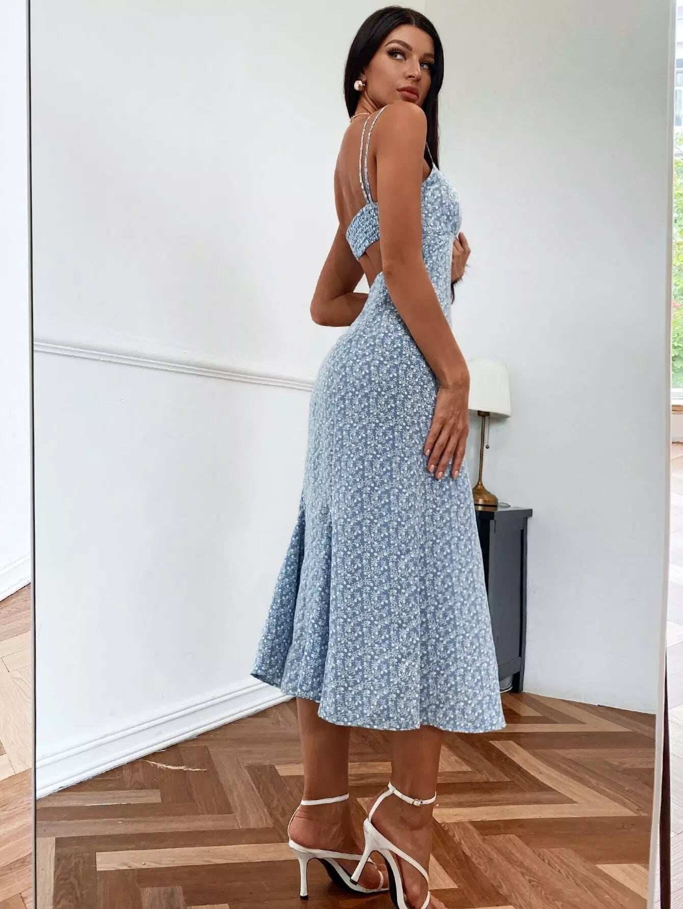 فستان ديتسي بقصّة زهرية مقصوصة من الخلف بشريط من الخلف