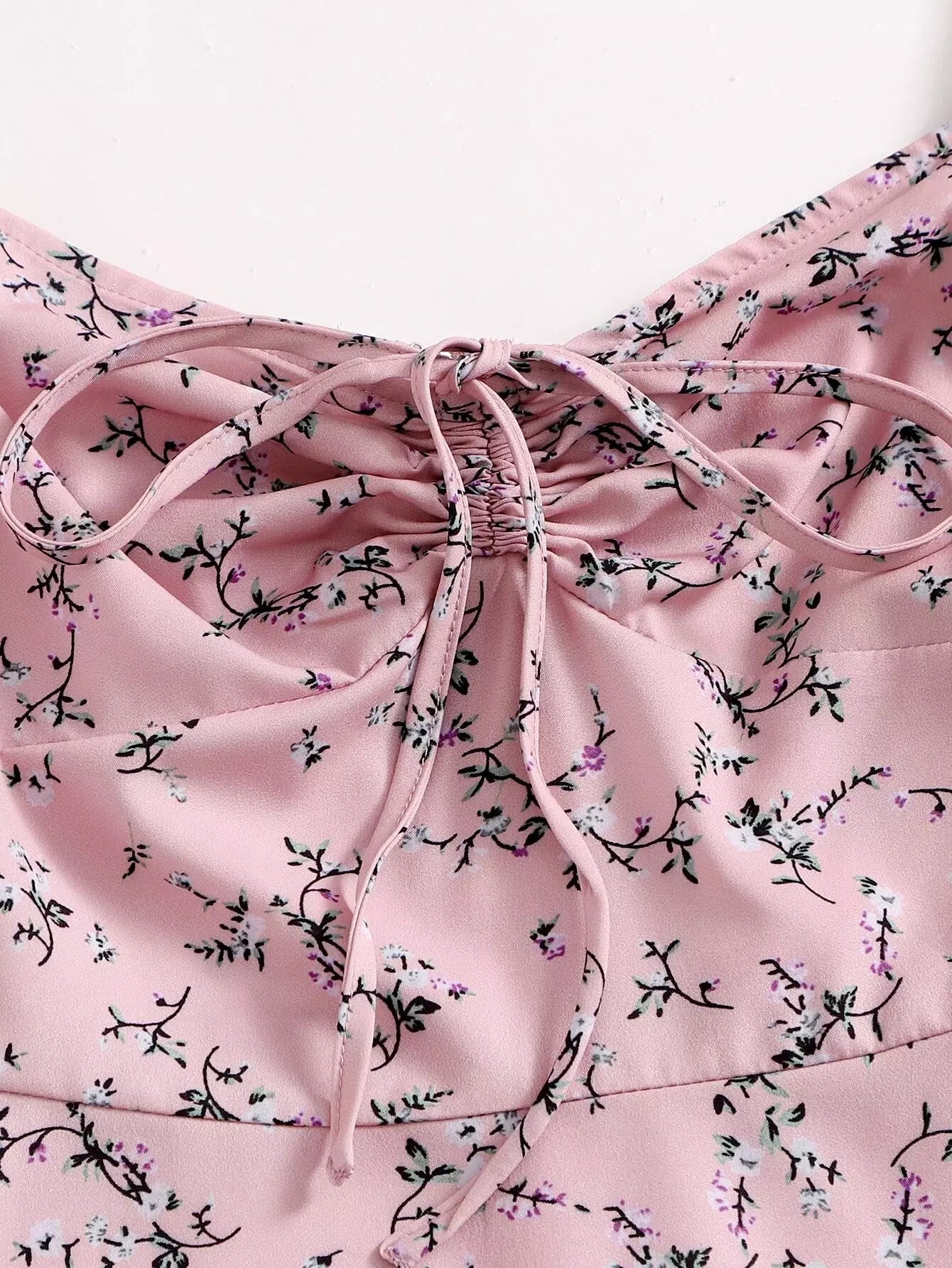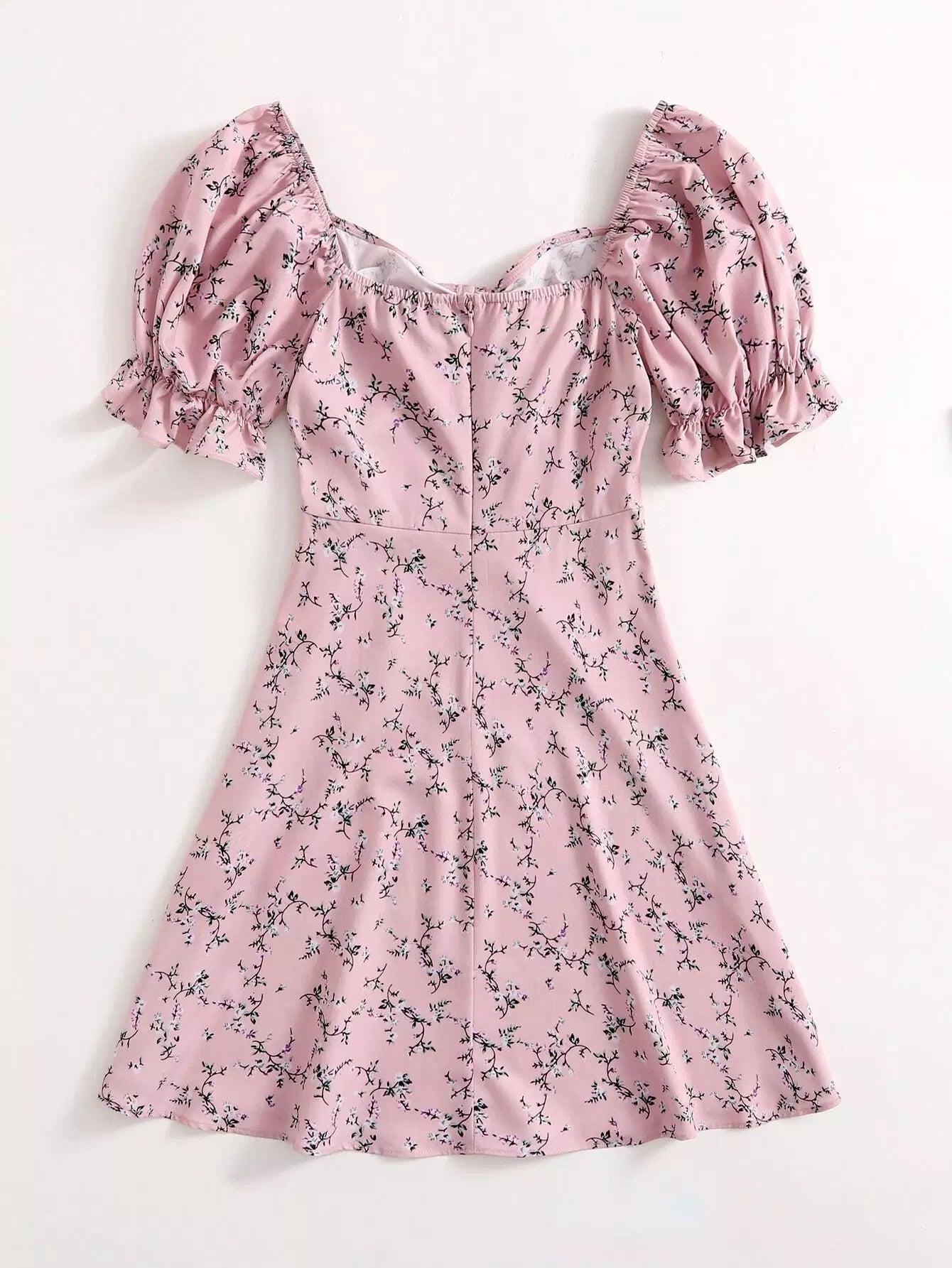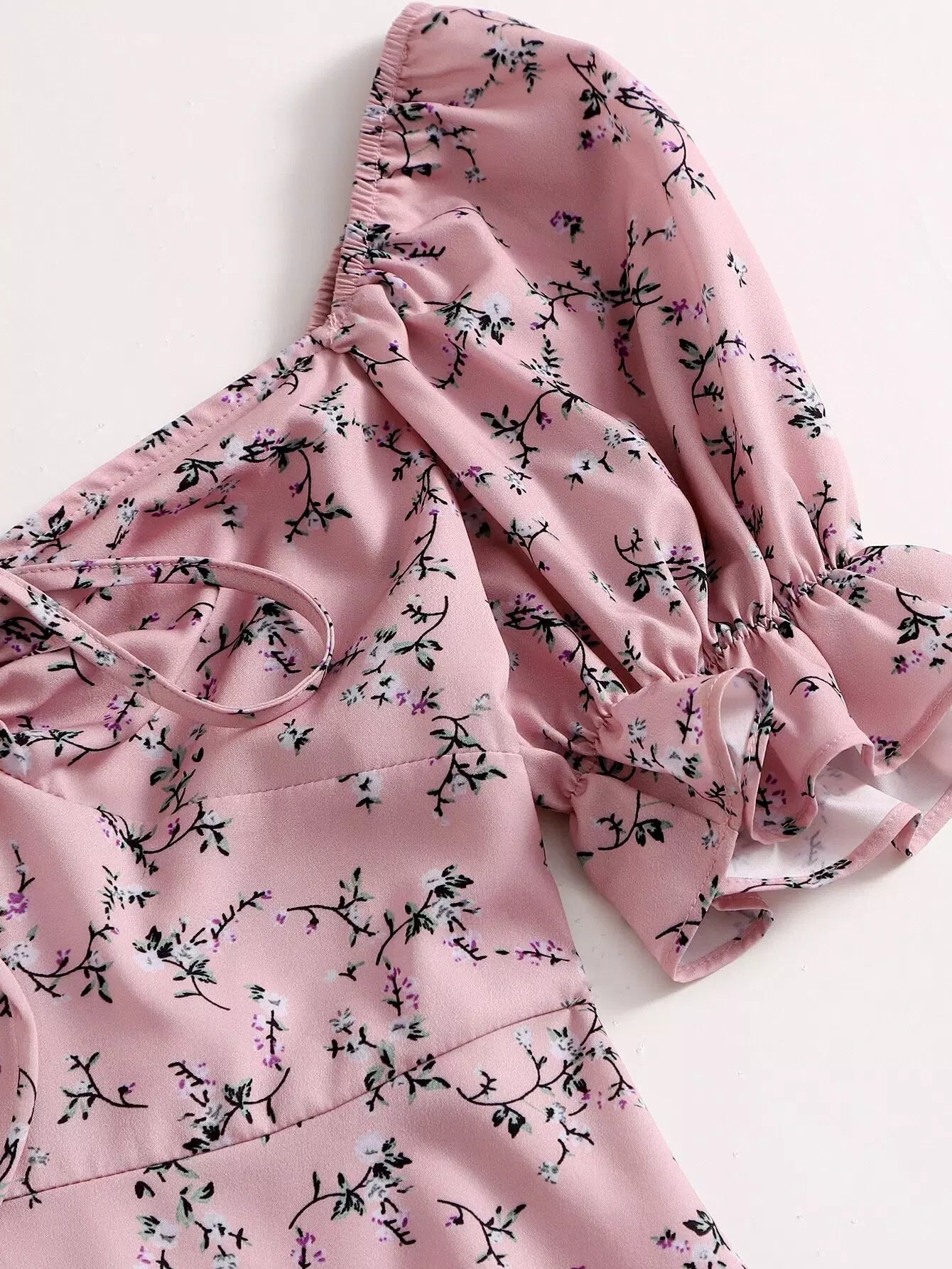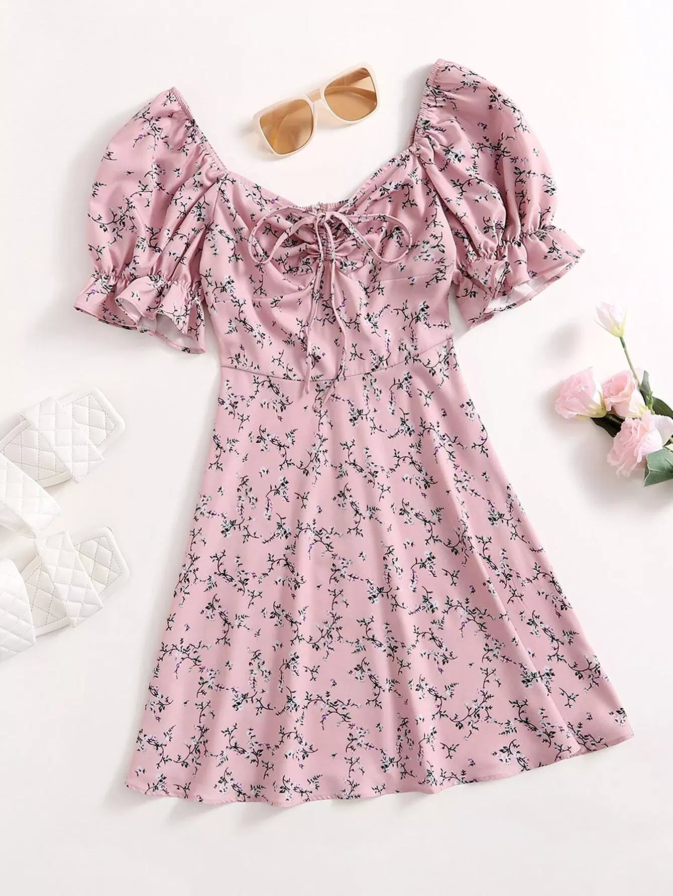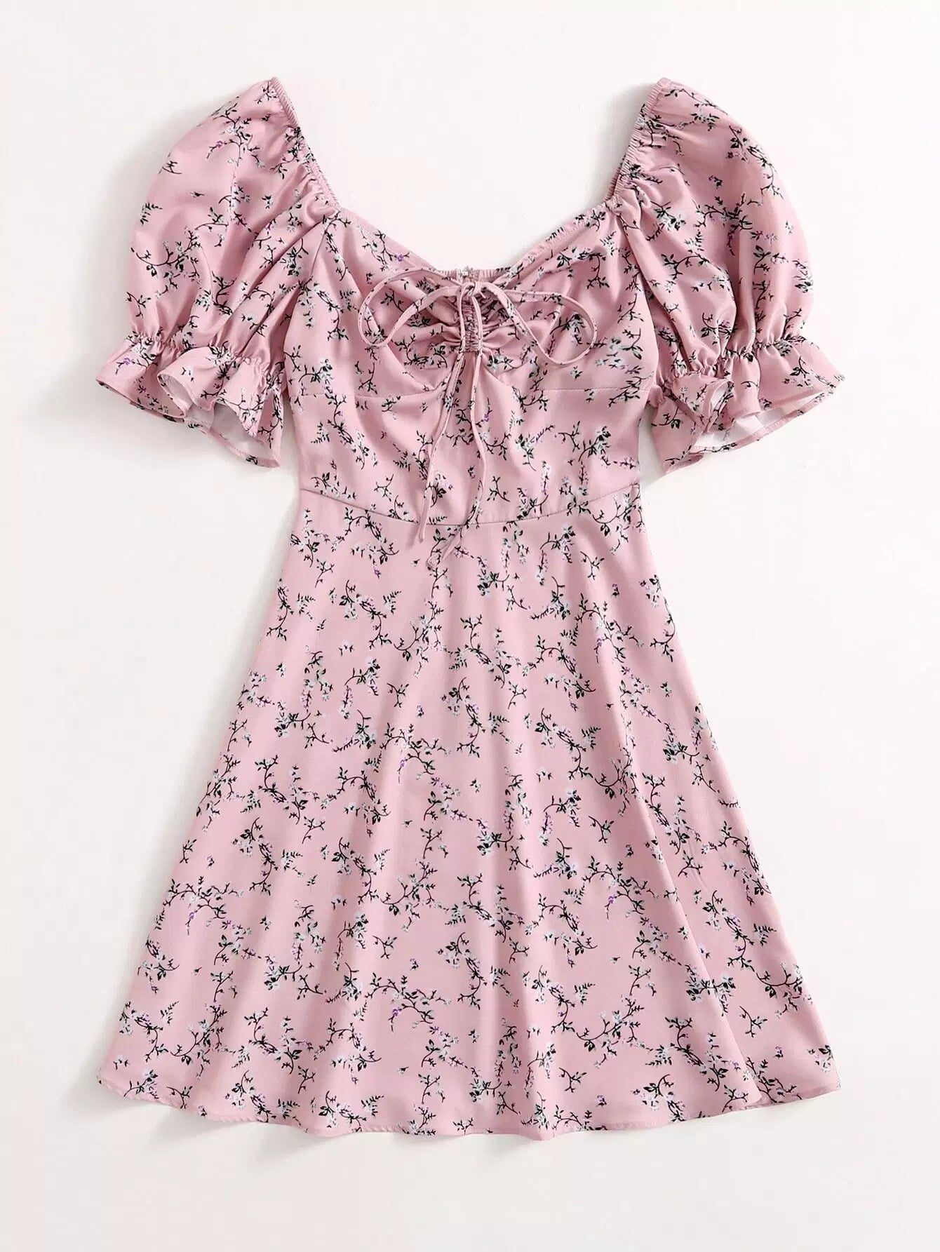 فستان ديتسي بأكمام زهرية منفوشة بأكمام مكشكشة بعقدة أمامية