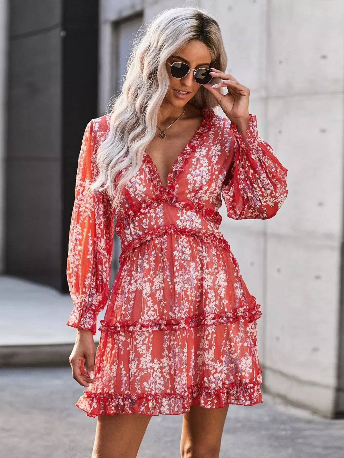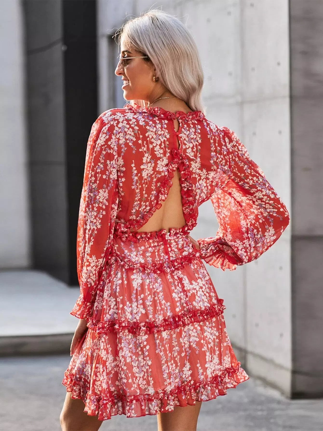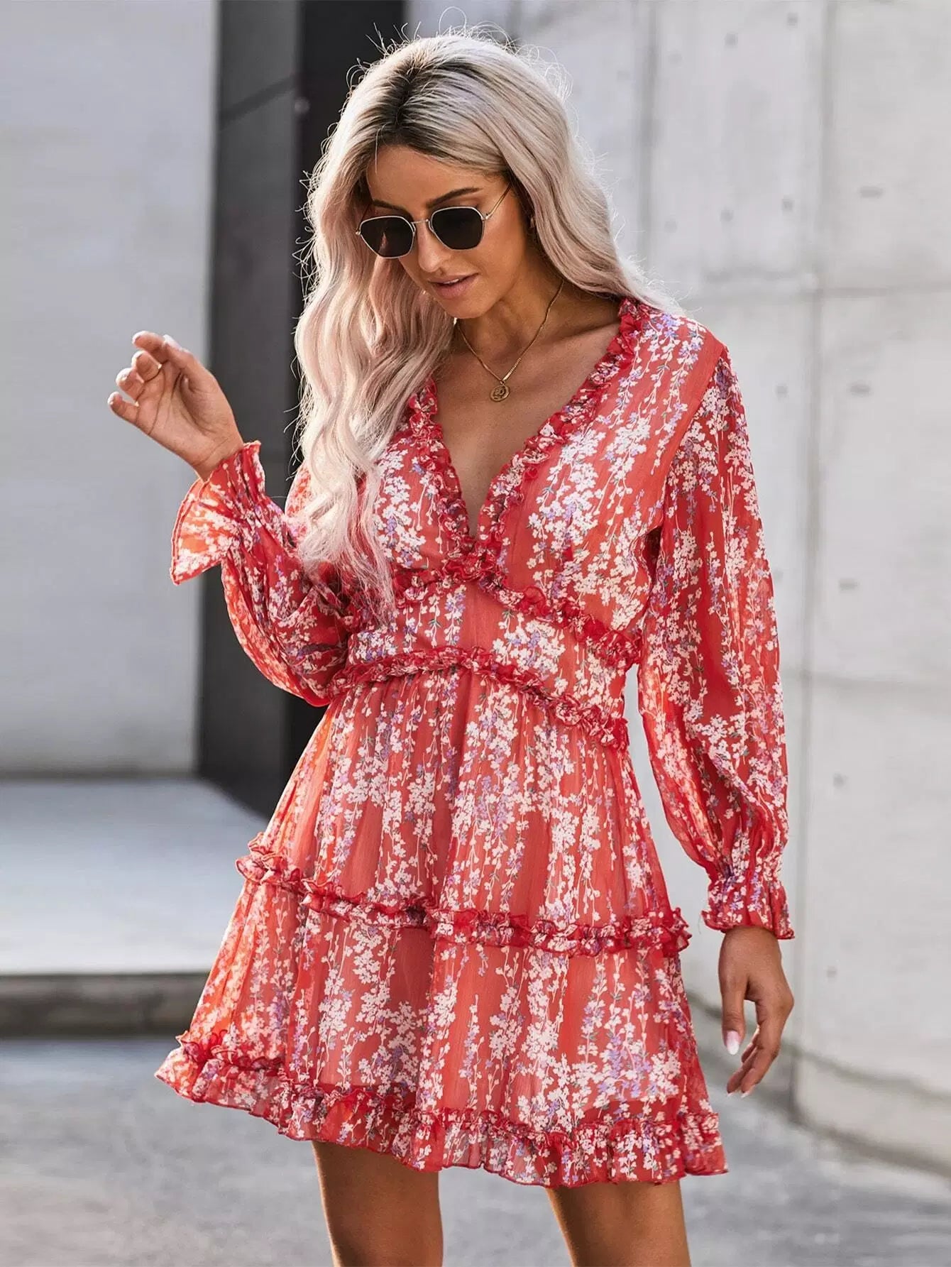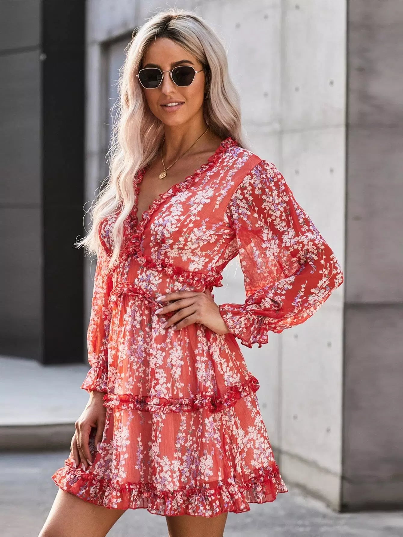 فستان ديتسي بطبعة زهور بطبعة زهور بدون أهداب على شكل حرف A