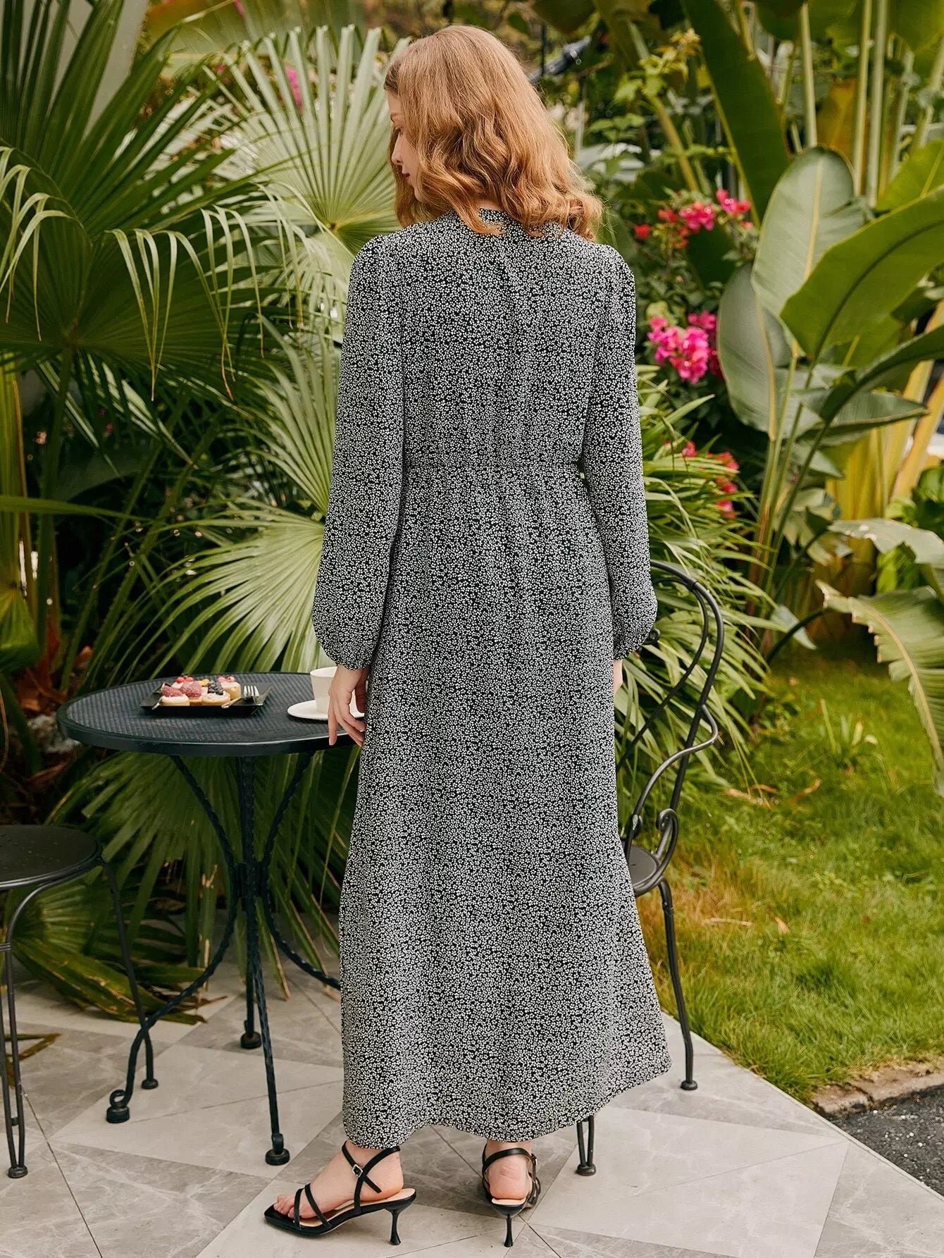 للنساء - فستان Ditsy بطبعات زهور وربطة عنق وأزرار