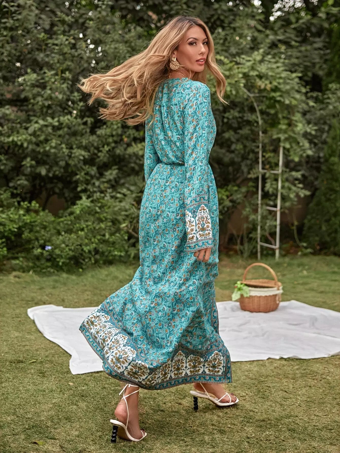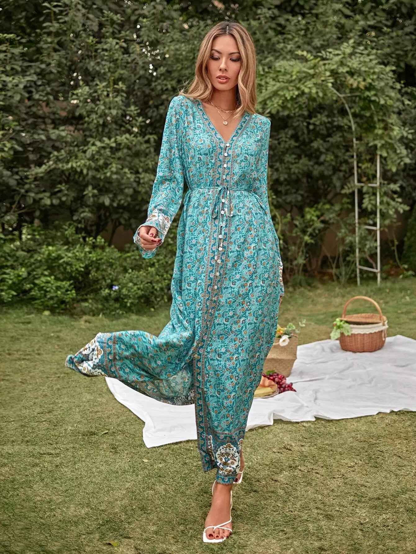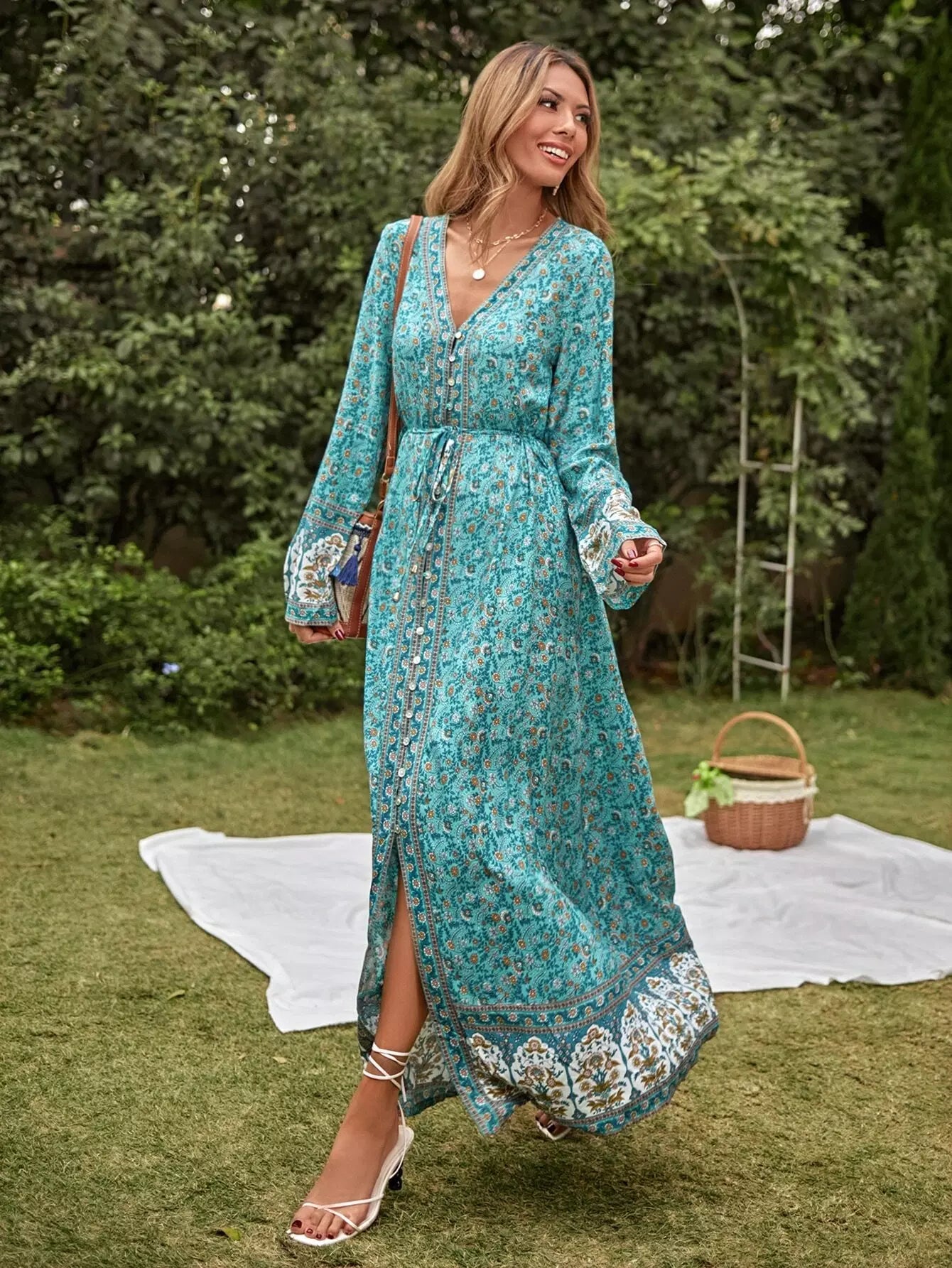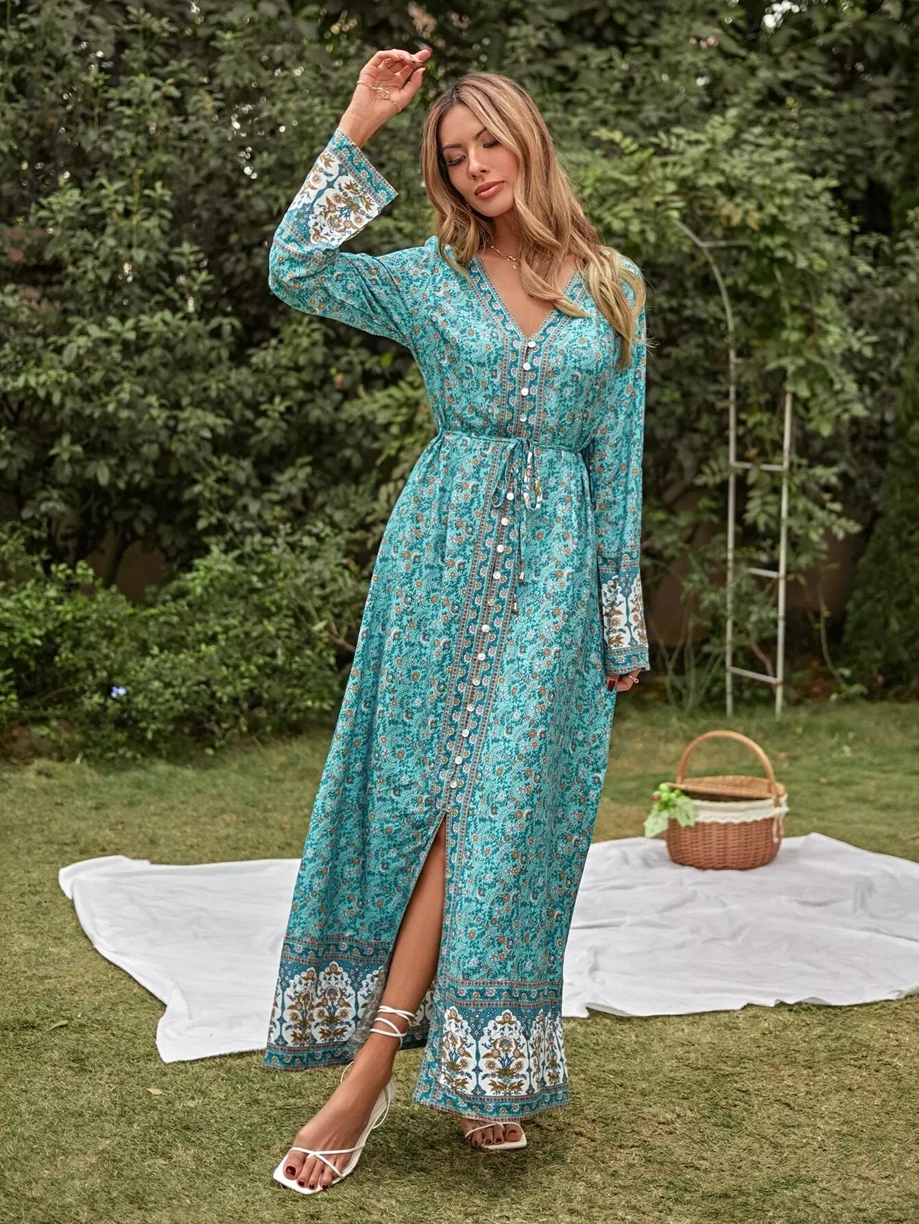 فستان Ditsy بفتحة أمامية مزين بالزهور بدون حزام