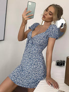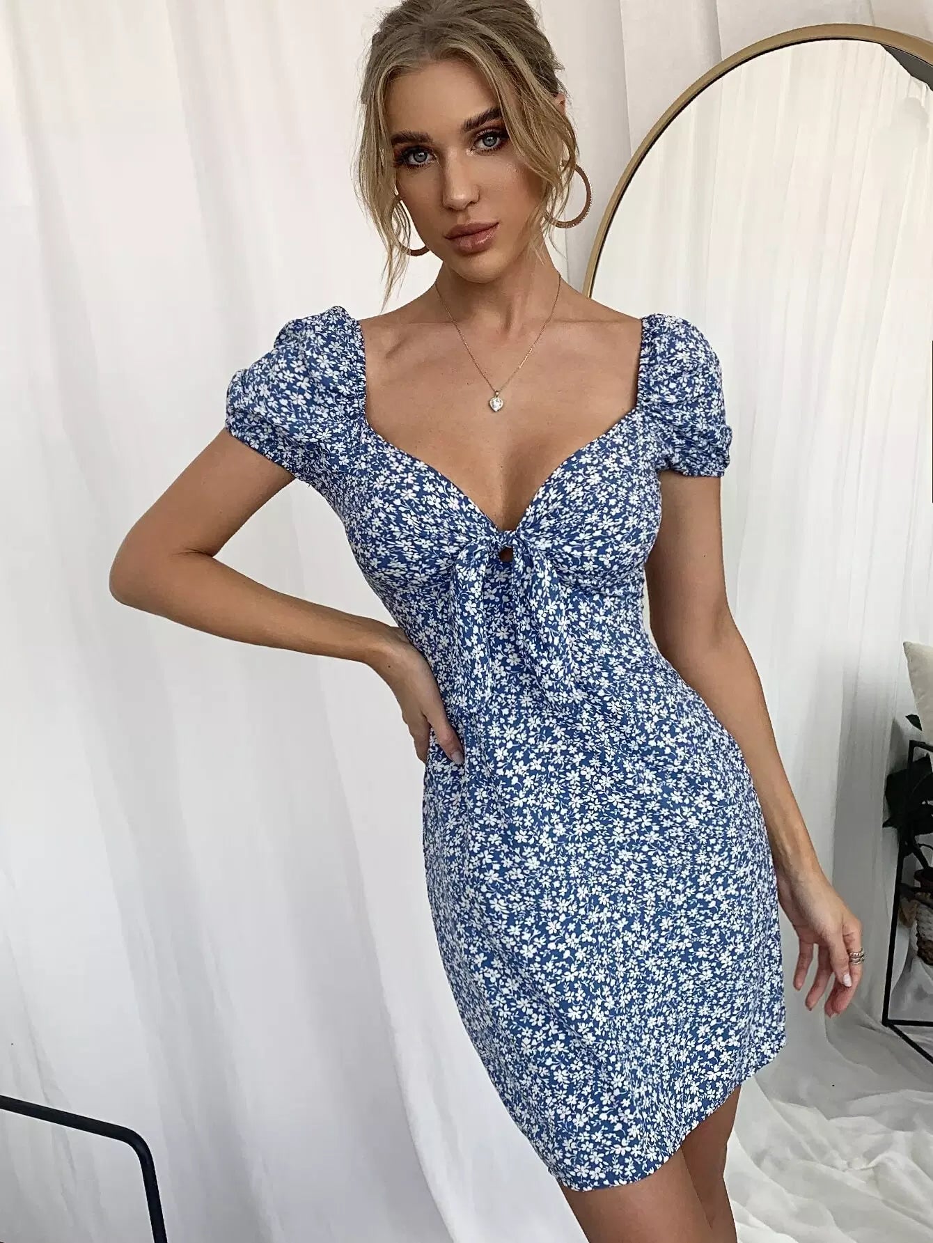 النساء - فستان ديتسي برباط أمامي مزين بالزهور