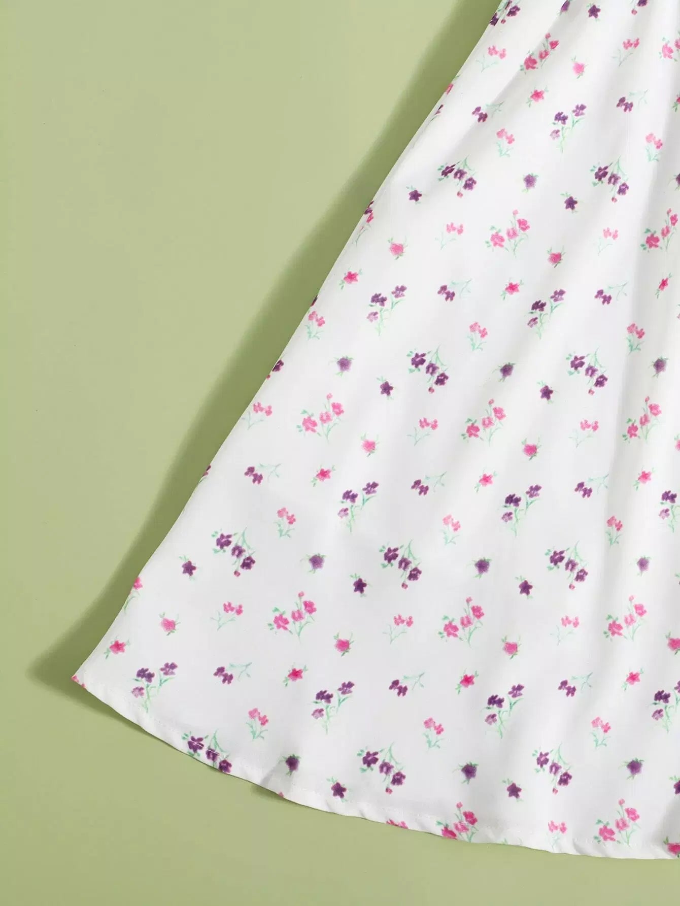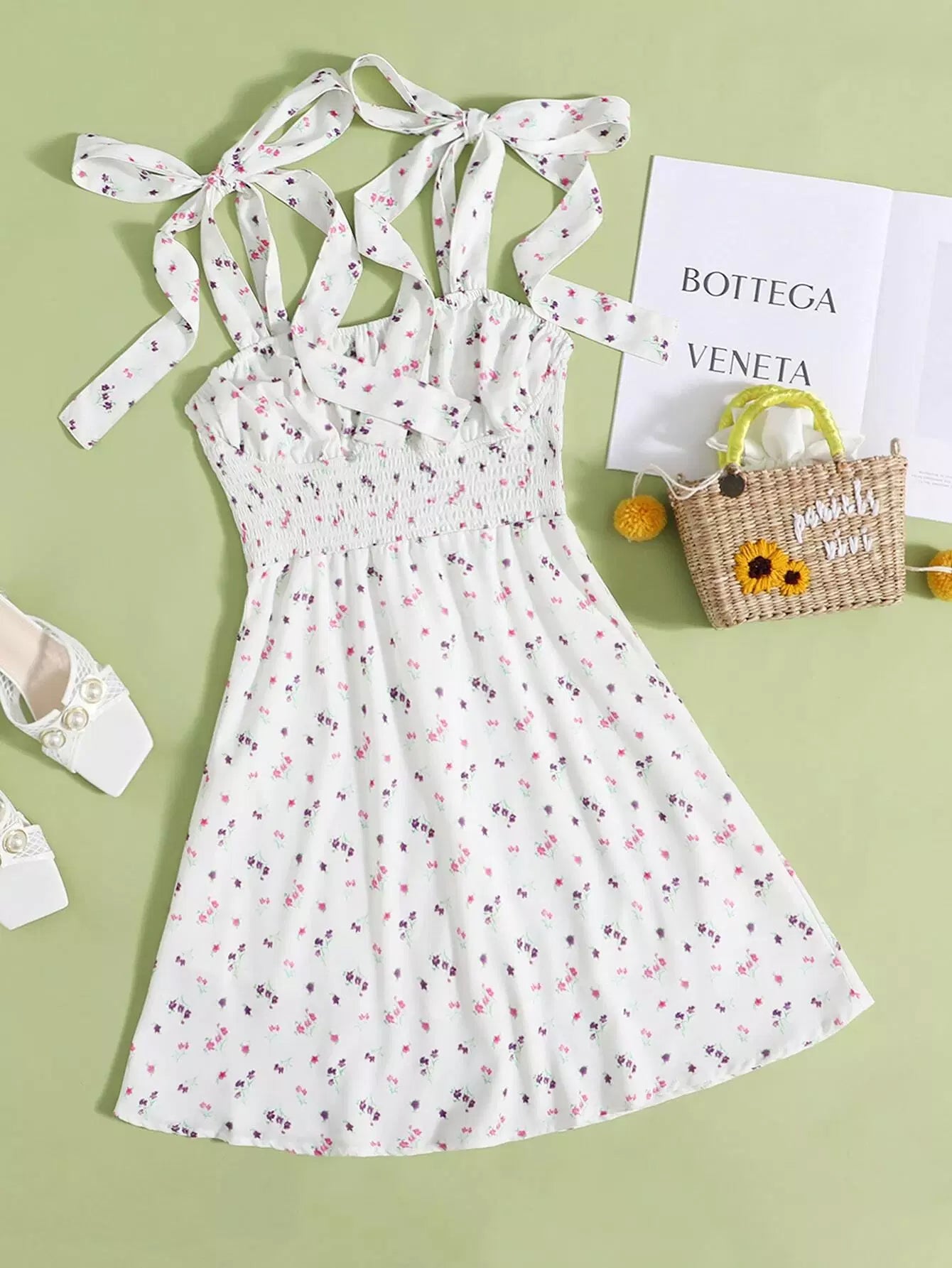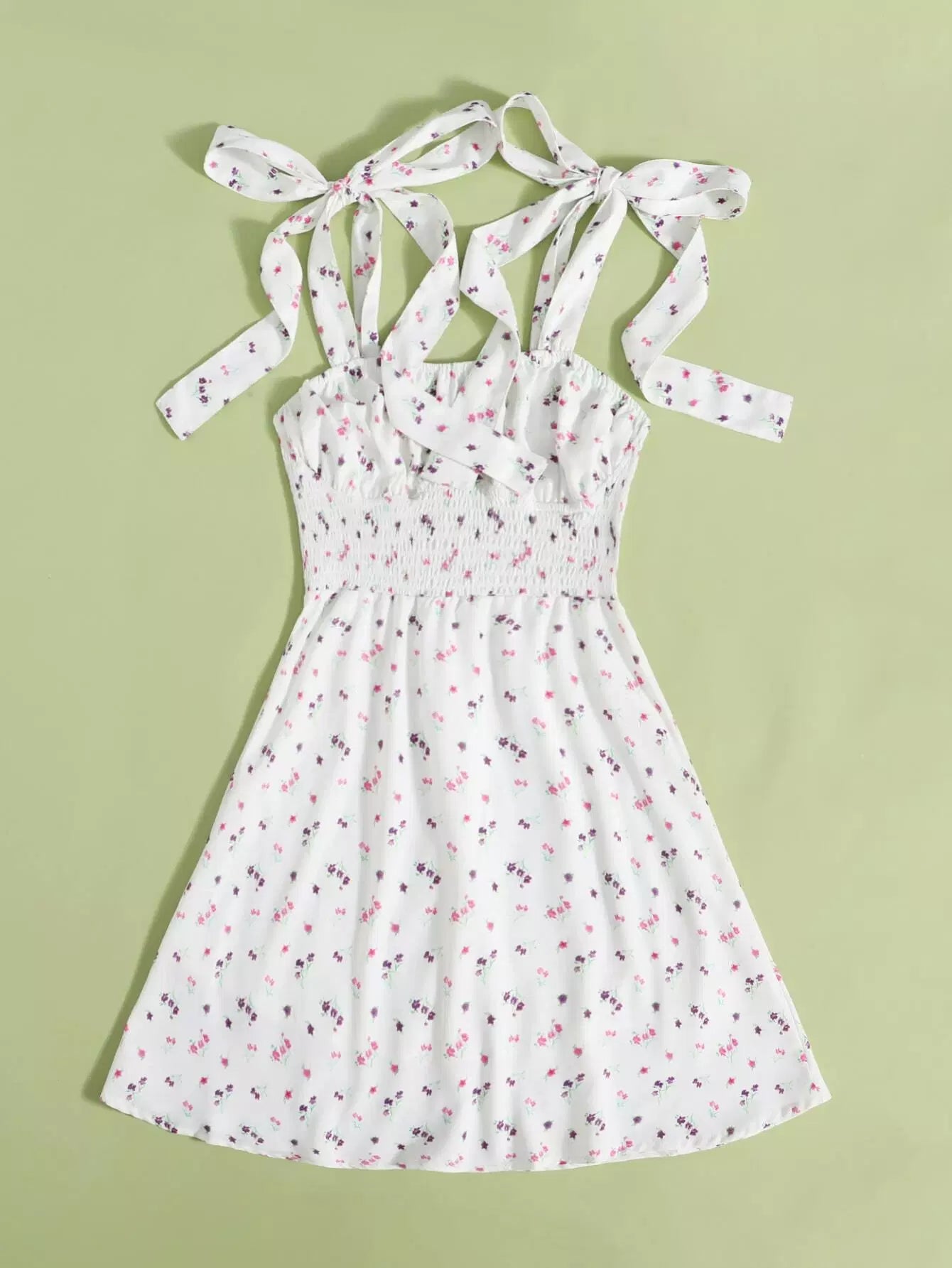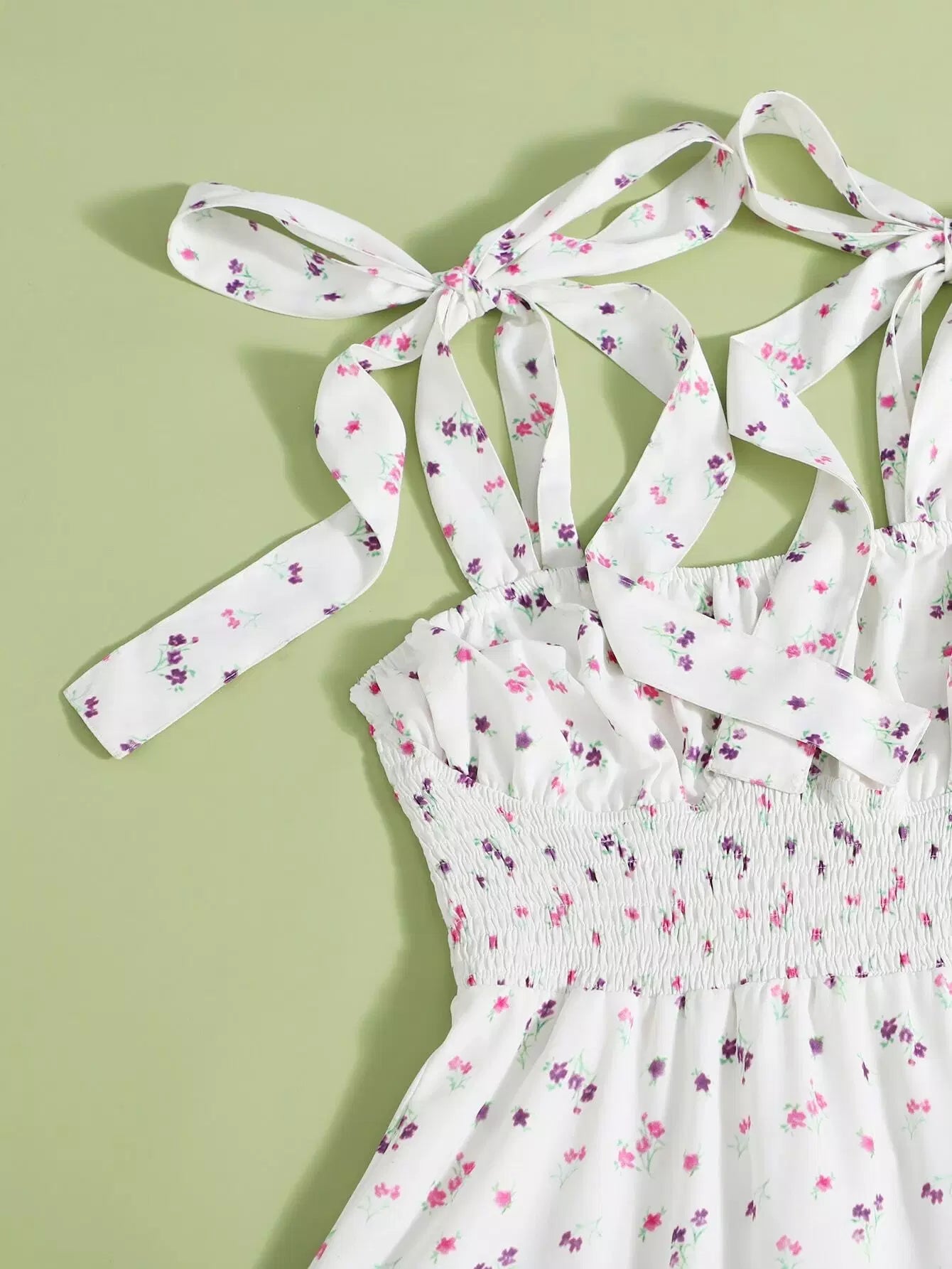فستان ديتسي مزين برباطات زهرية على الكتف بربطة كتف بشريط على الخصر
