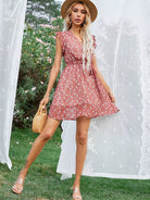 فستان ديتسي مزين بالزهور وياقة V بدون حزام