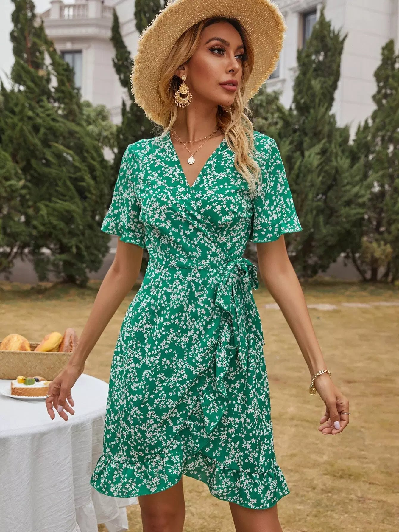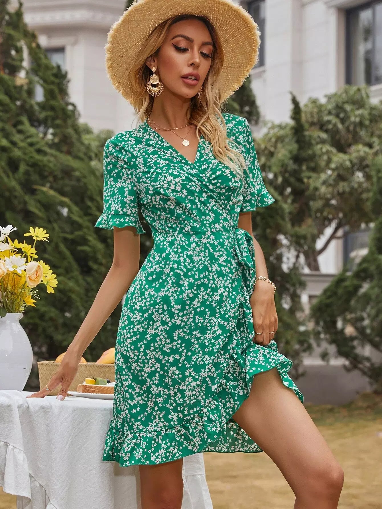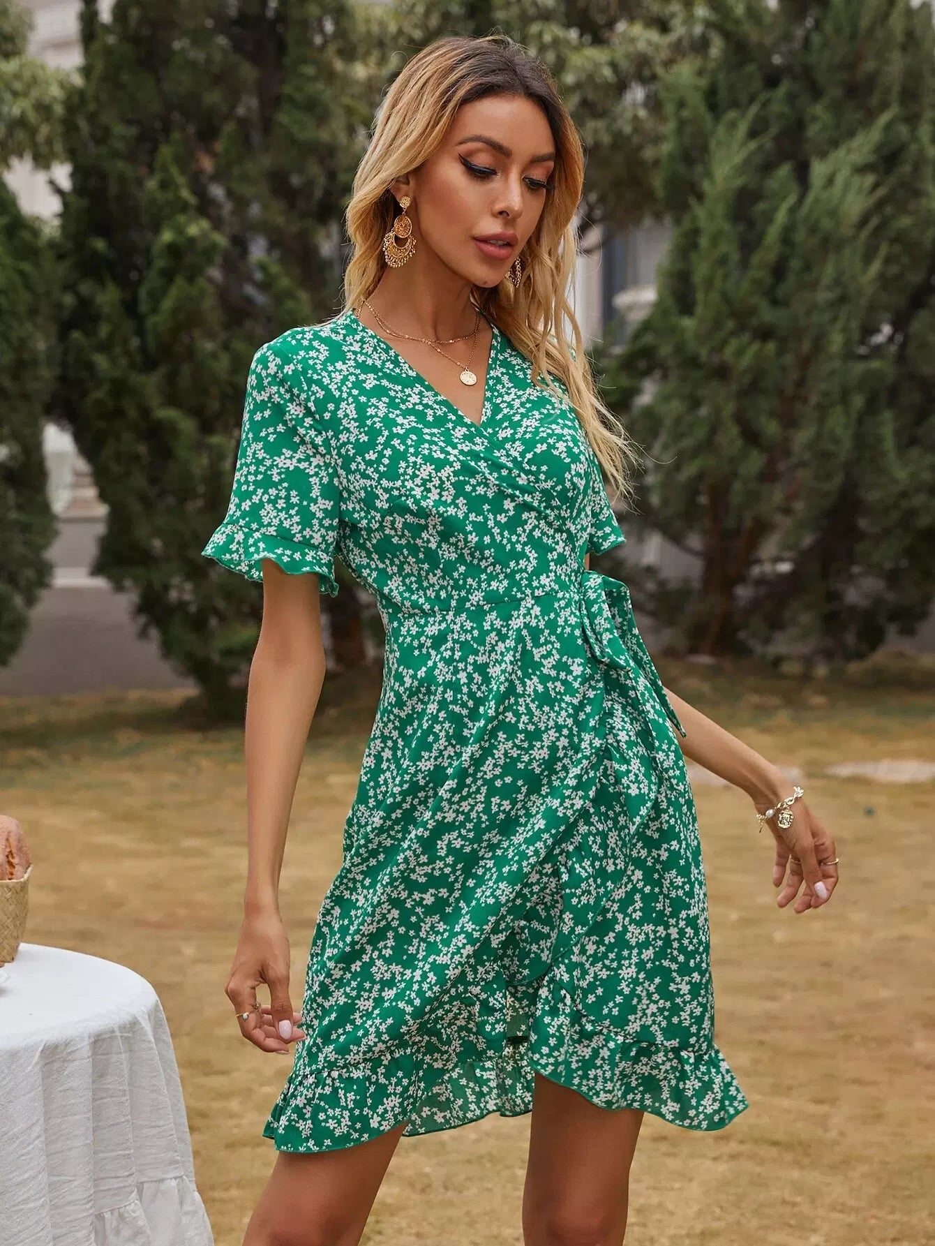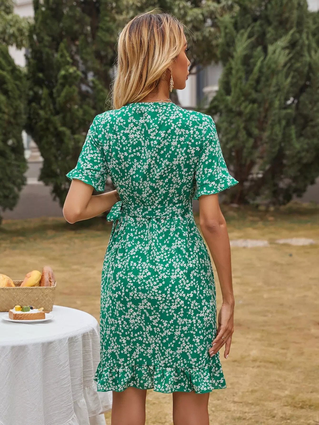 فستان ديتسي مزين برباط أزهار ملفوف على الجانب