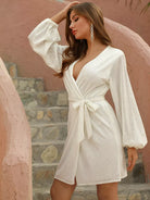 فستان DKRX بأكمام واسعة ملفوفة بالترتر بدون حزام
