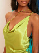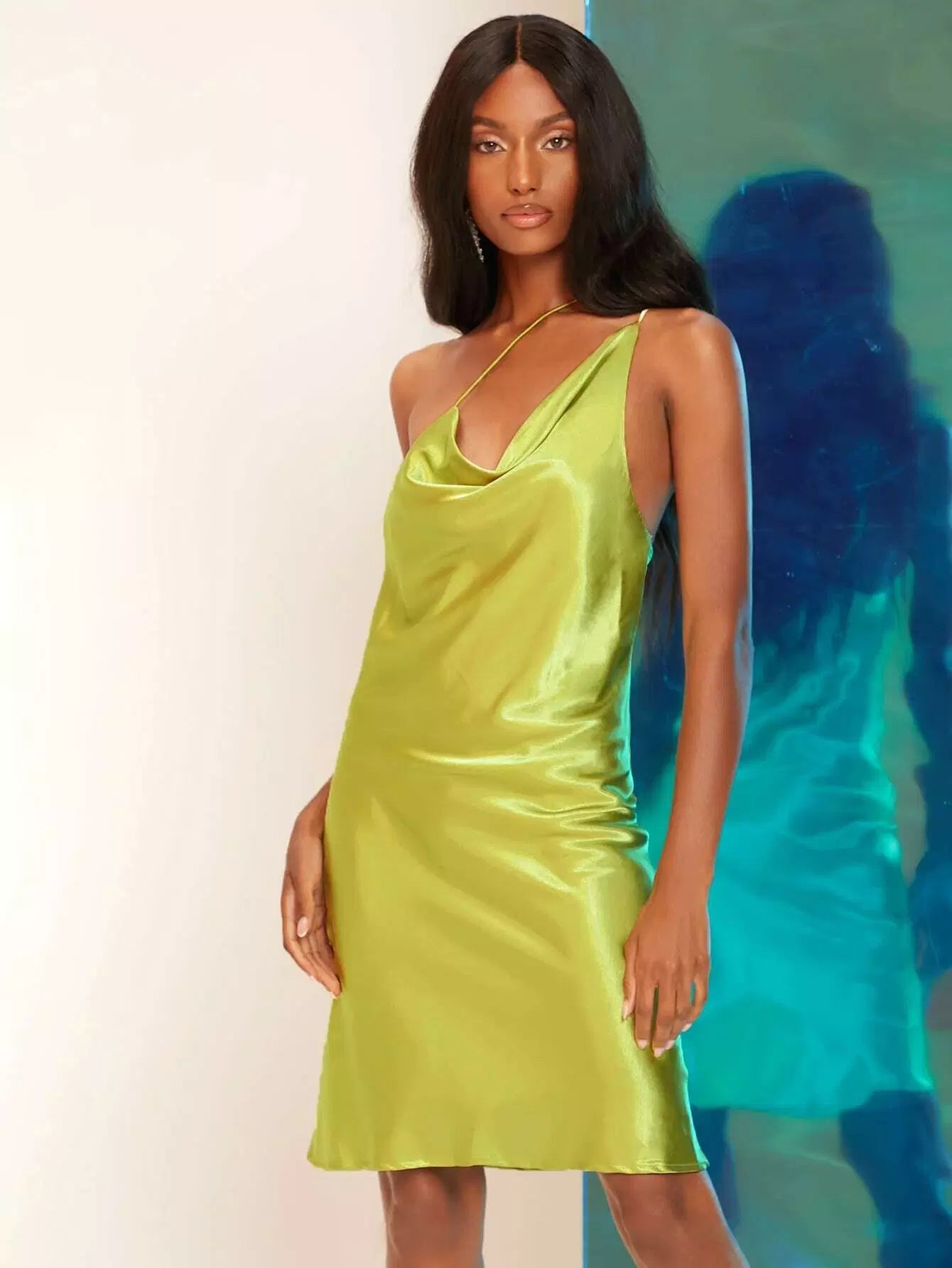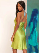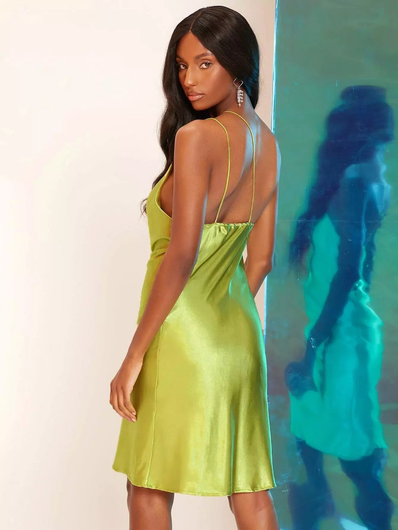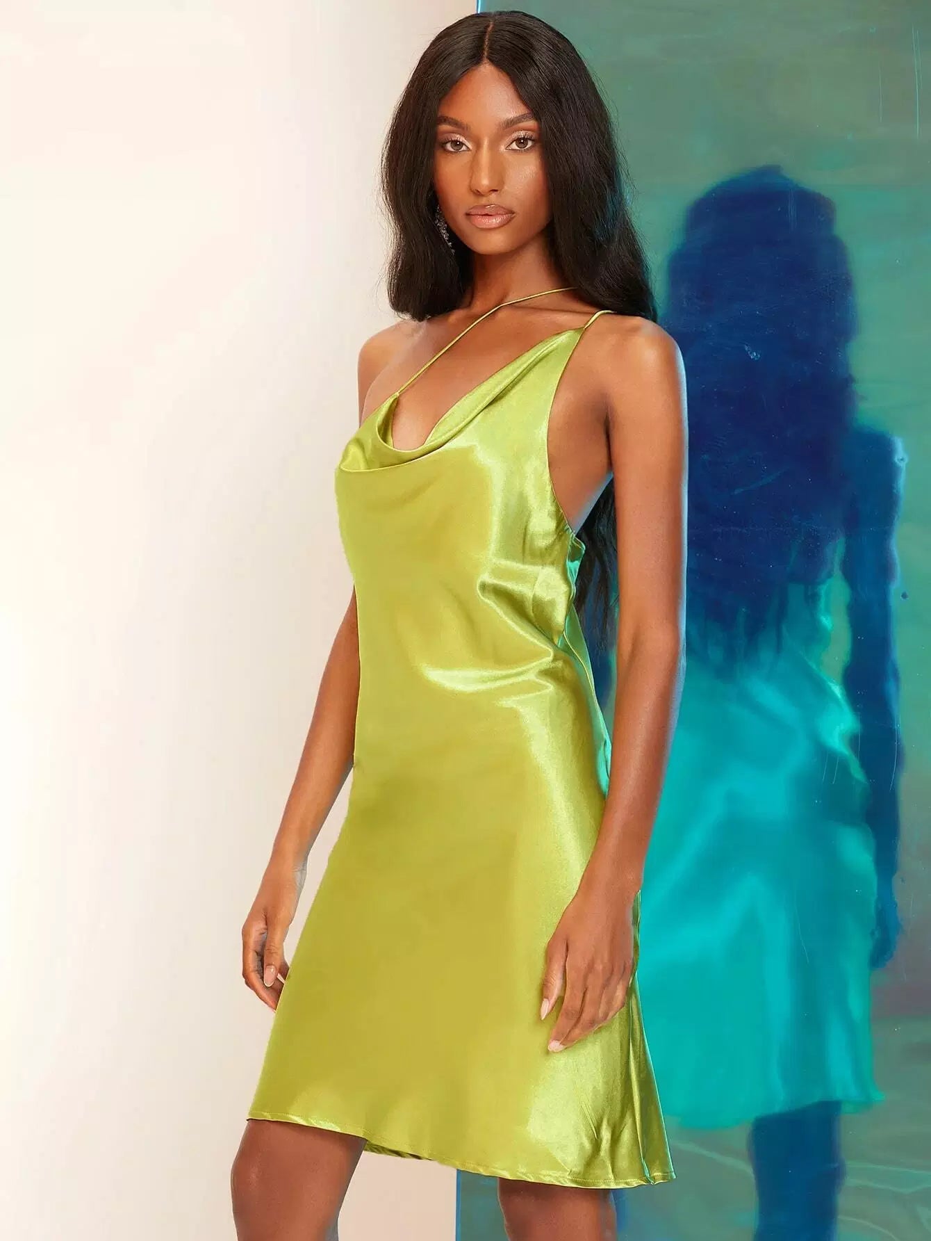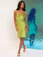 فستان كامي من الساتان ذو مقدمة منسدلة