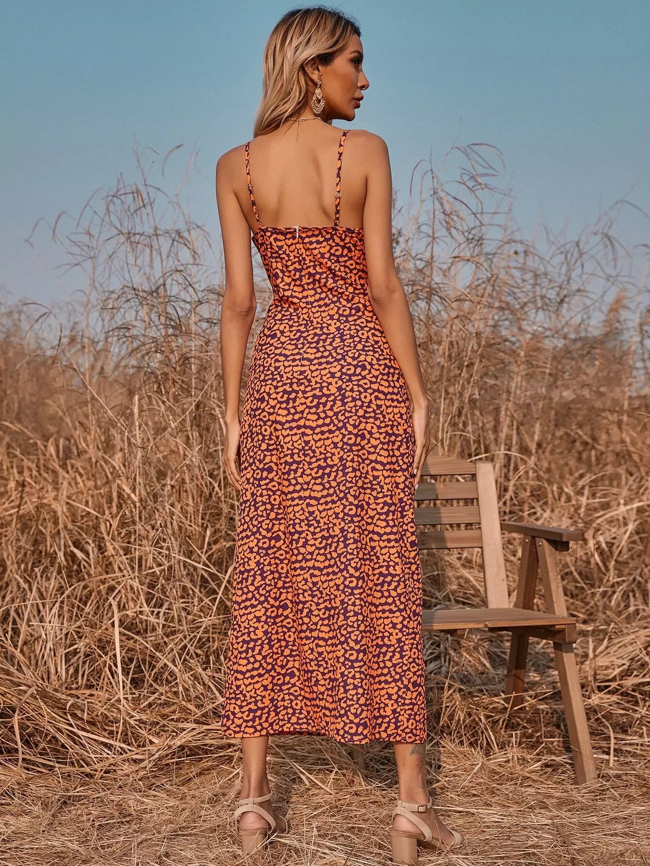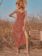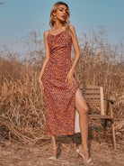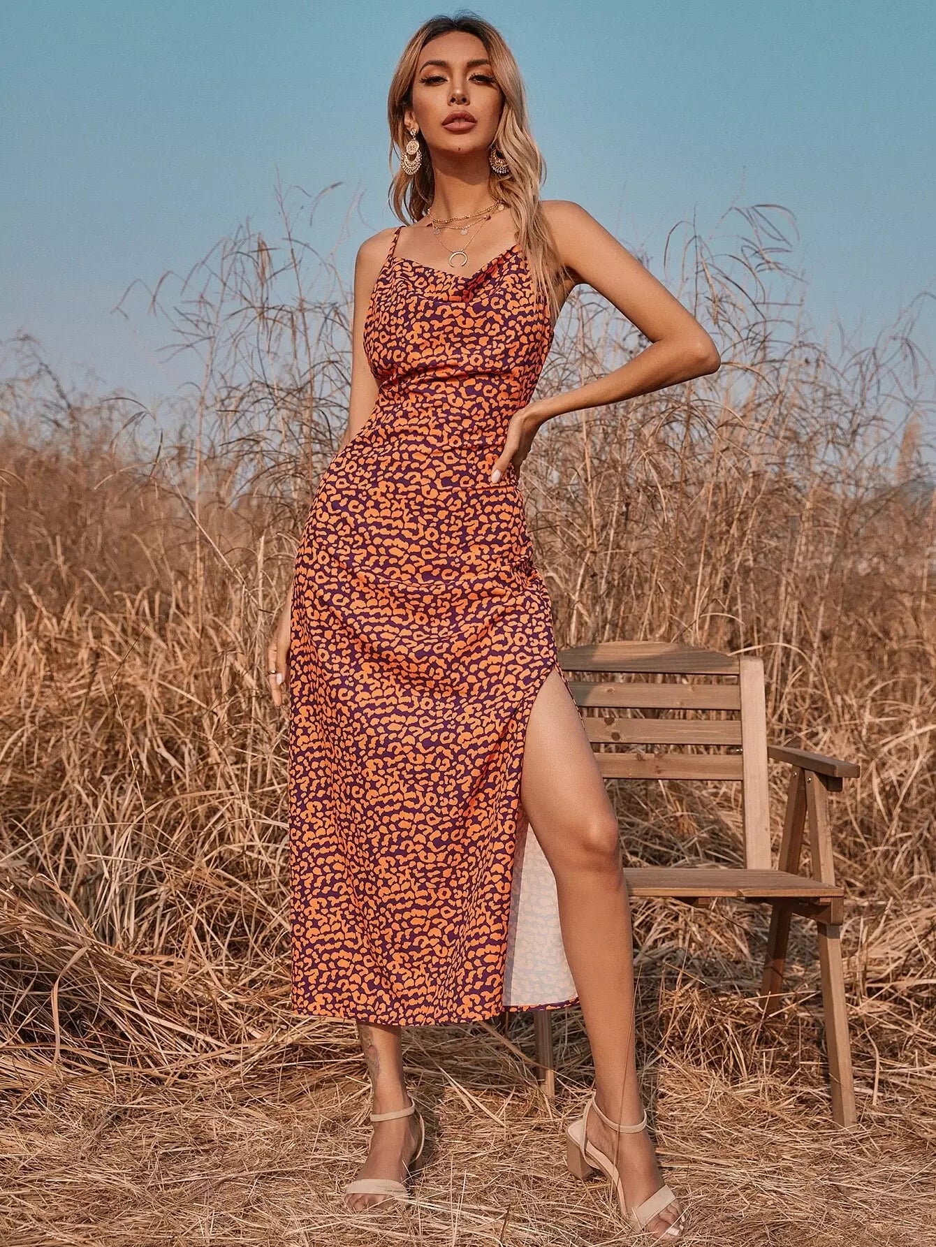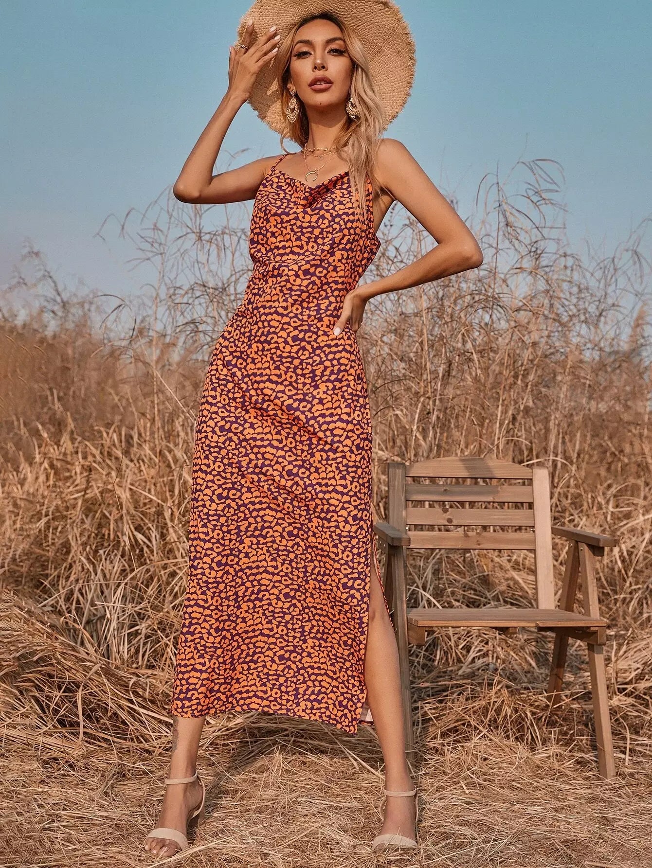 فستان كامي بفتحة أمامية منسدلة من الأمام ومفتوح من الفخذين