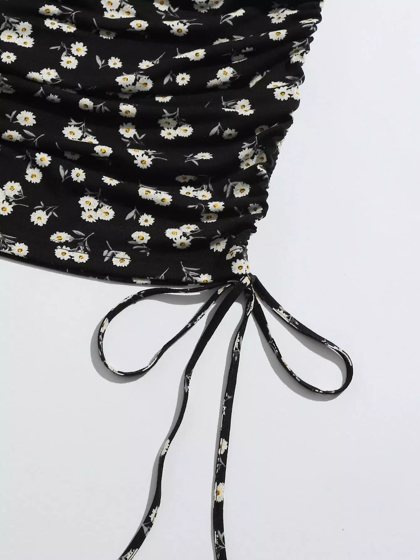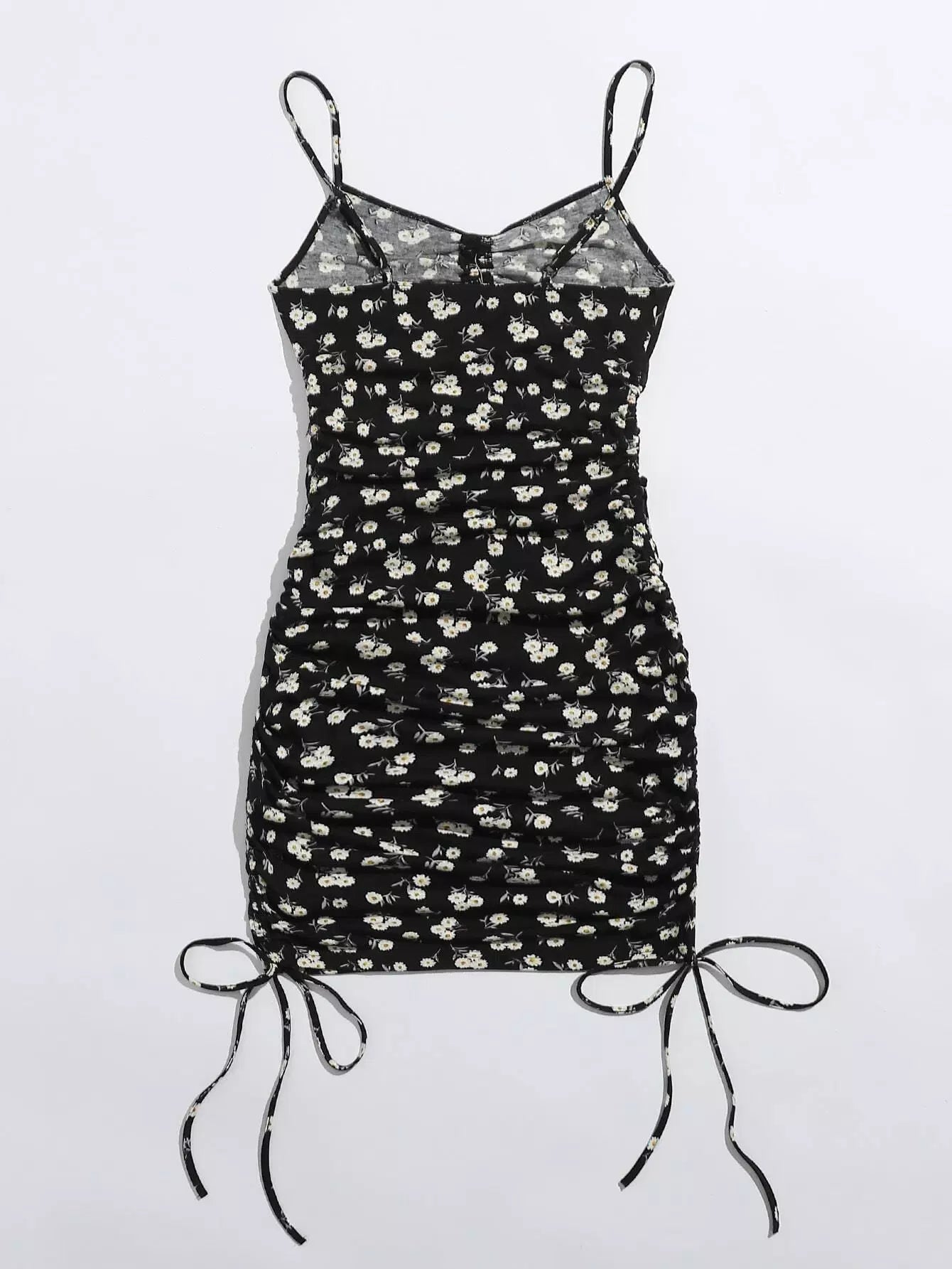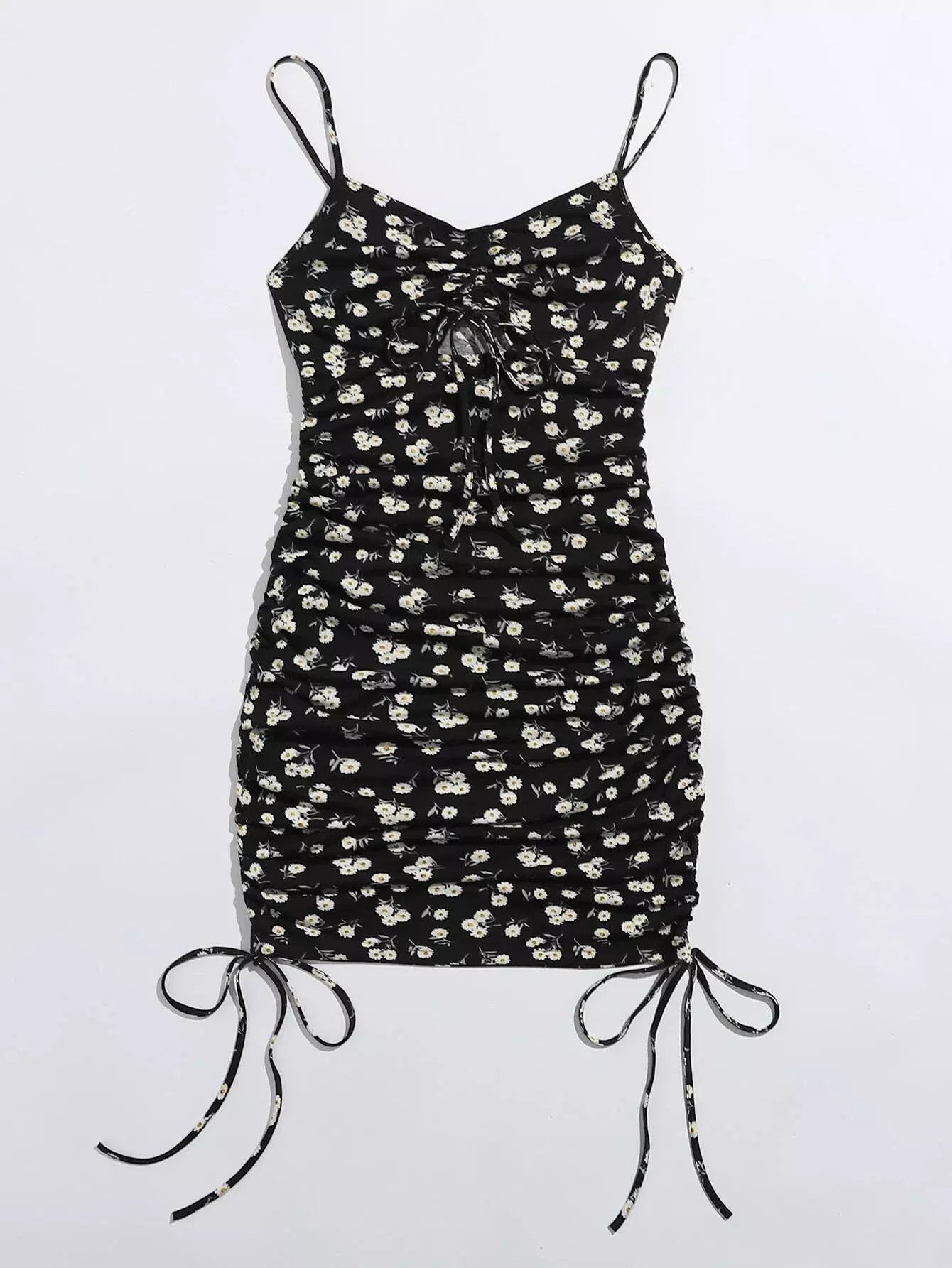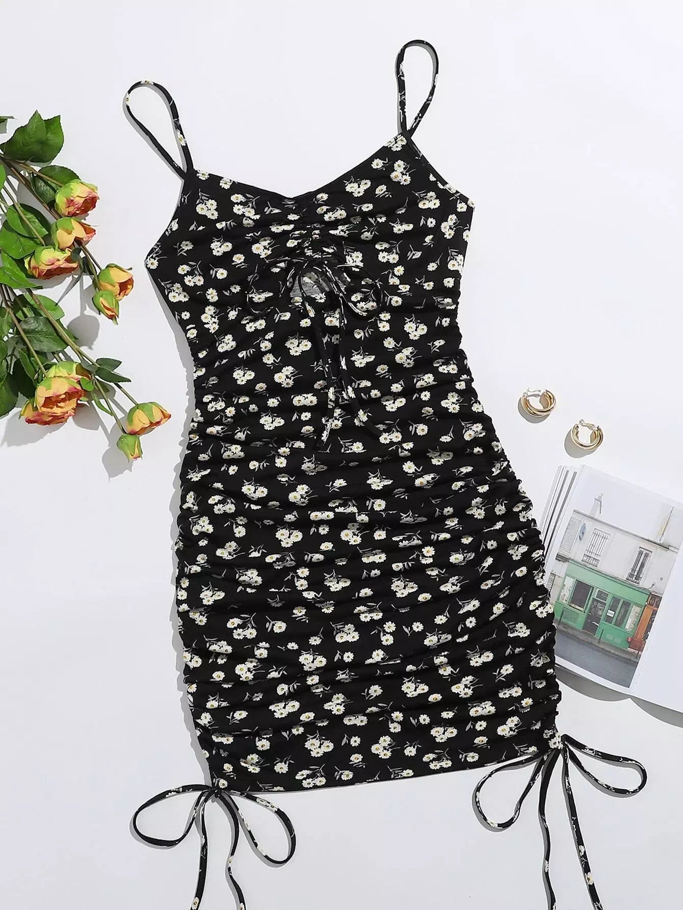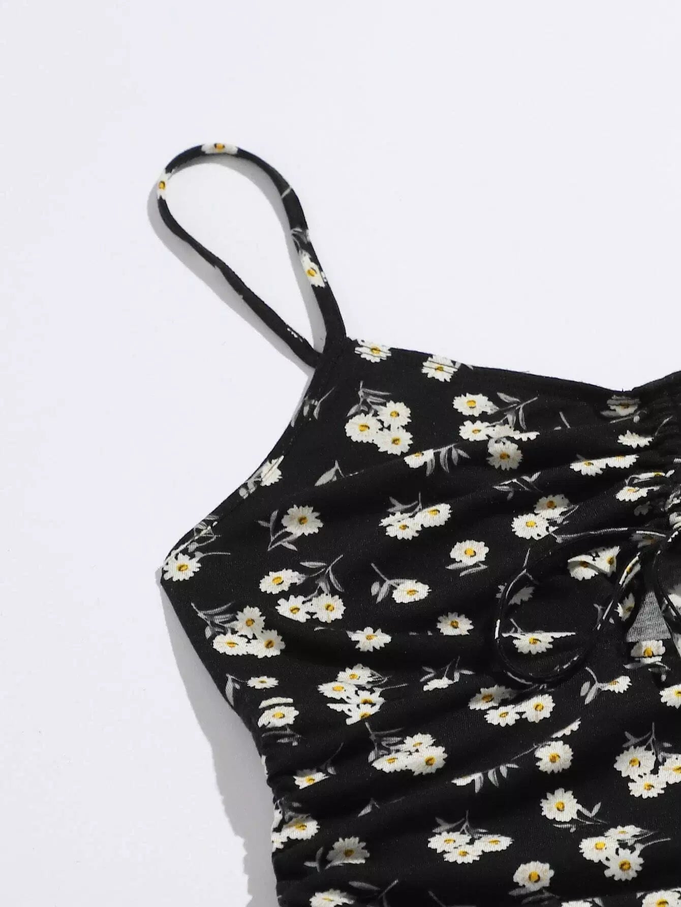 فستان مزين برباط بعقدة أمامية على شكل زهرة الأقحوان ذات العقدة الأمامية