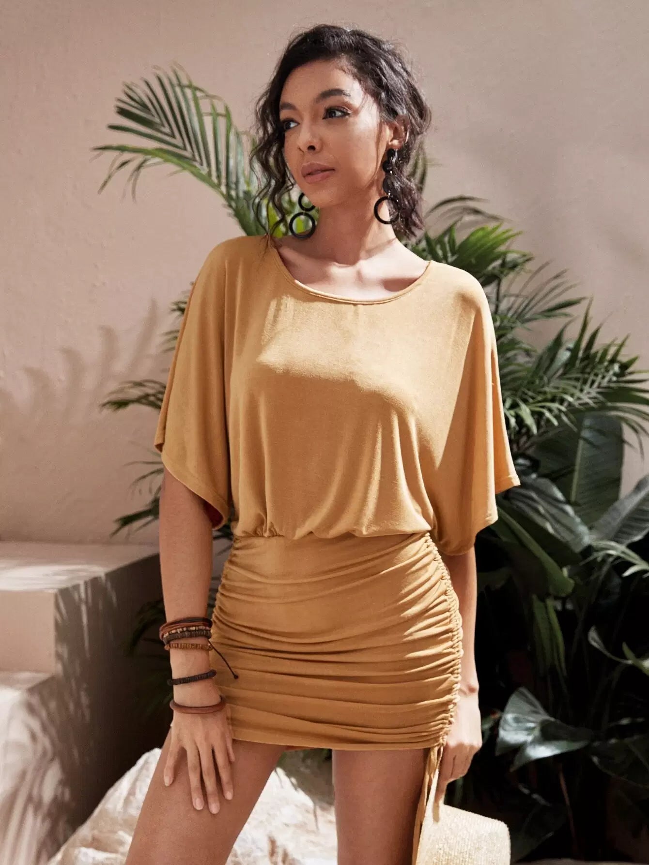 فستان بأربطة جانبية بأكمام باتوينغ