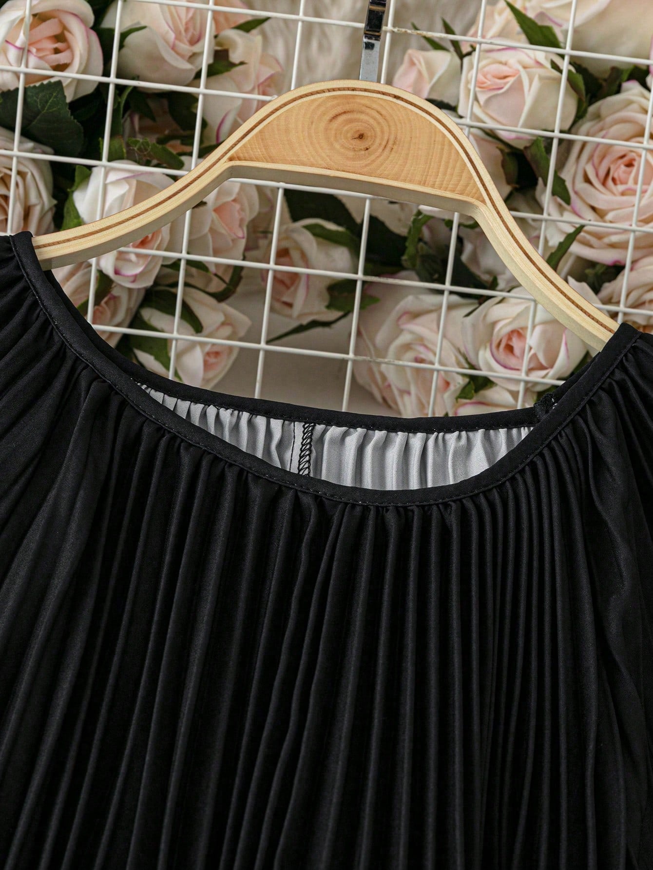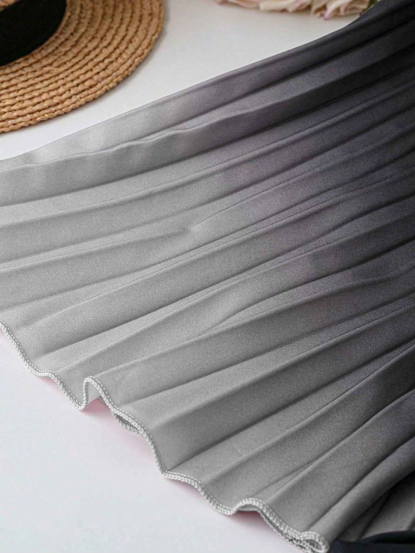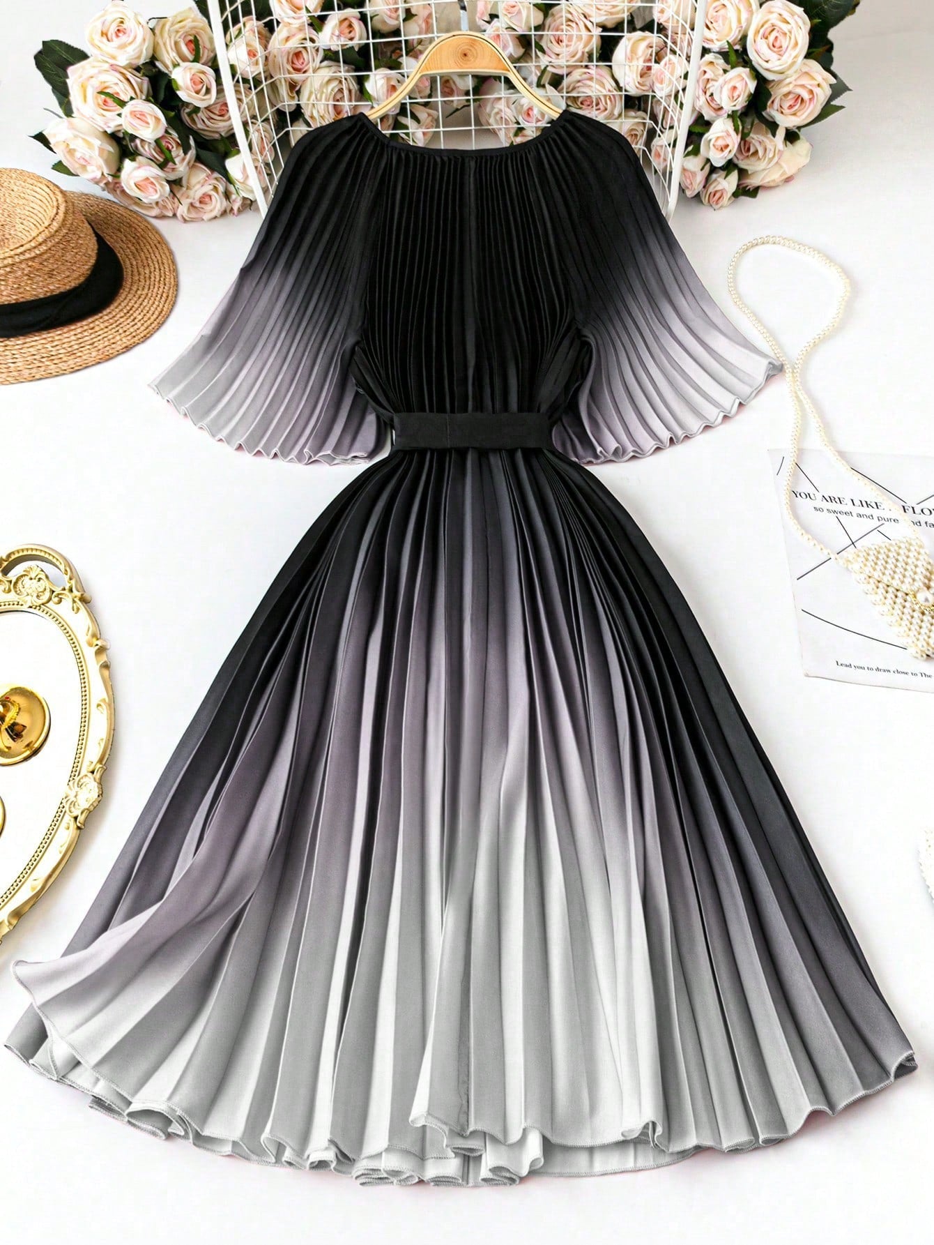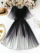 women DreamSkyne Court Retro Plus Size Women Crew Neck Short Sleeve Pleated Gradient Flared Elegant Midi Dress