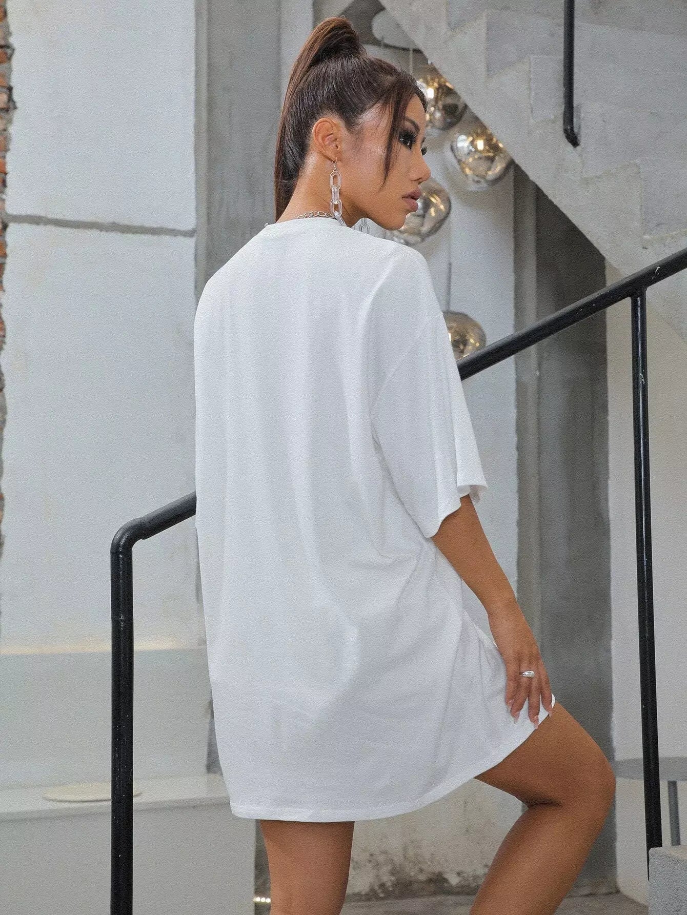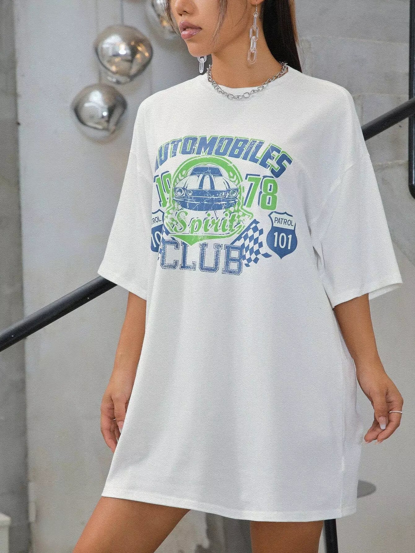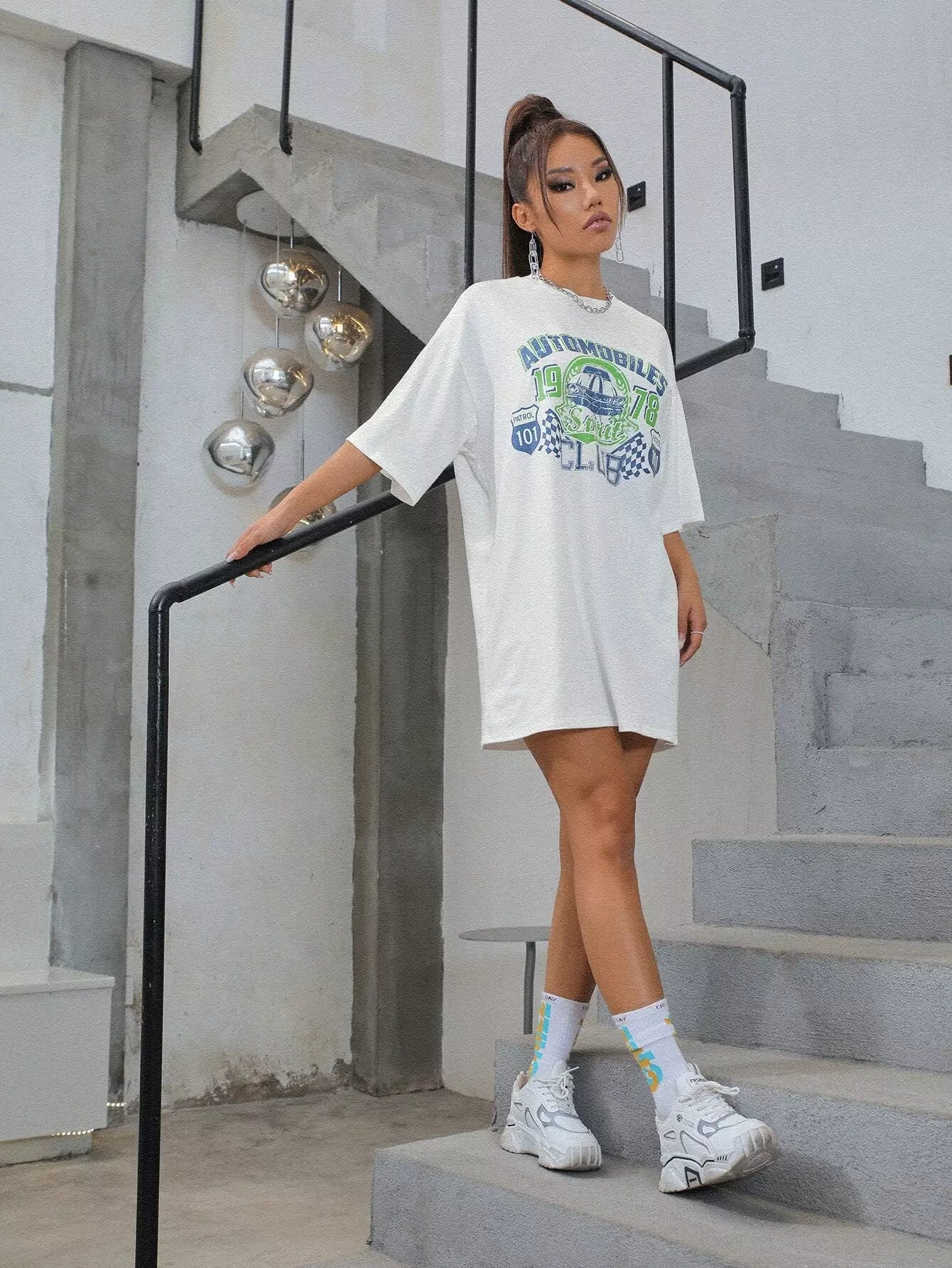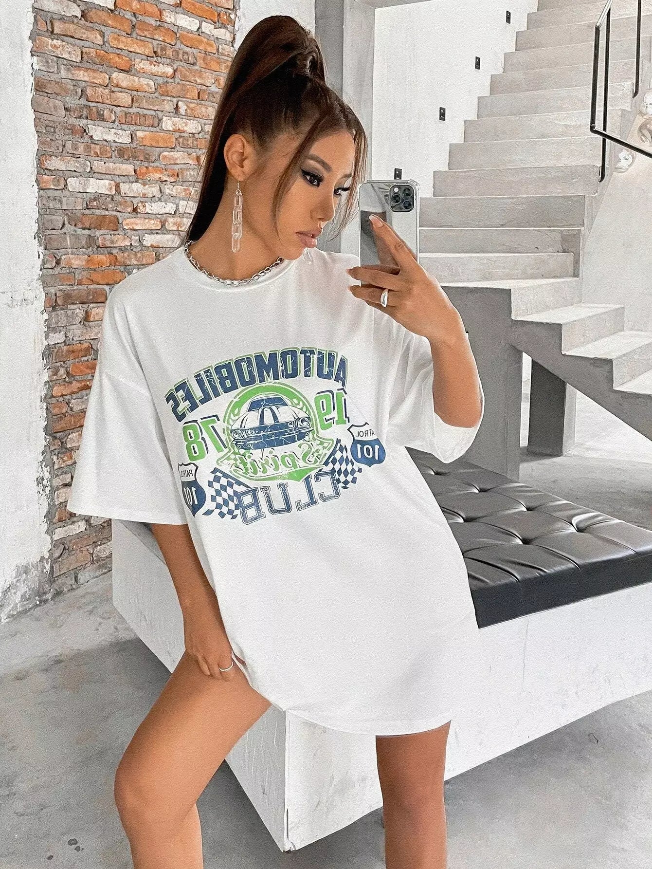 فستان منسدل الكتفين مطبوع عليه حروف وأعلام