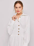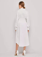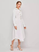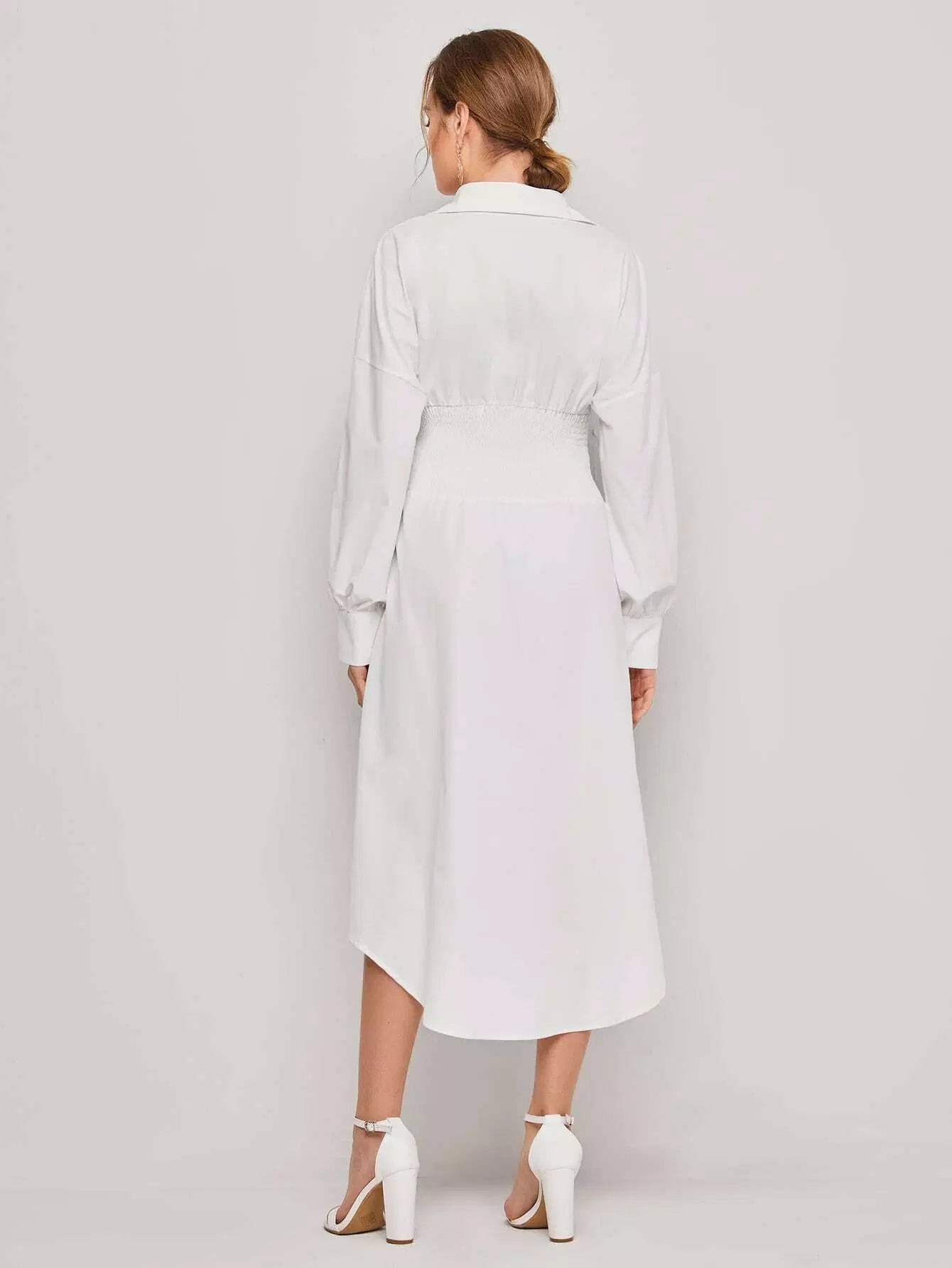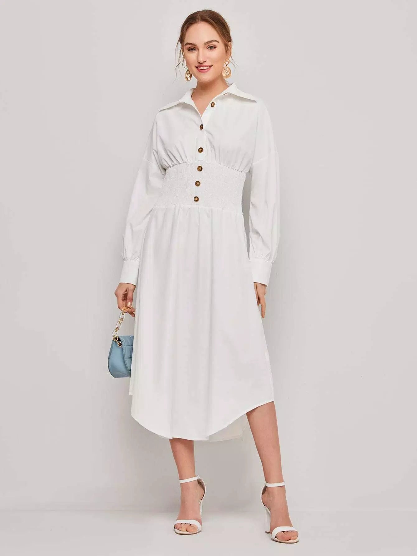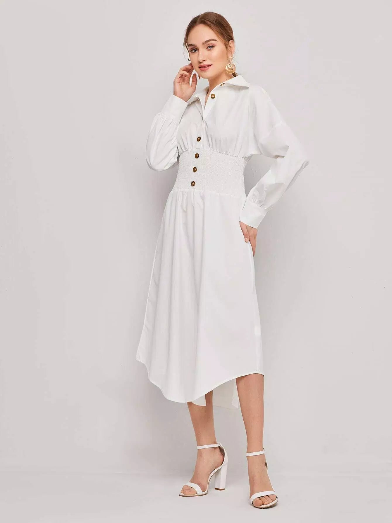 فستان قميص منسدل الكتفين بشيرت واسع الخصر بحافة هانكي