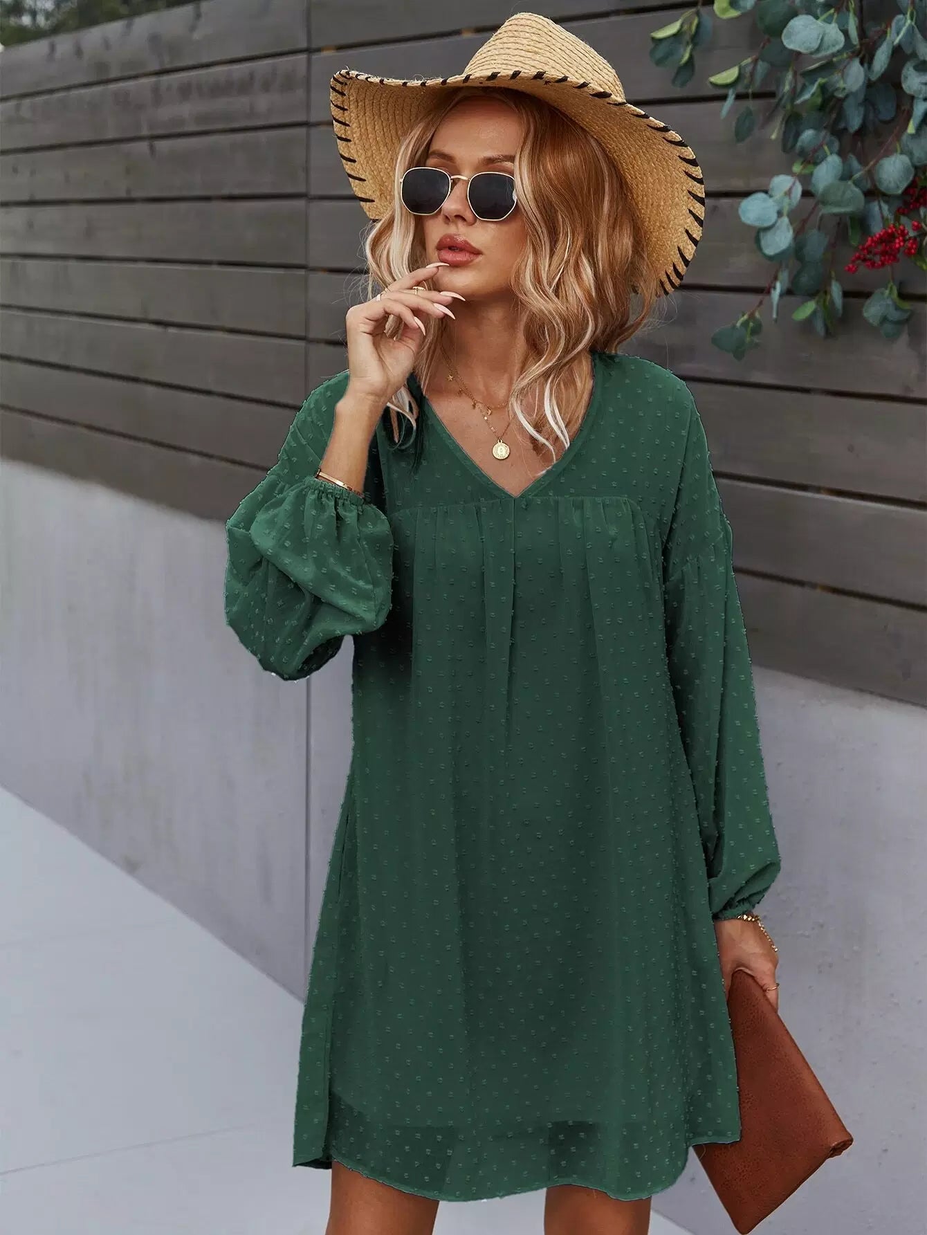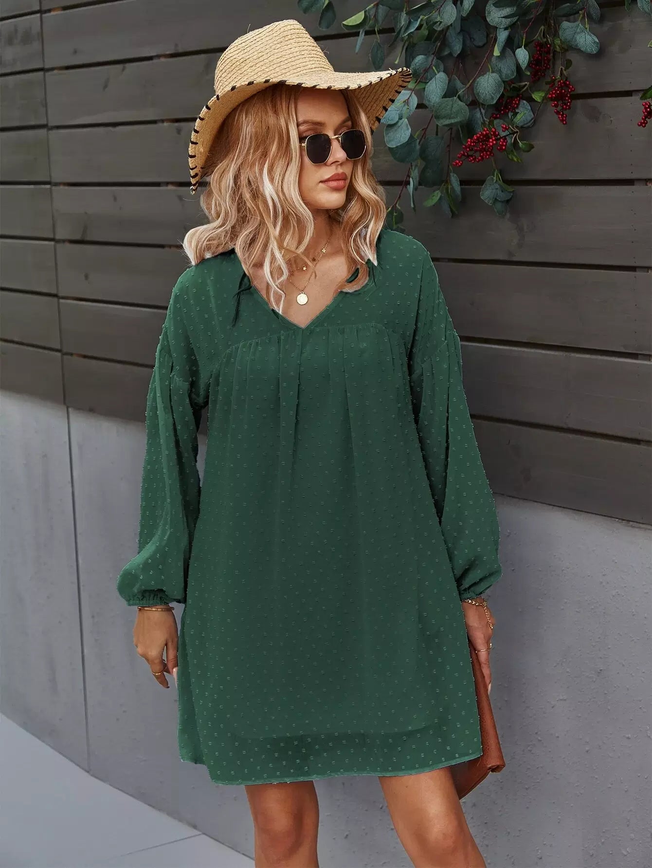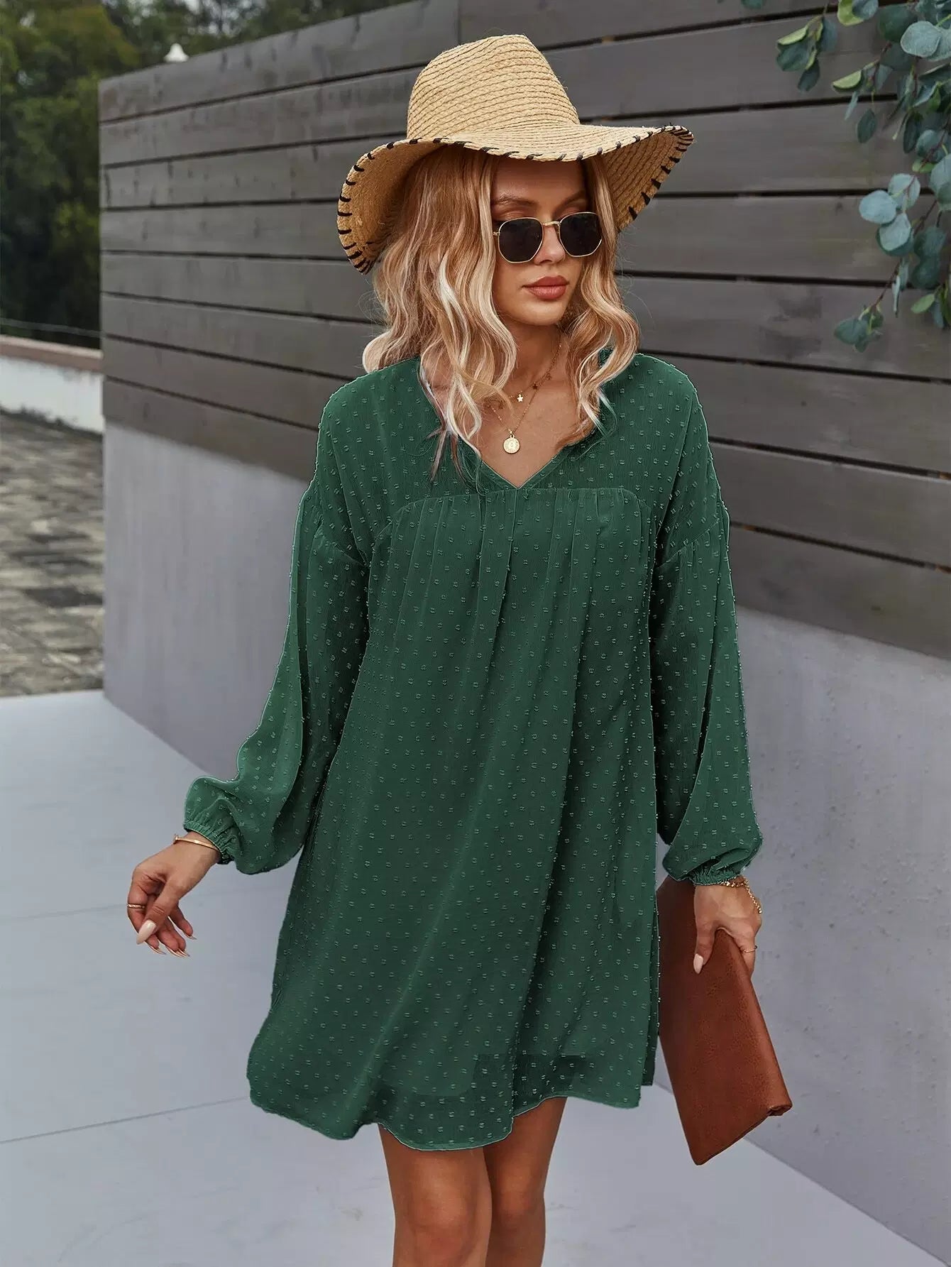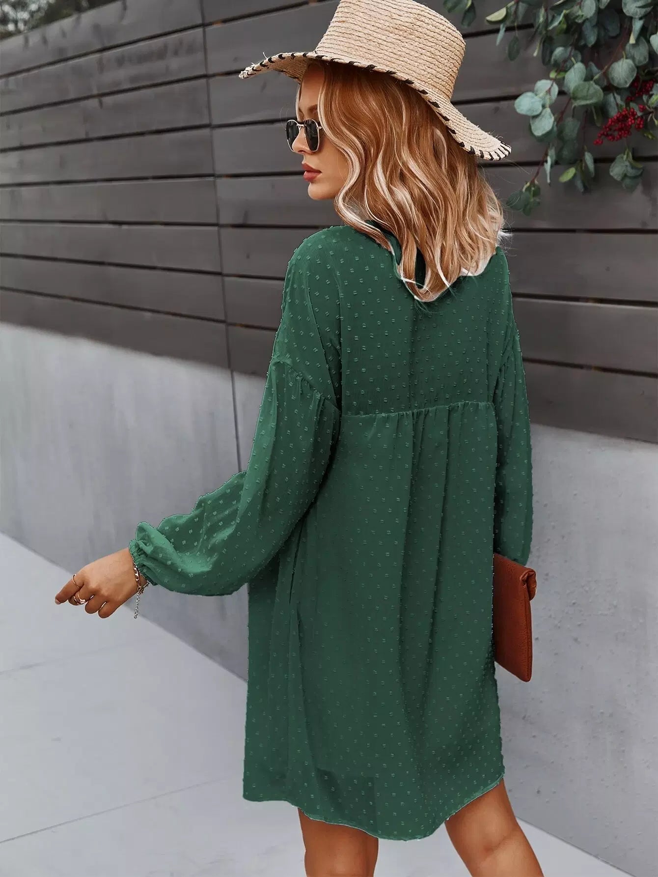 فستان سموك منسدل الكتفين منسدل الأكتاف منقّط سويسري