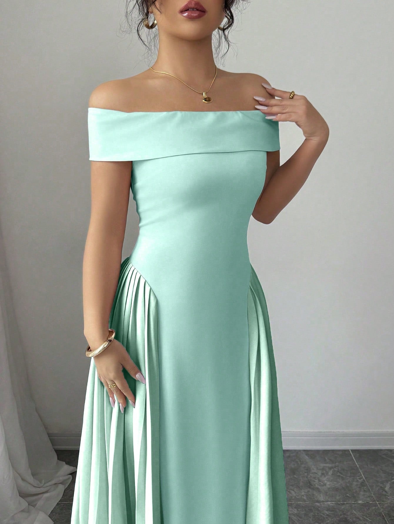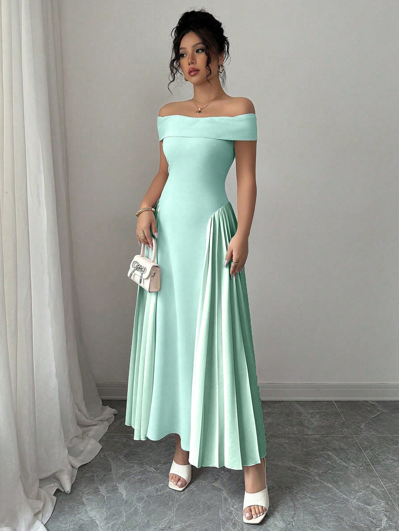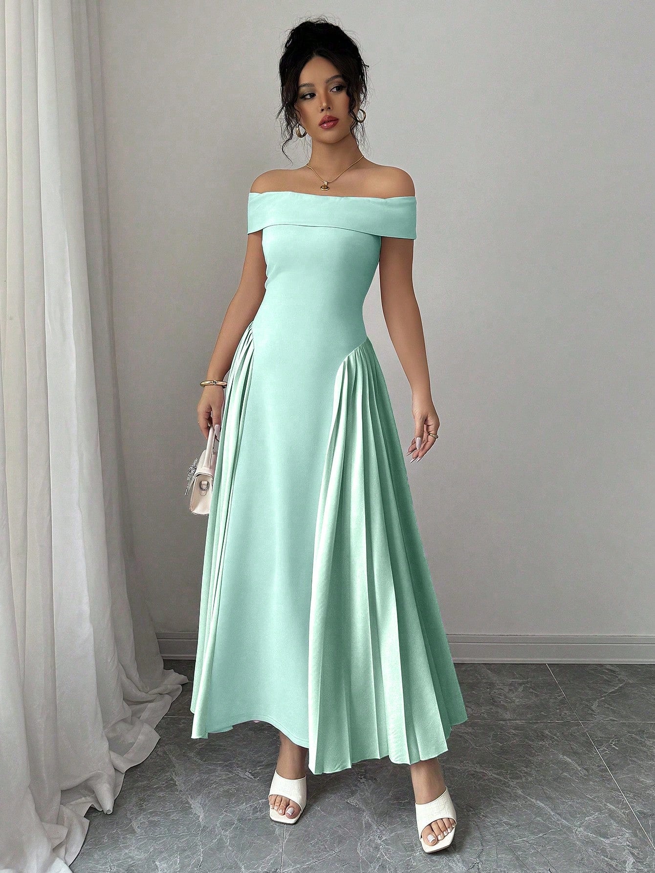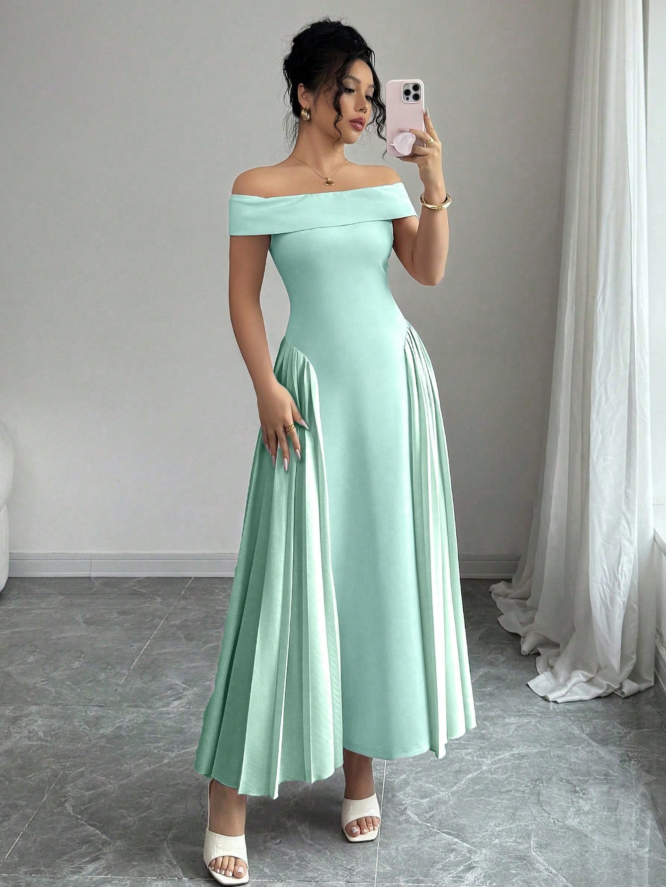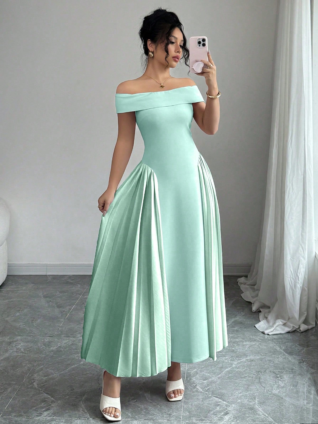 Elenzga Women's Elegant Off Shoulder Flared Dress For Spring/Summer