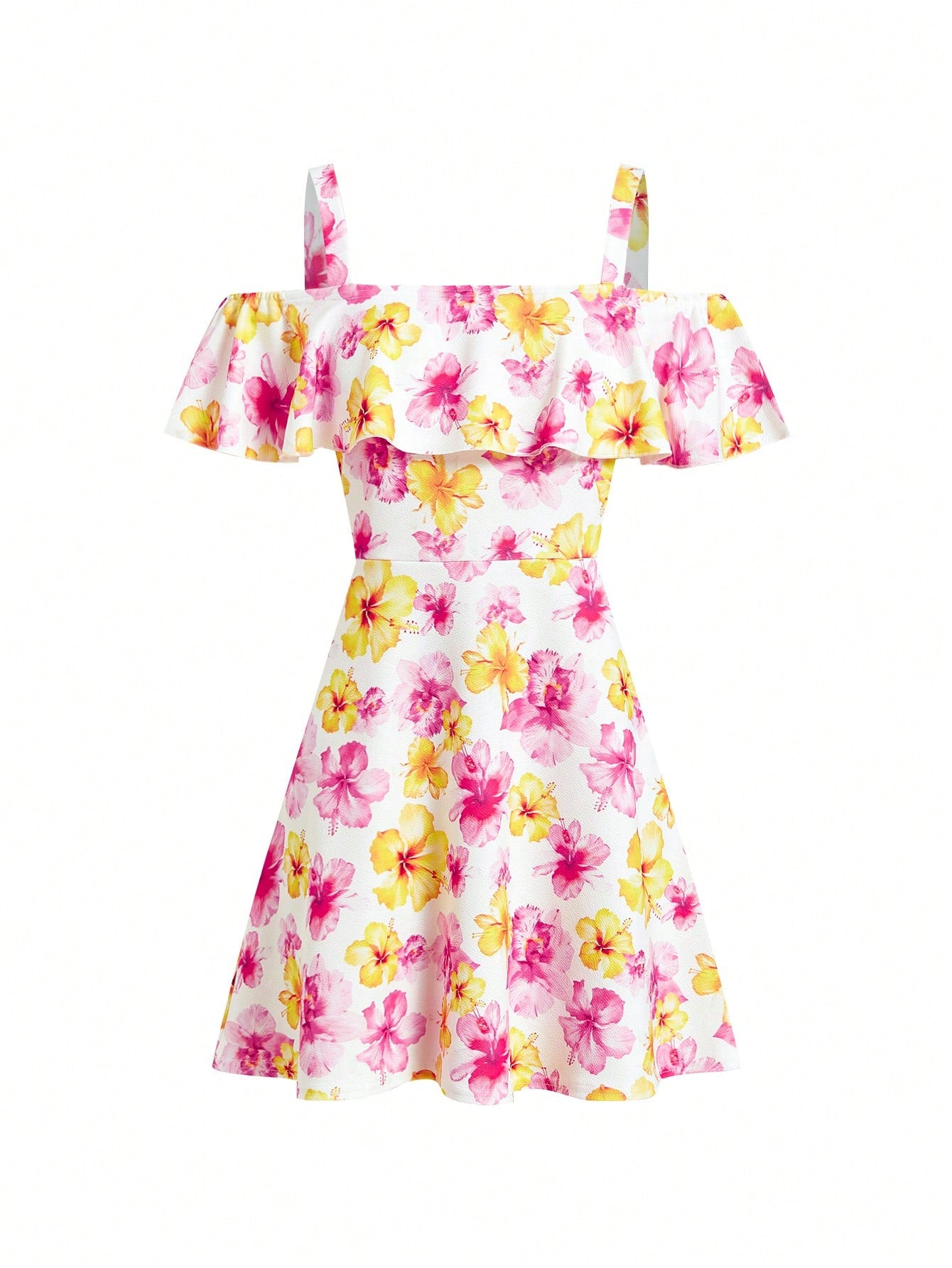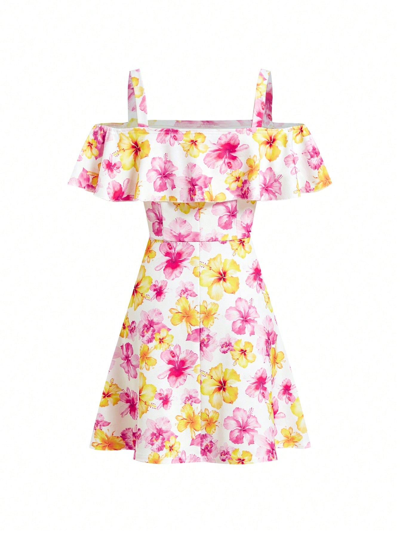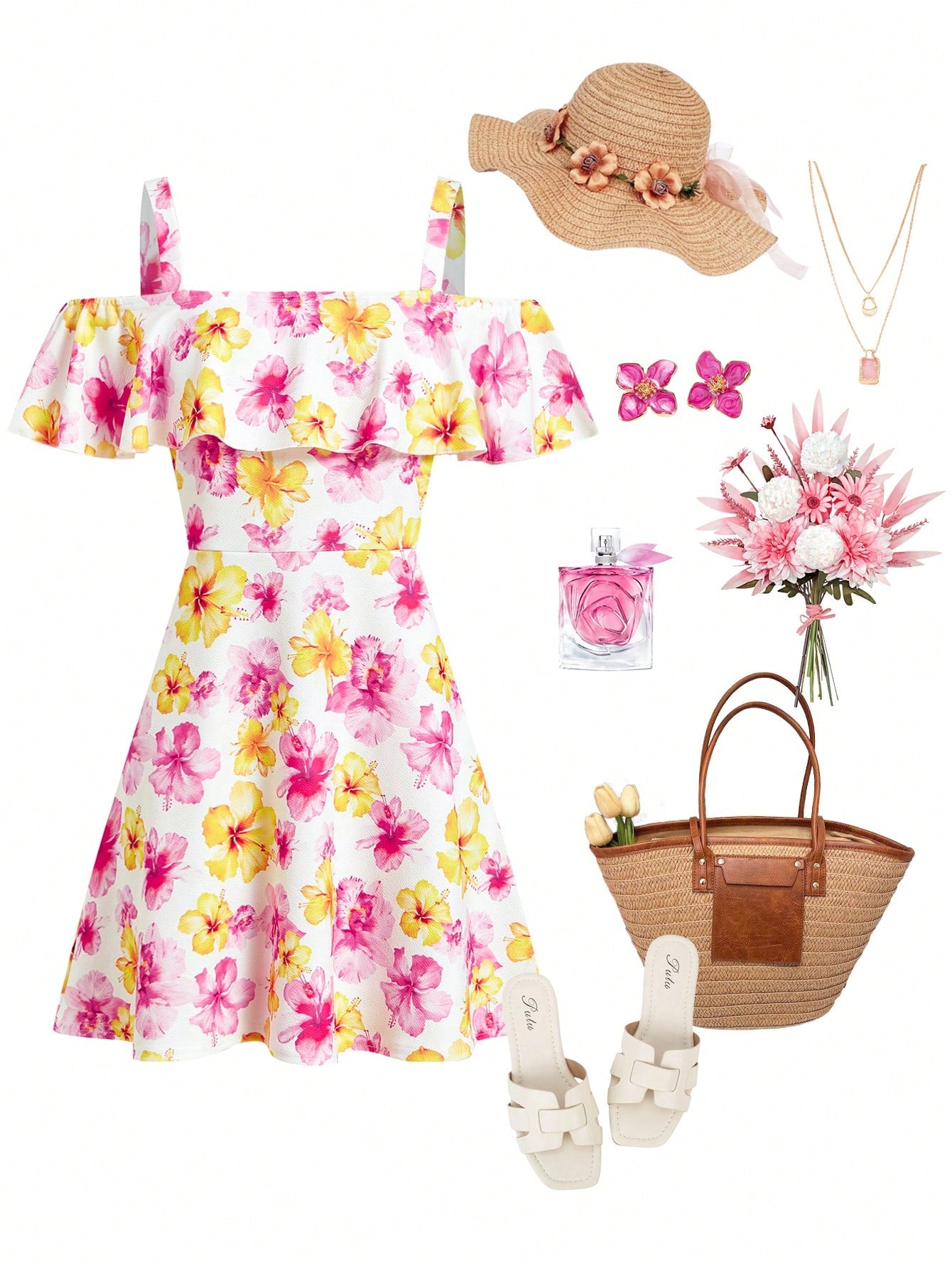 Ellevyn Women's Floral Print Off Shoulder Ruffle Hem A-Line Dress, Summer Outfit Women Boho