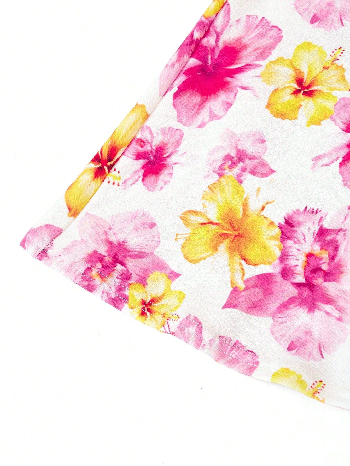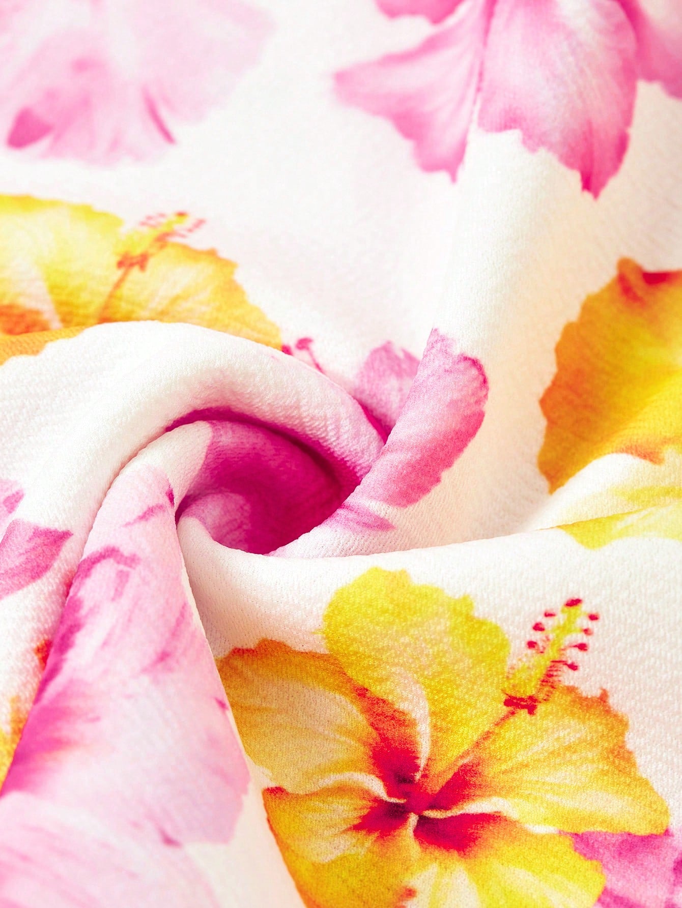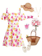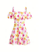 فستان Ellevyn النسائي ذو الطباعة الزهرية بدون أكتاف وحافة مكشكشة على شكل حرف A، ملابس صيفية نسائية بوهو