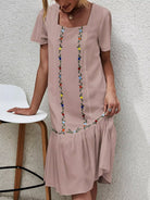 فستان بتفاصيل تطريز مع حافة مكشكشة
