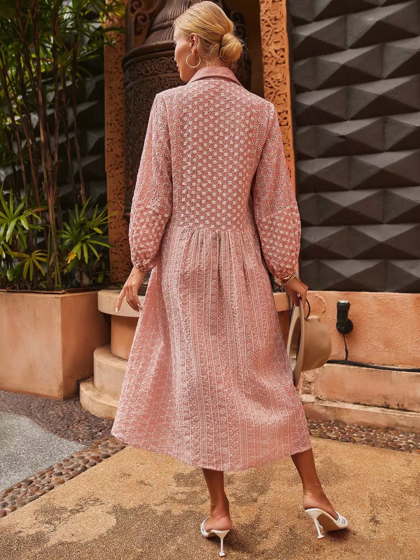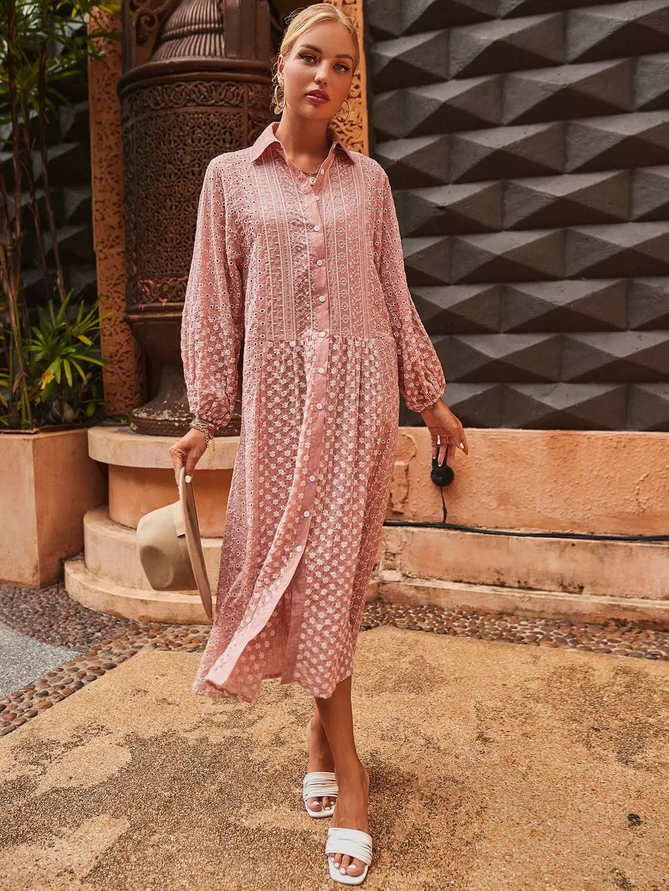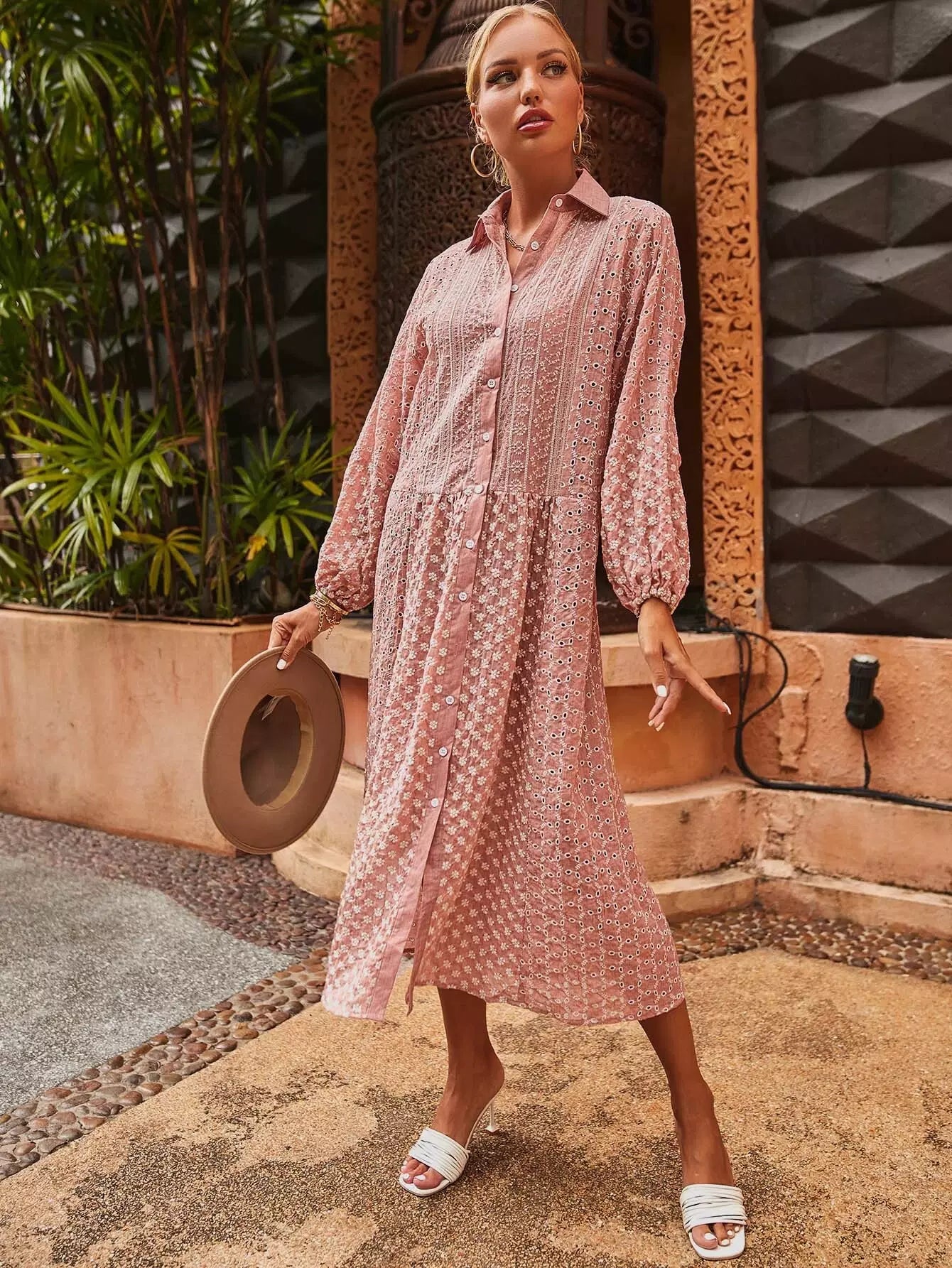 فستان قميص بأكمام مطرزة بتطريزات العيينة