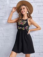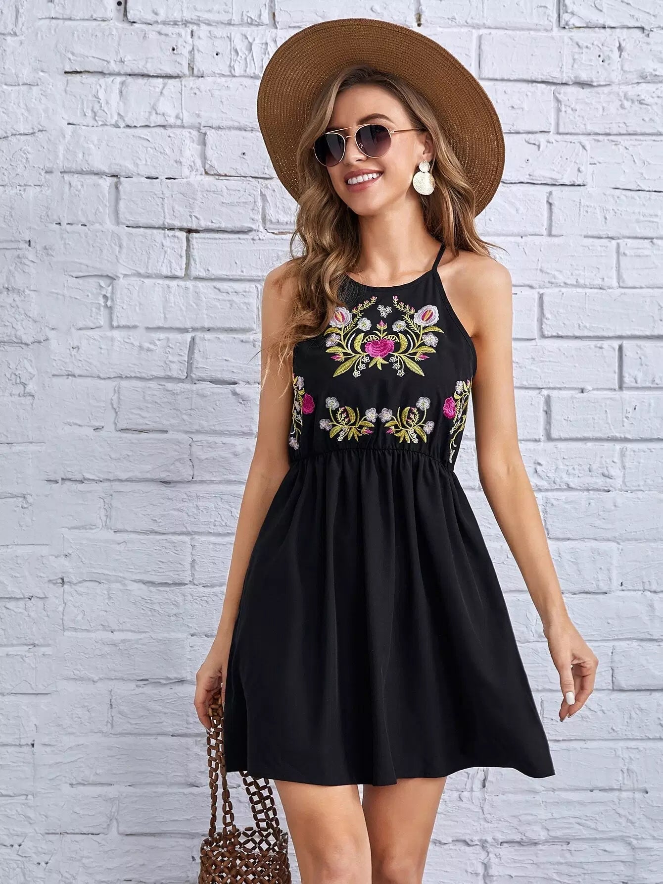 للنساء - فستان على شكل حرف A مطرز بالزهور