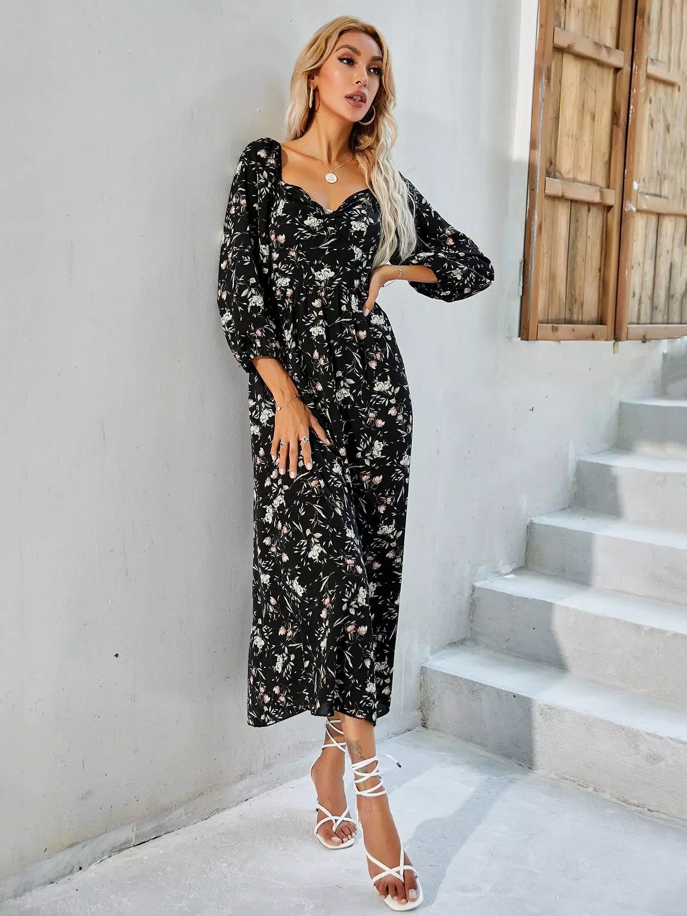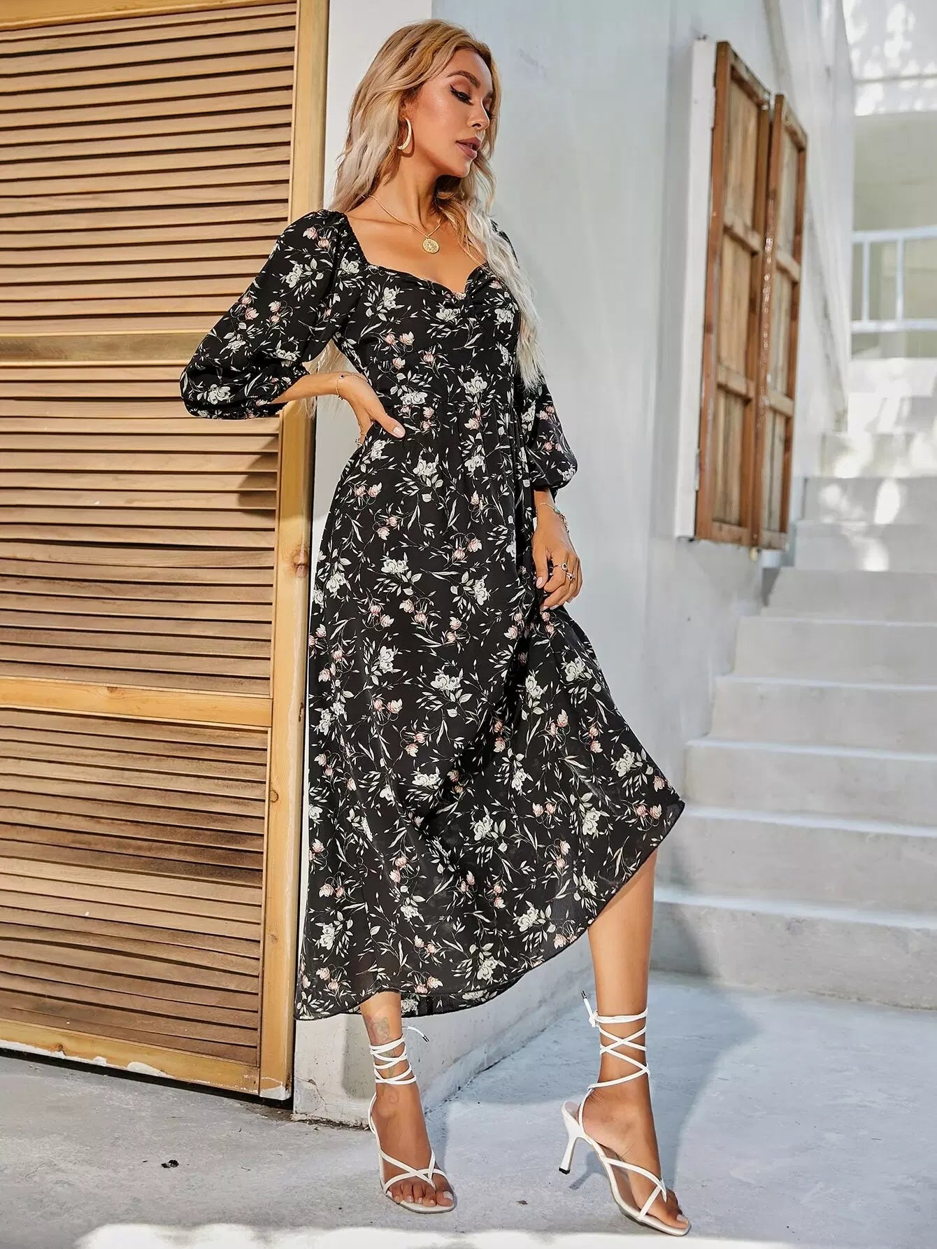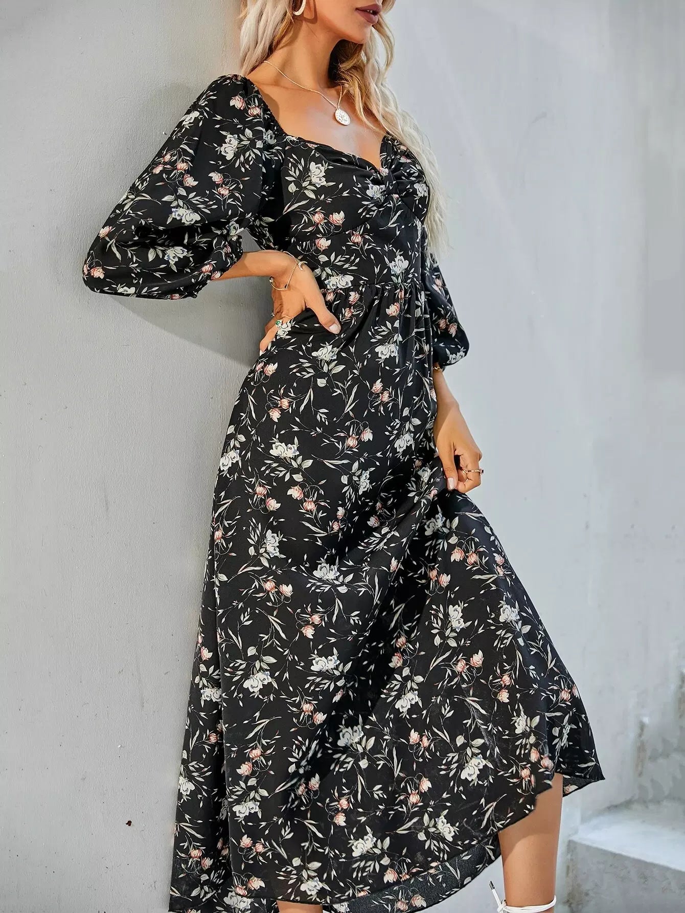 فستان بطبعة زهور على شكل حرف A
