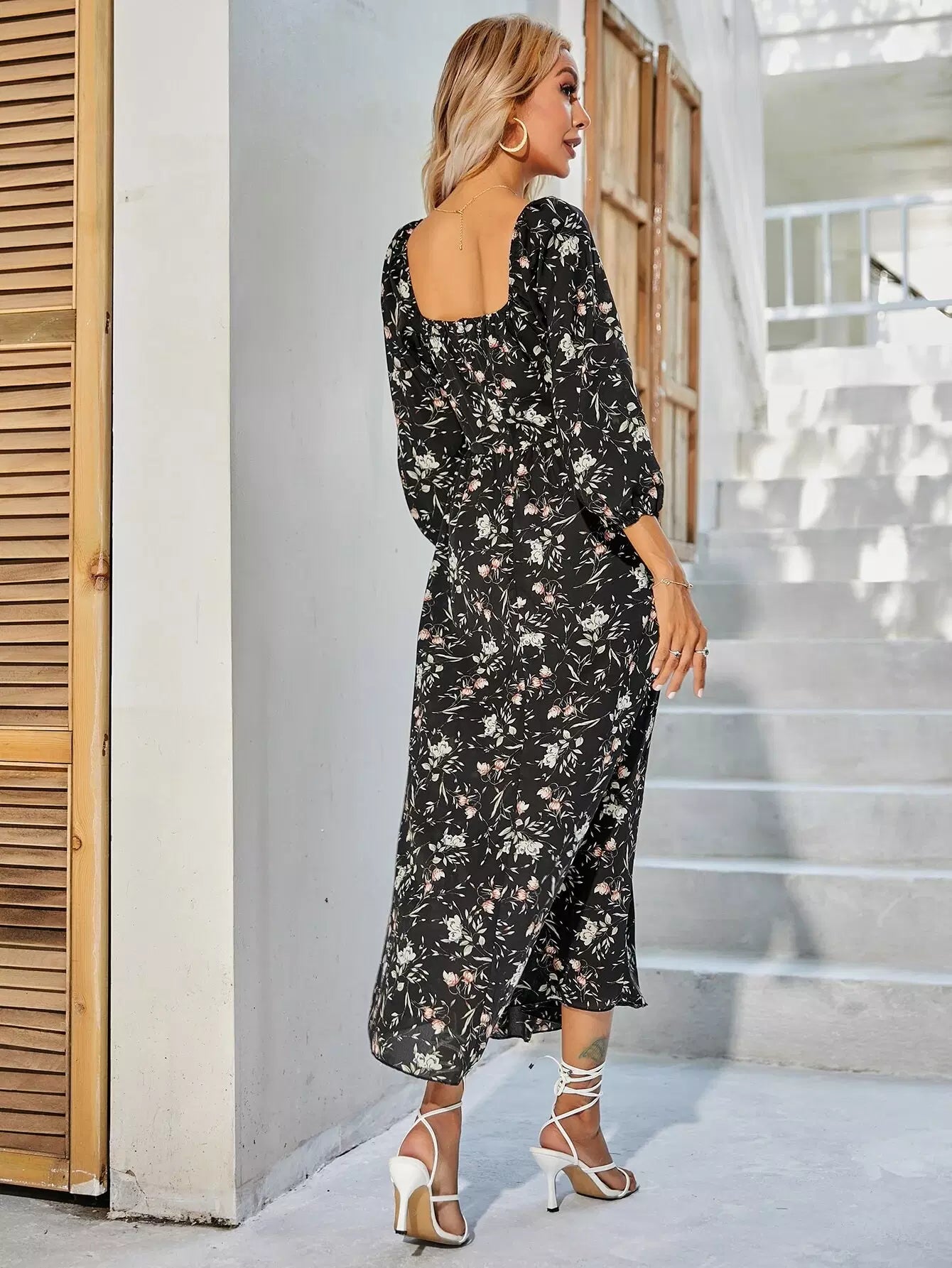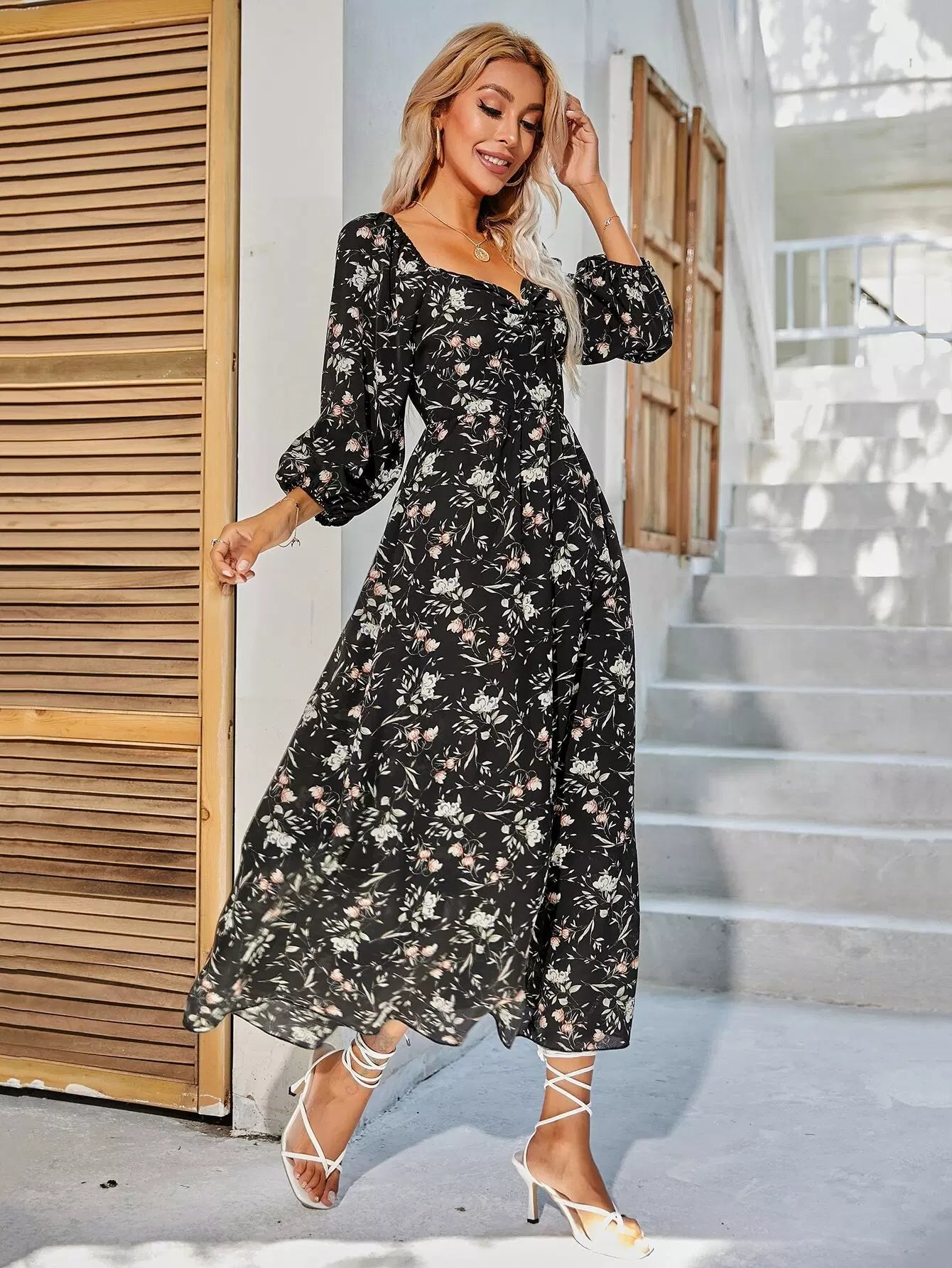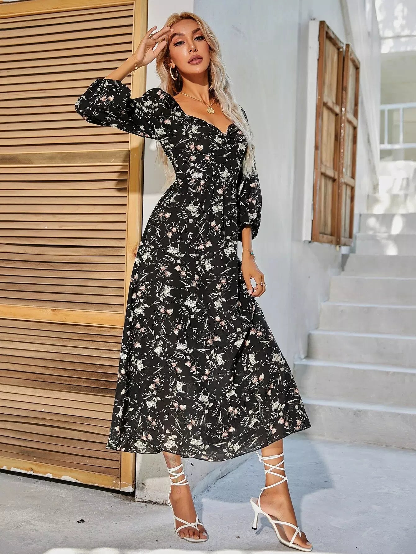 فستان بطبعة زهور على شكل حرف A