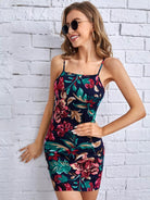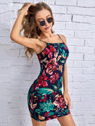 فستان ضيق بدون أكمام بطبعات الأزهار