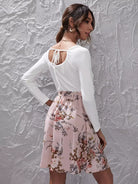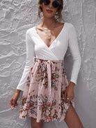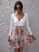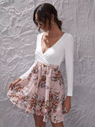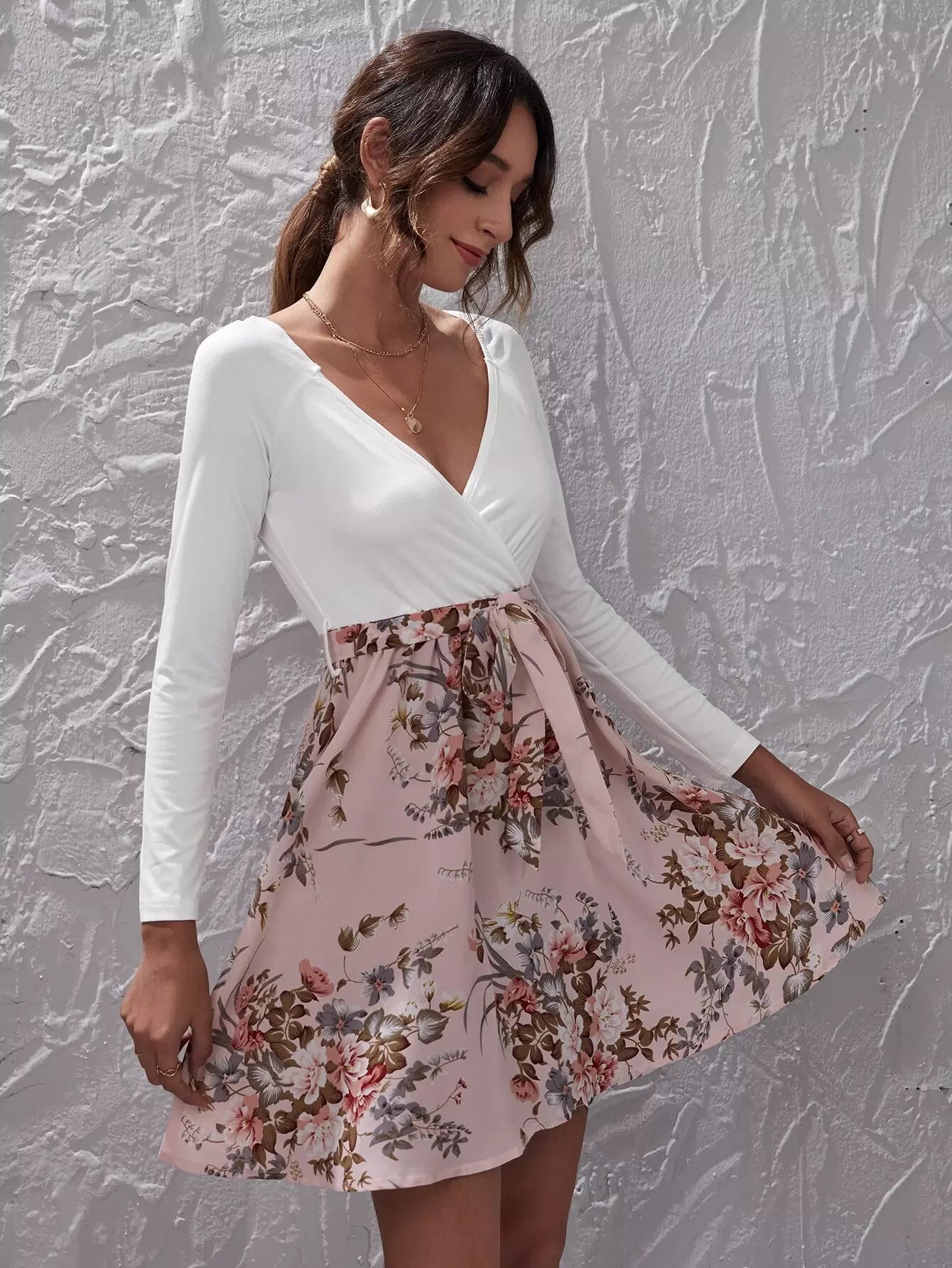 فستان بطبعات زهور ورباط خلفي بدون حزام