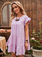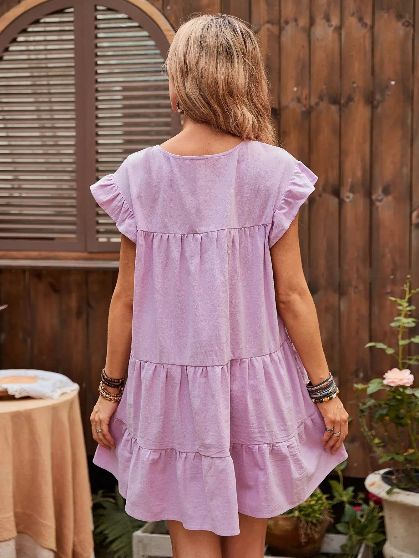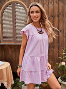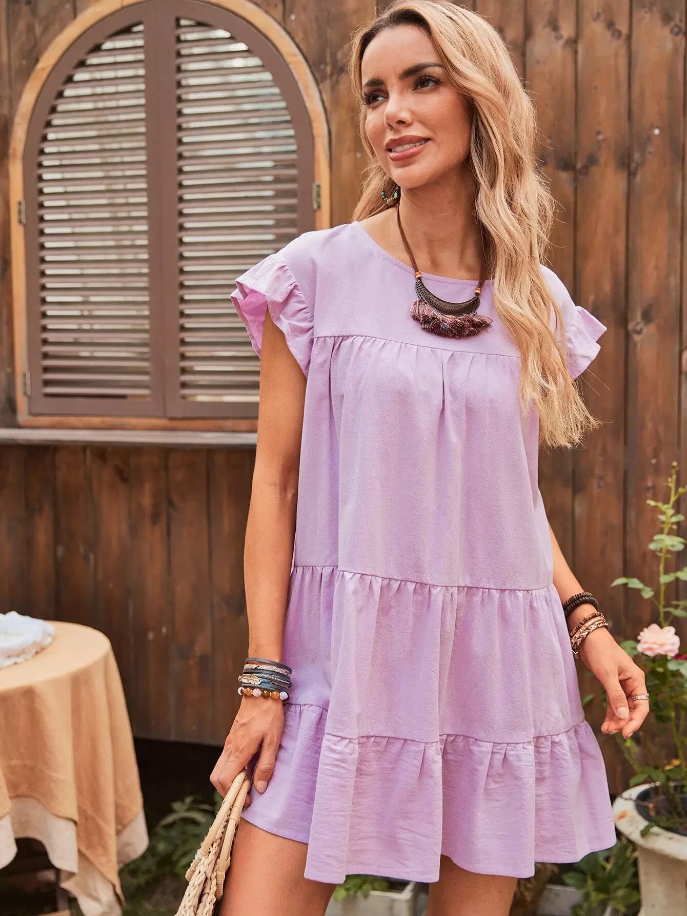 فستان بأكمام مكشكشة بأكمام مكشكشة بحافة مكشكشة