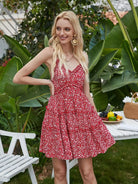 فستان كشكش بحواف كشكش بحواف متدرجة مزين بزخارف زهرية