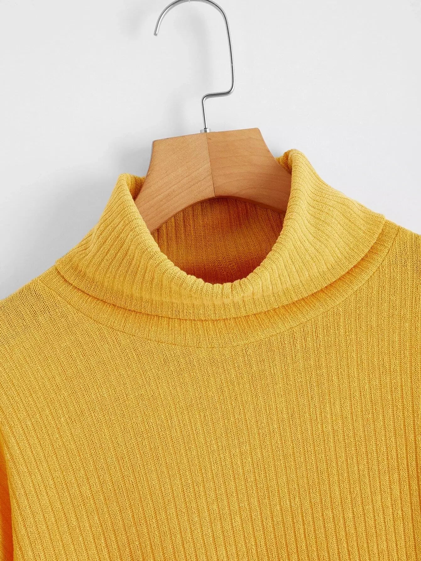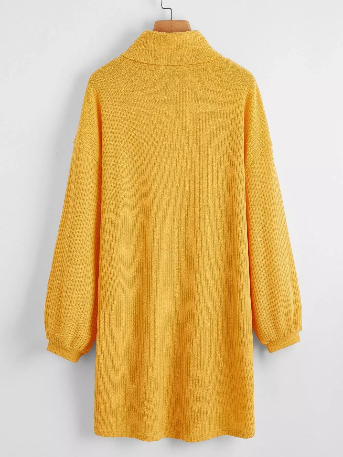 فستان برقبة قمعي منسدل الكتفين محبوك على شكل ضلع منسدل