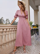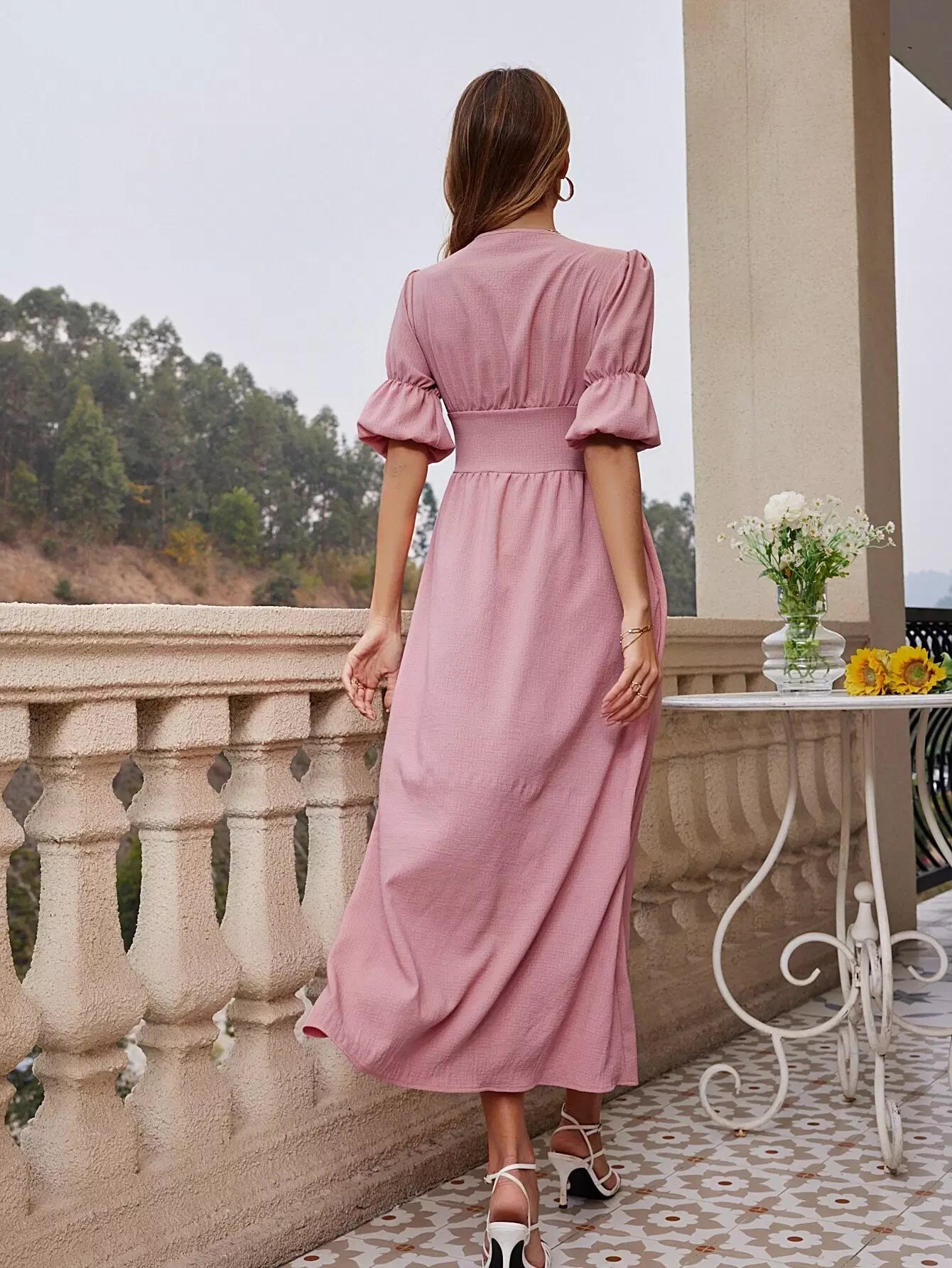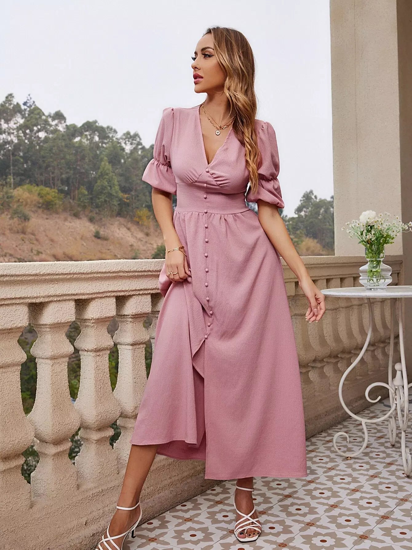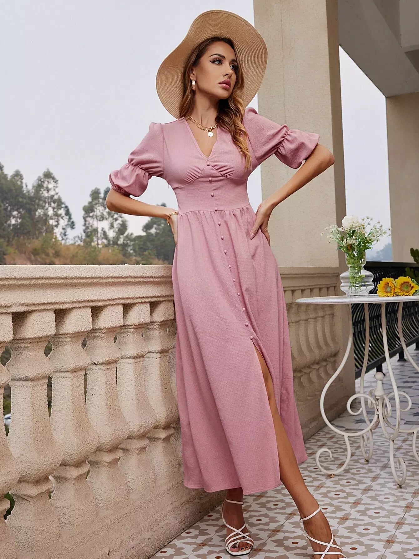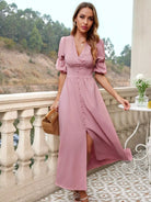 فستان بأكمام مكشوف الأكمام مقسم الفخذين