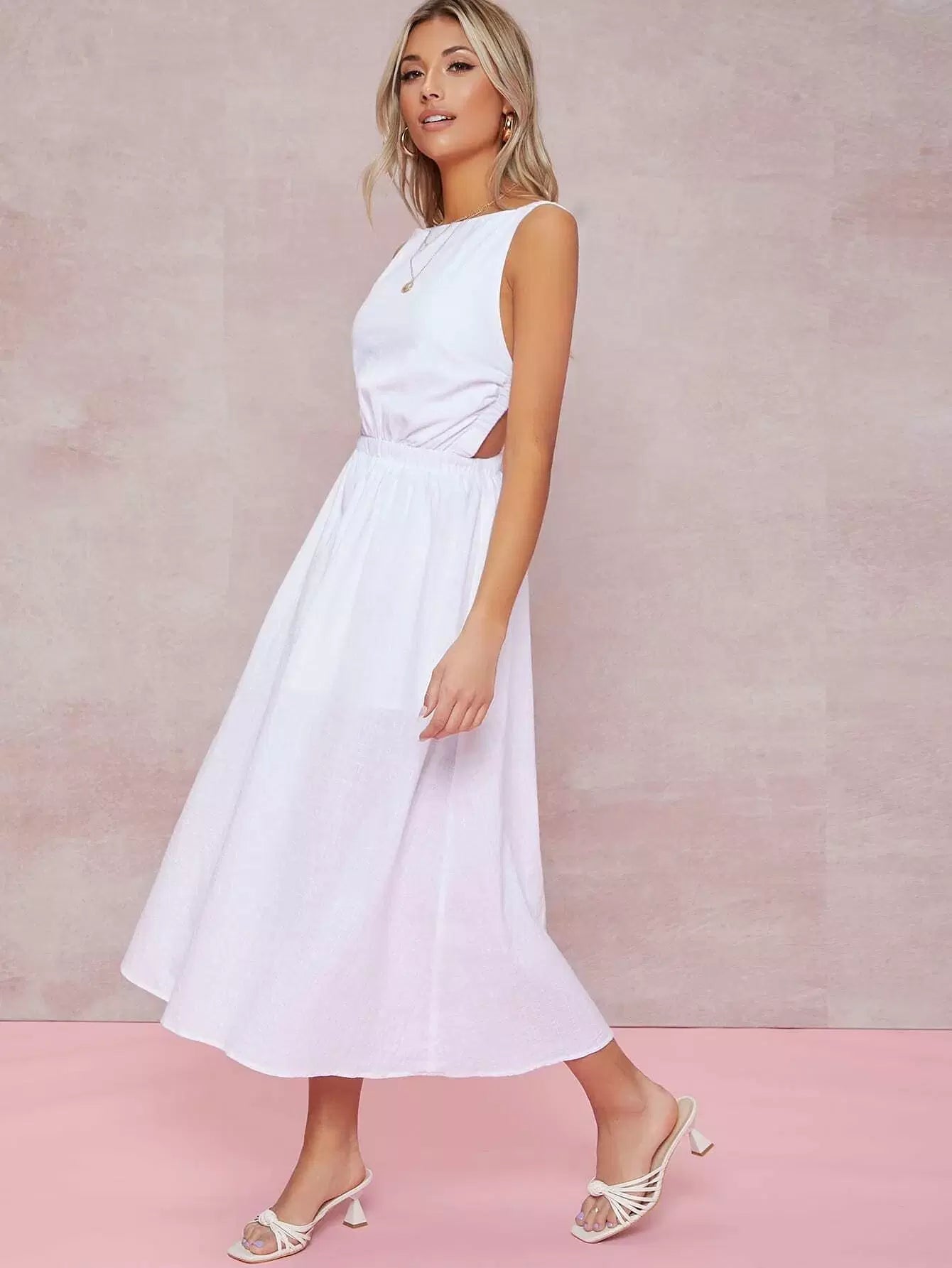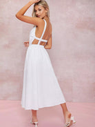 فستان ماكسي شاش مفتوح الظهر بدون أكمام بدون أكمام