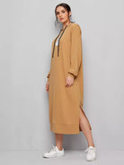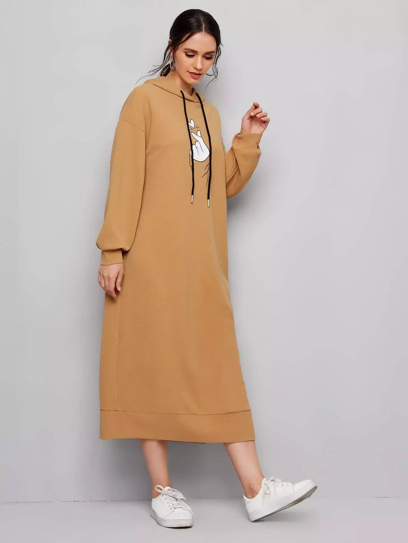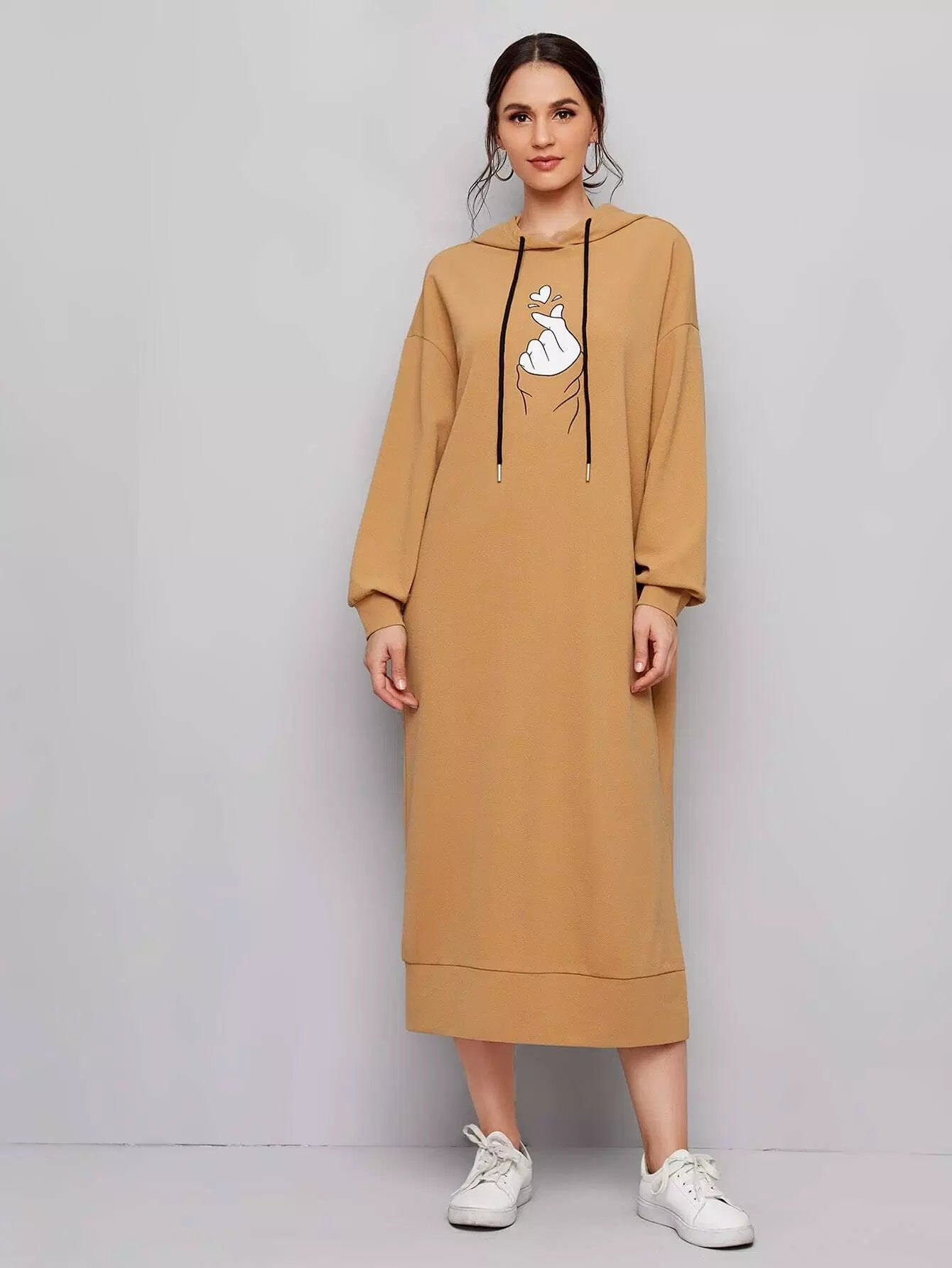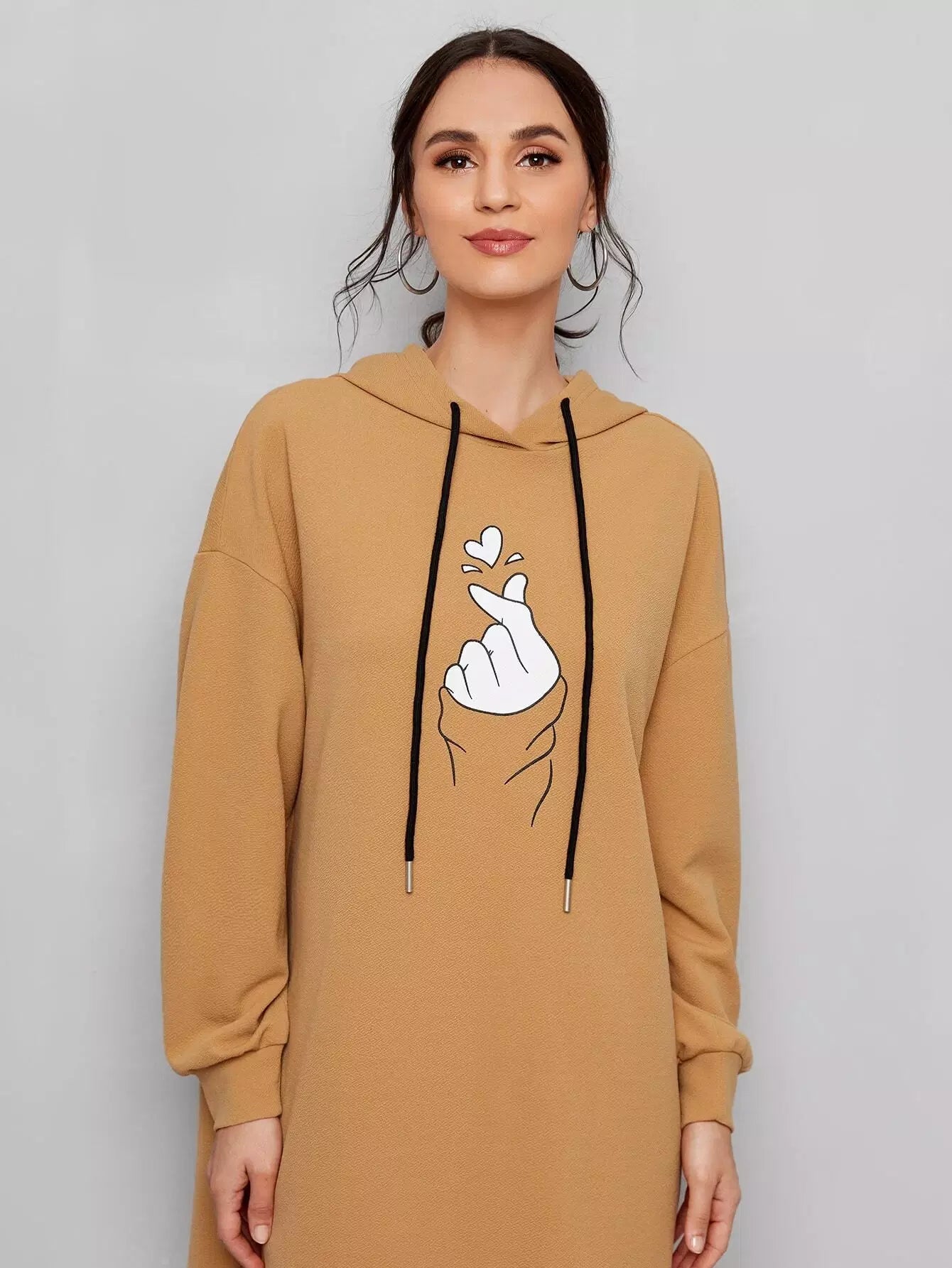 فستان بقلنسوة برباط جرافيك بغطاء رأس جرافيك من جستشر