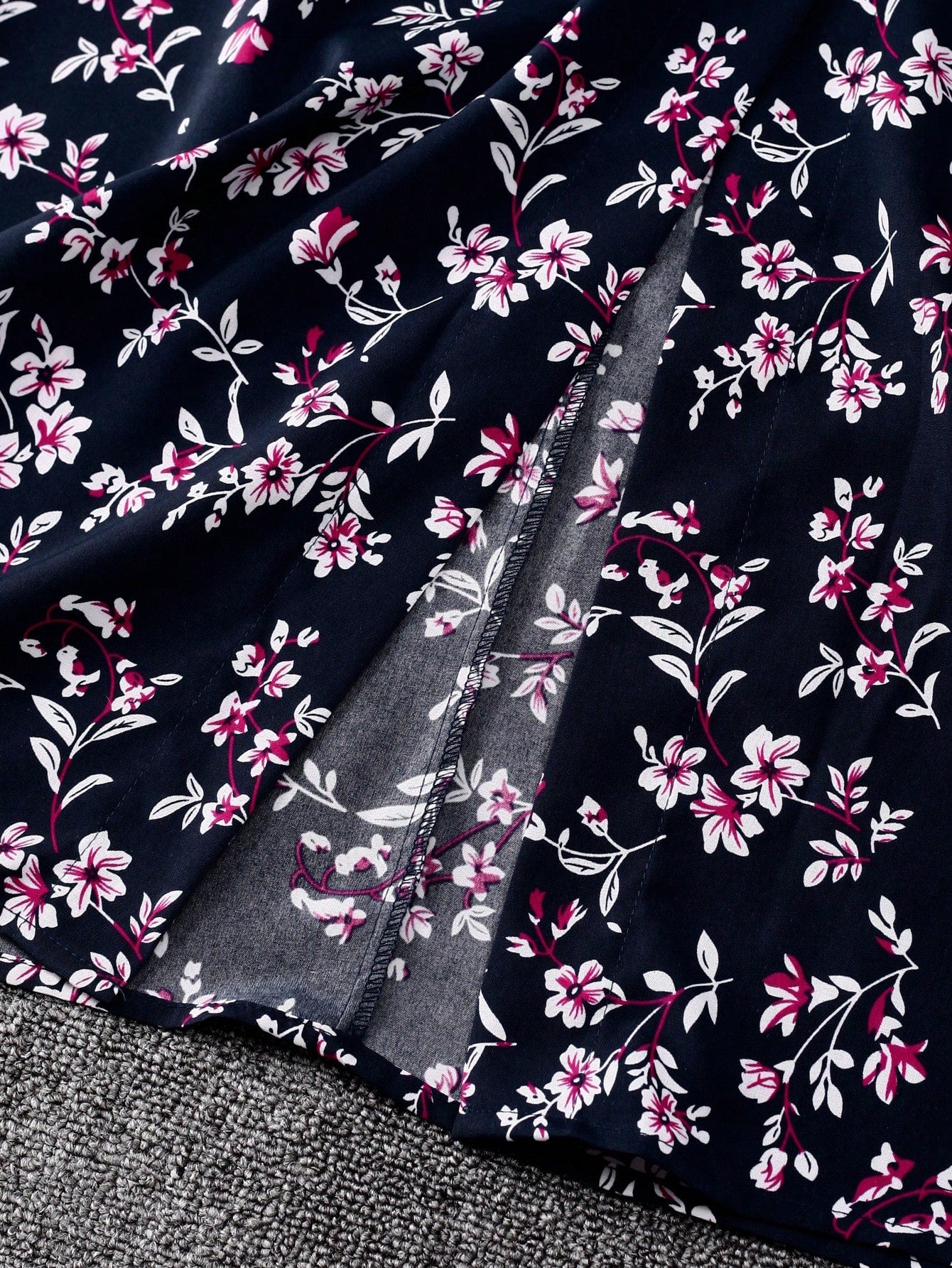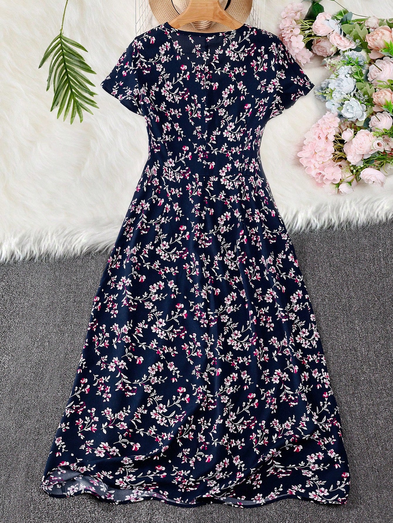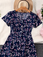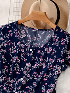 فستان GlowEve متوسط الطول مزين بنقشة زهور صغيرة وأزرار أمامية