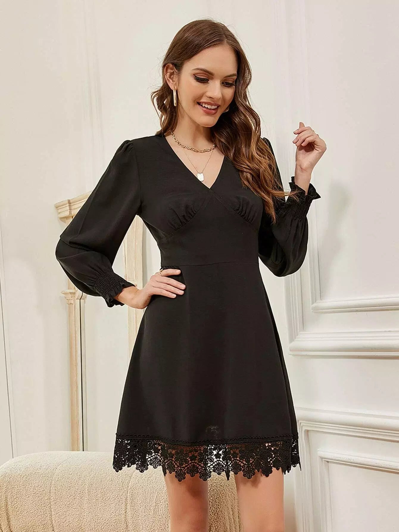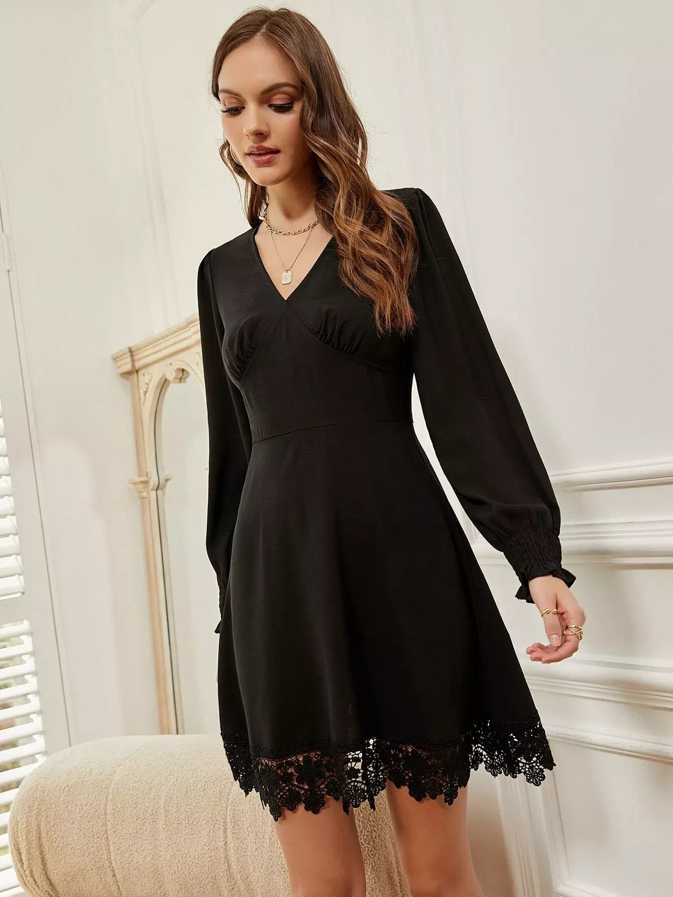 فستان بحاشية من الدانتيل المخرّم المخرّم من الدانتيل المخرّم