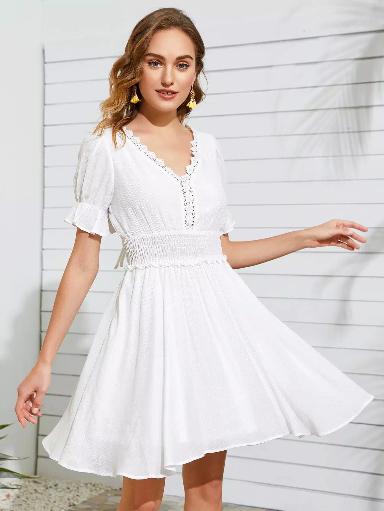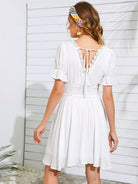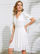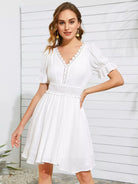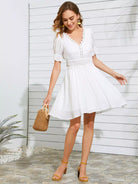 فستان مخرّم من الدانتيل المخرّم بحواف من الدانتيل المخرّم بربطة خصر على الظهر