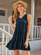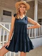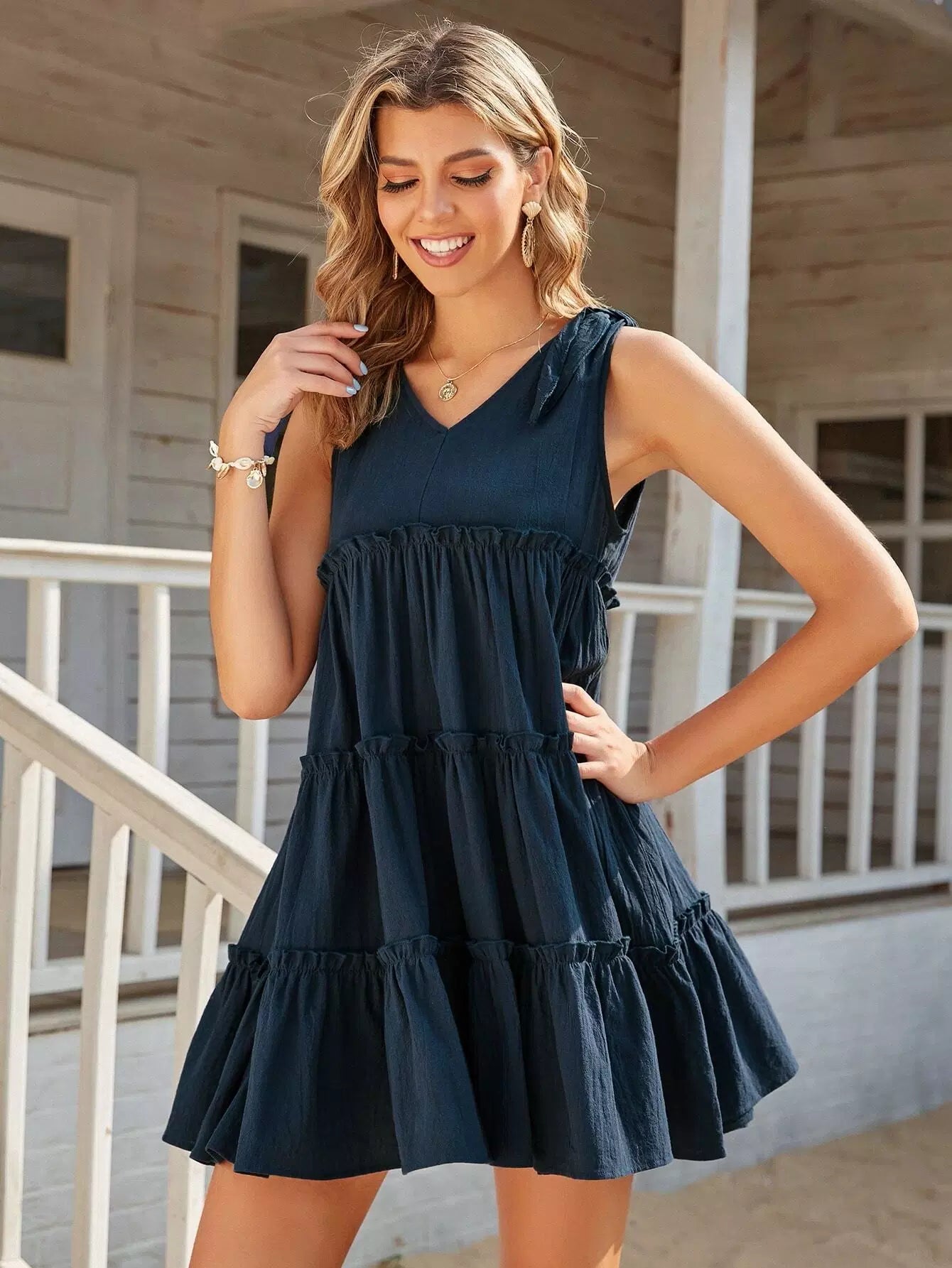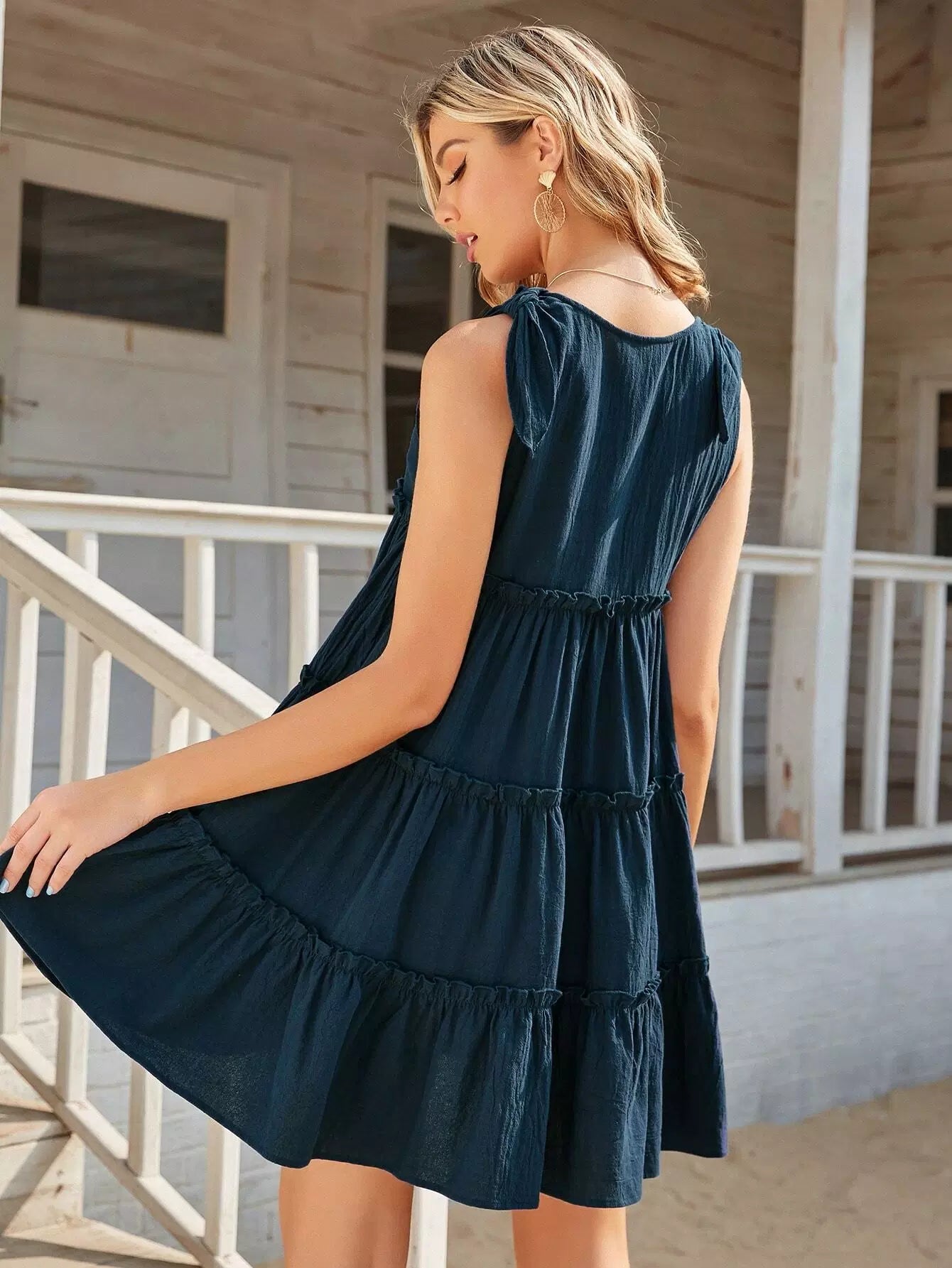 فستان بحواف كشكش على الأكتاف بفتحة على شكل عقدة كتف بحافة كشكش